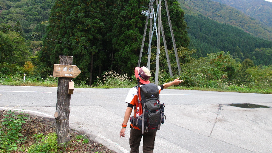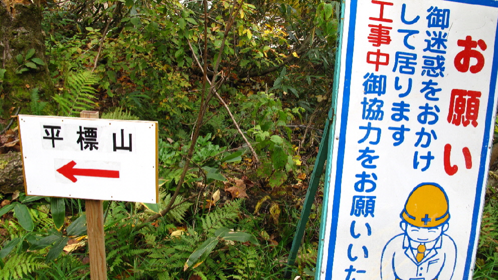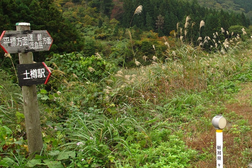 土樽駅の看板も登場工事をしているので、書いてある通りの方へ歩きます