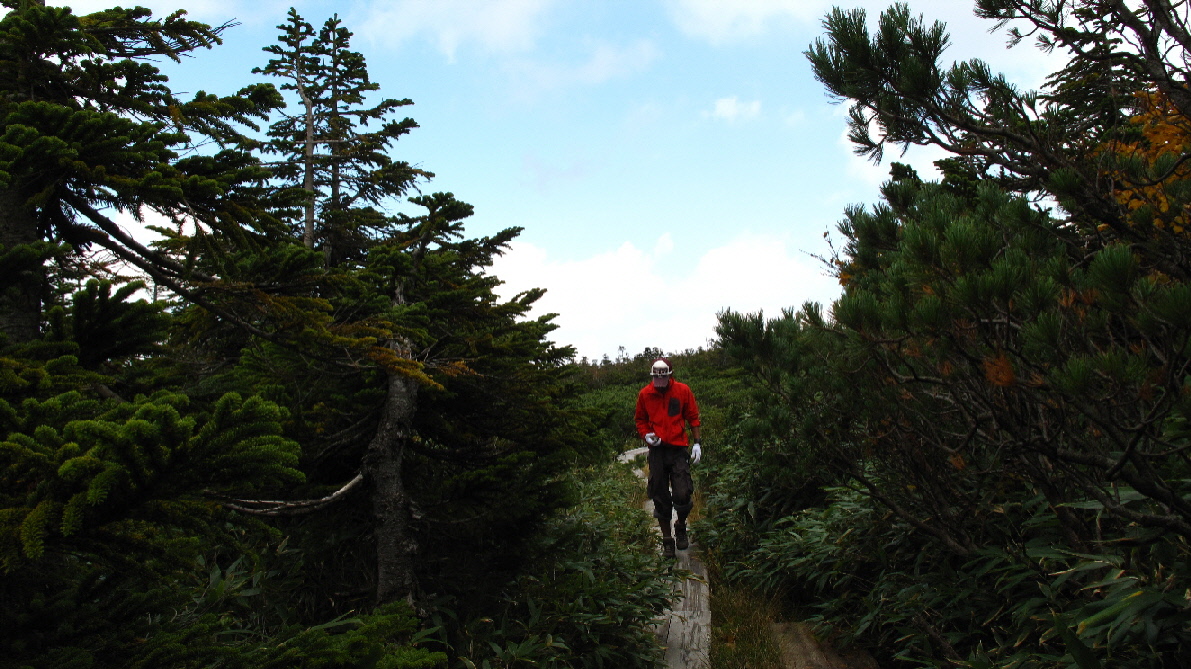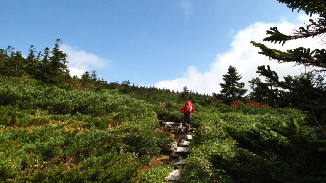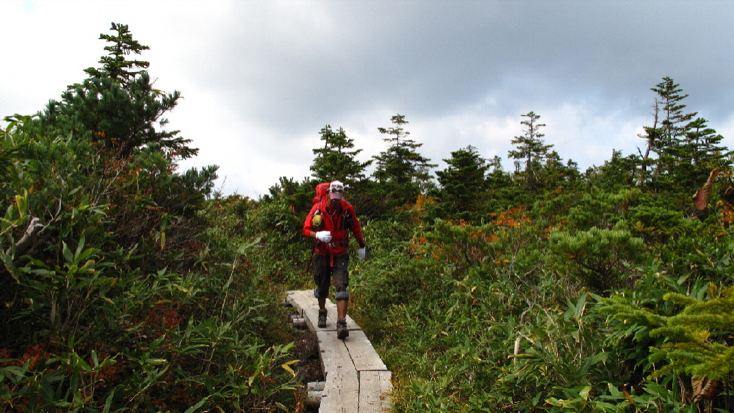 あれが東大嶺かな~? 真っ直ぐな木道 う~んイイね