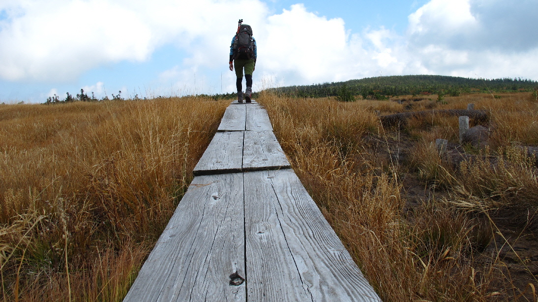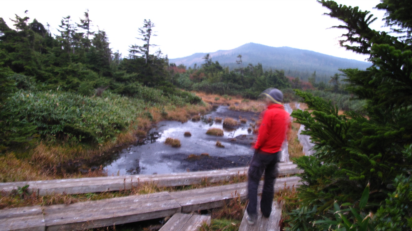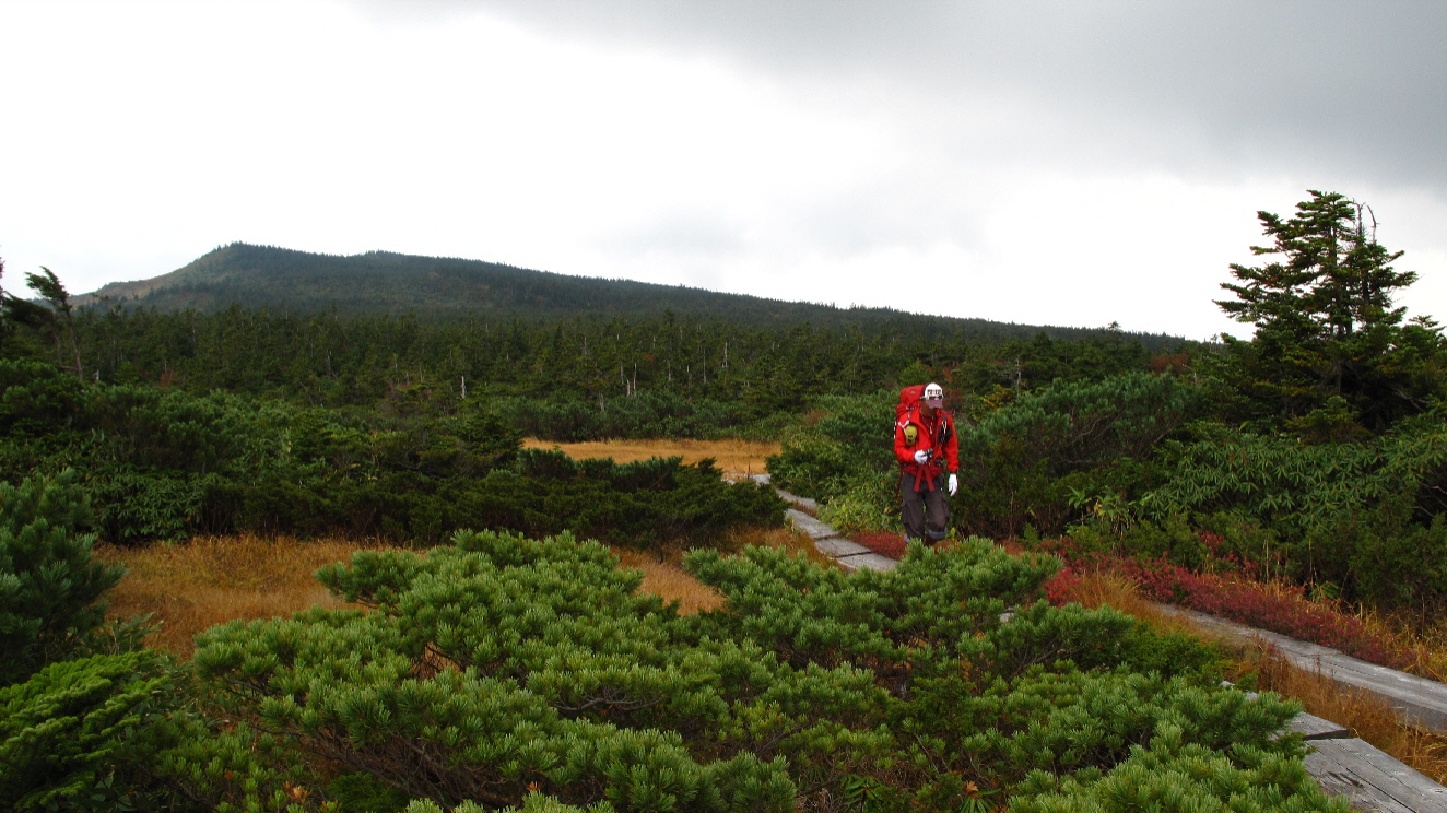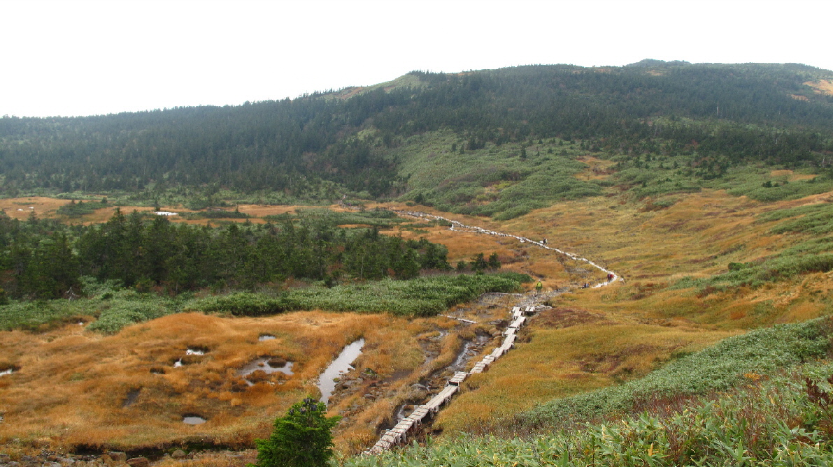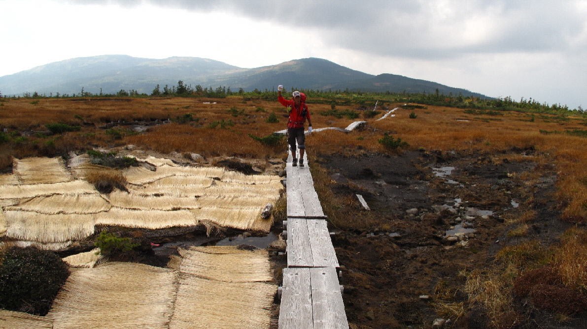 木道のイイ感じの通りなんだけど、もう少し晴れてくれれば、もっと良かったんだろうな~残念
