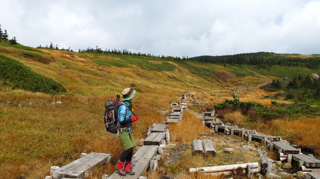 でも、ちょっと曇ってきちゃったなぁ・・・ここを歩いて行くと、西吾妻山に行くことができるんだね~