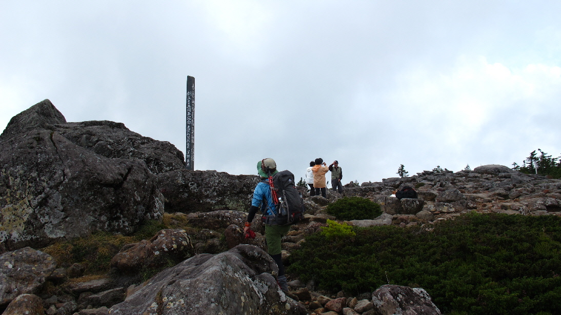 行き止まりで狭く、しかも展望も何もない東大嶺山頂です