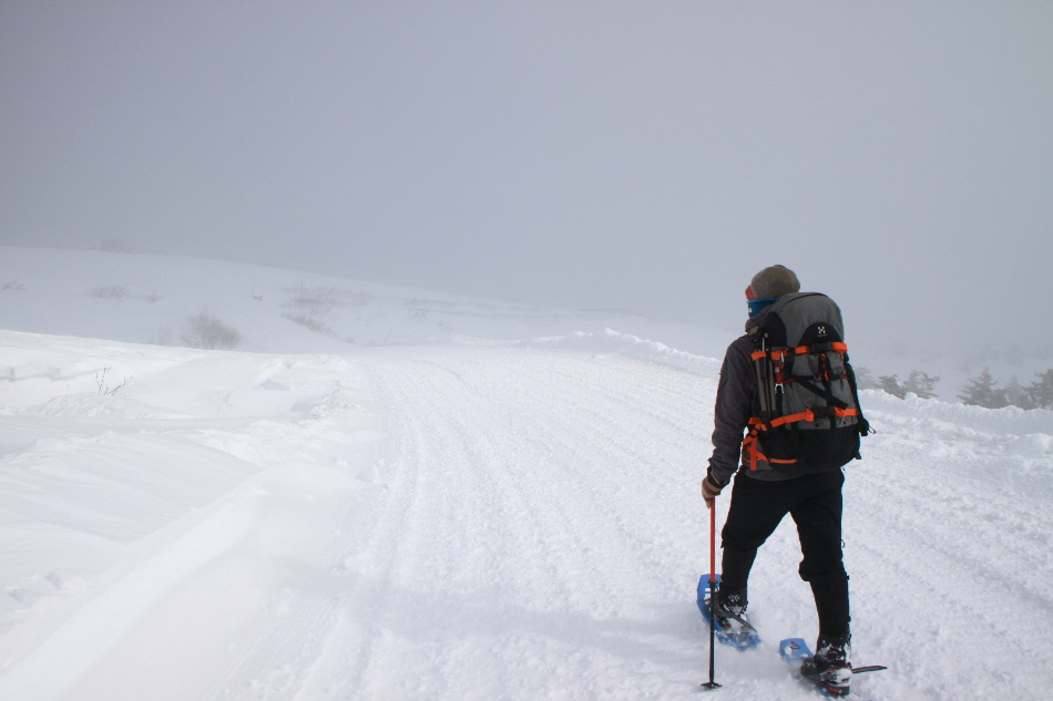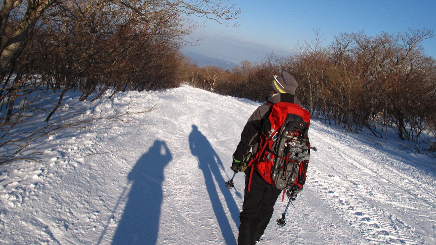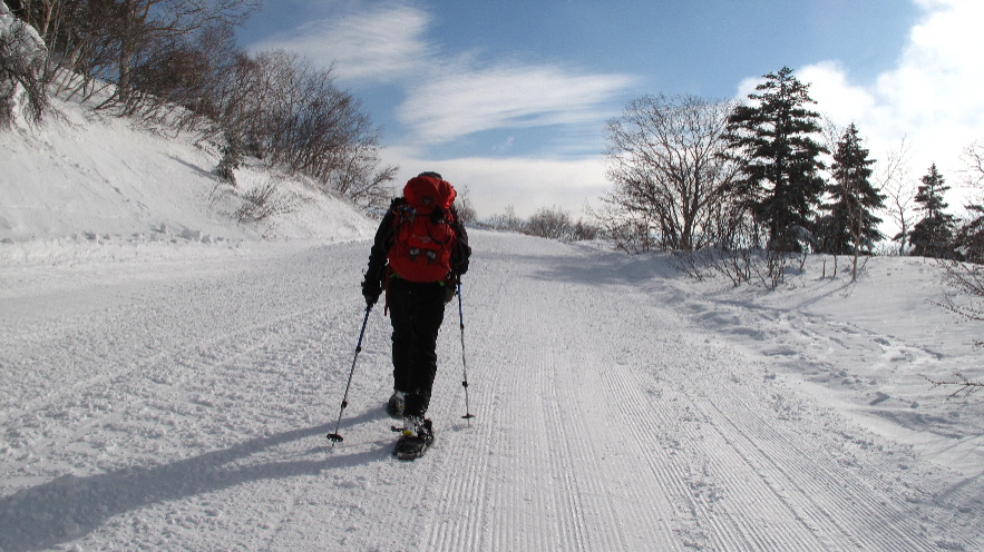 最後ちょっとだけどスノーシューを外して歩きます はぁ~楽チン