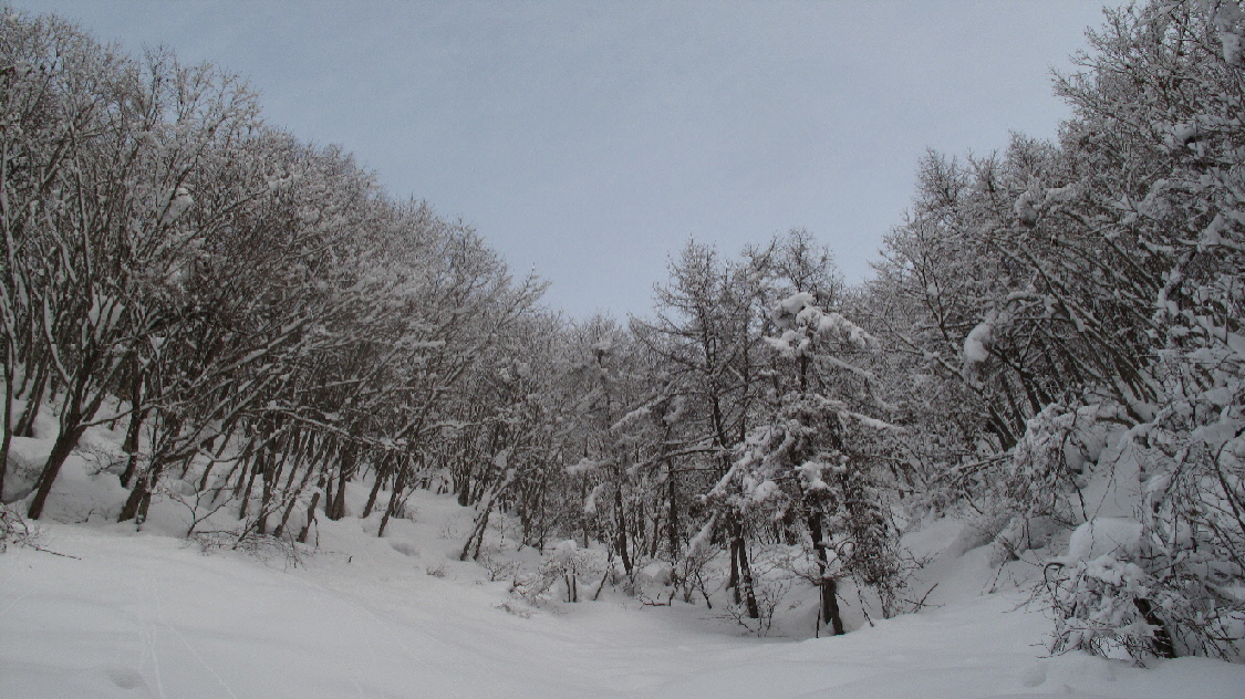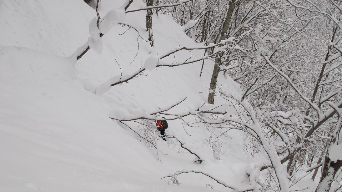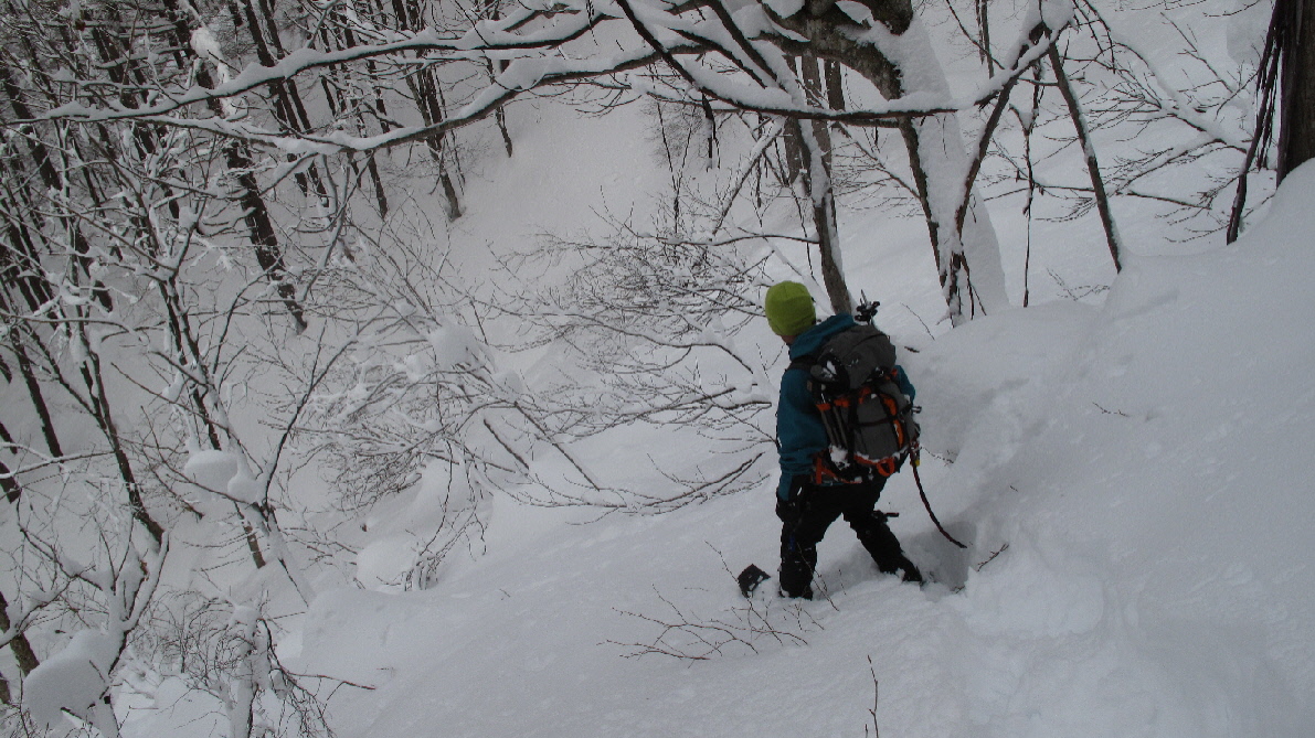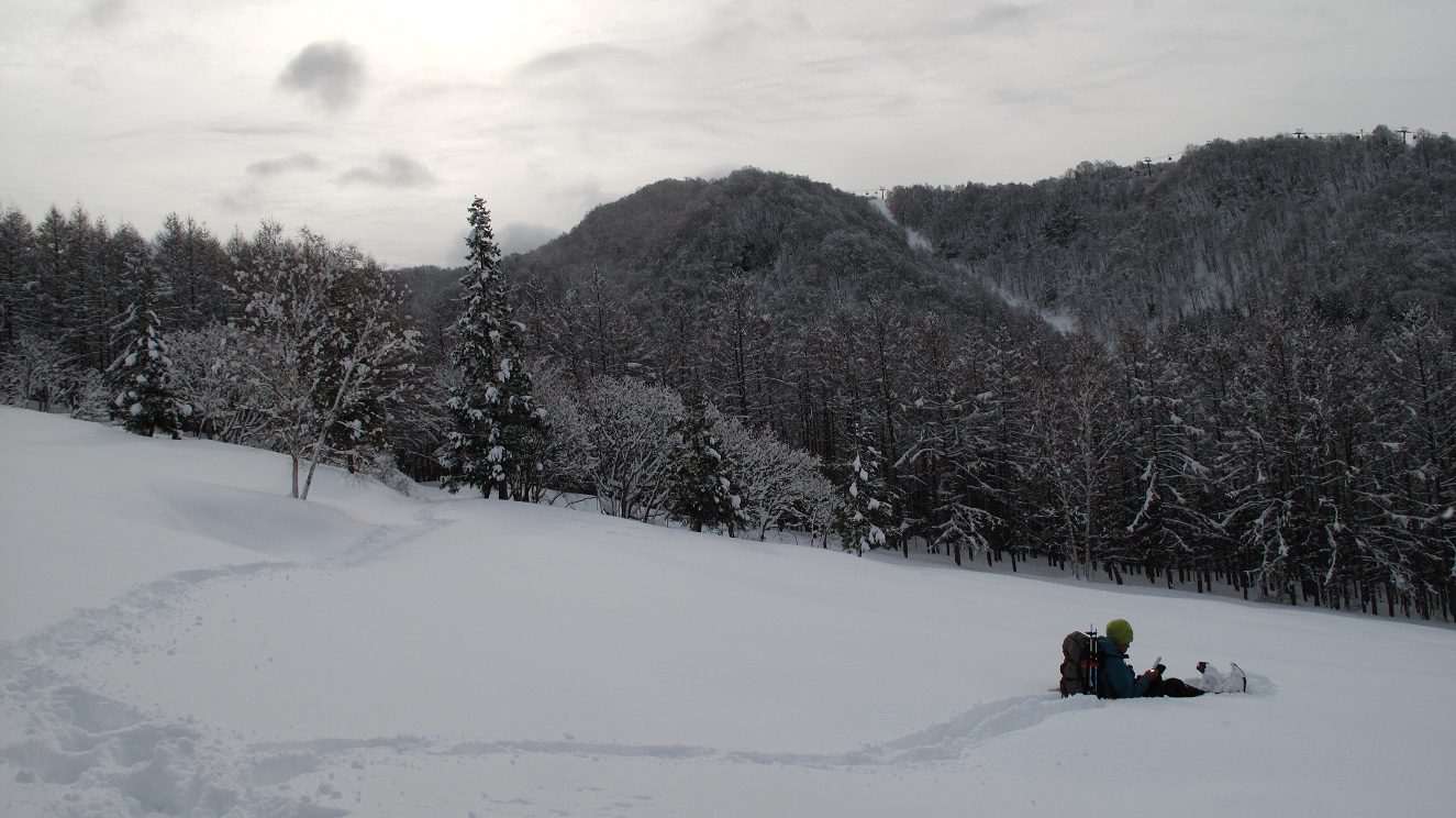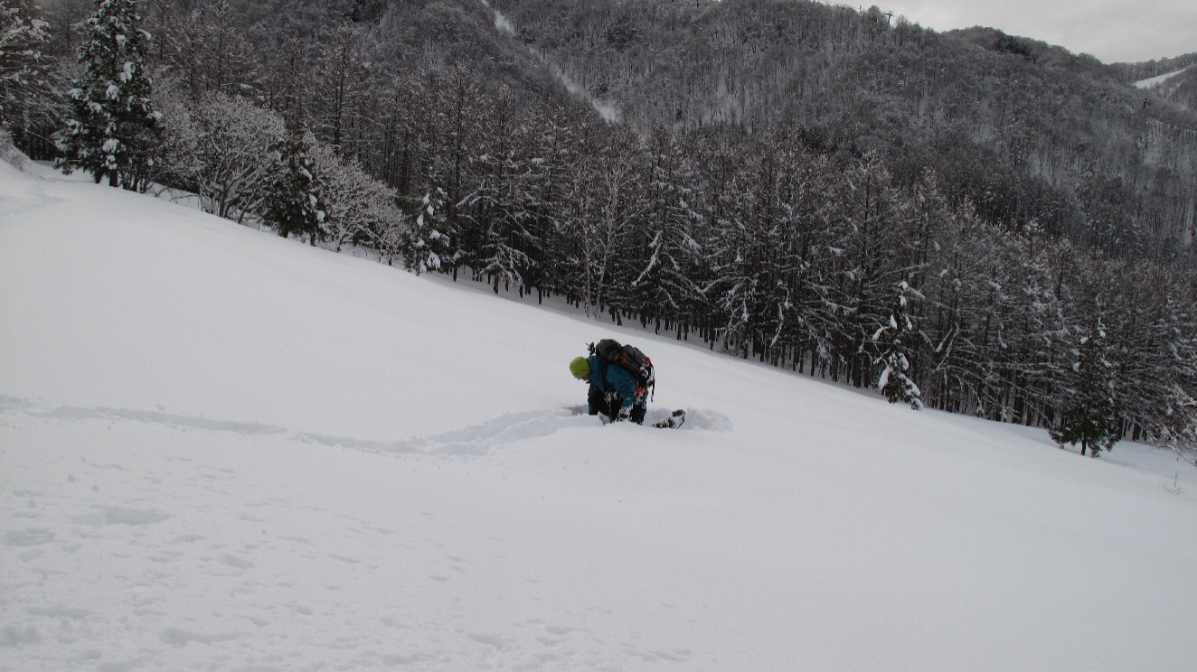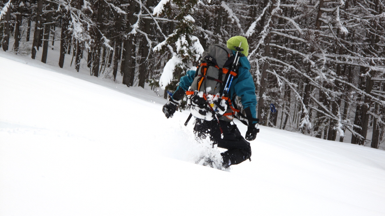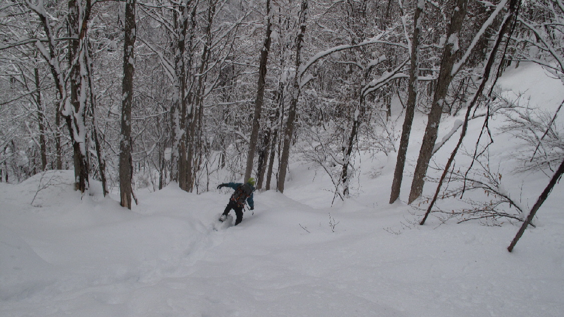 フカフカな雪の中を駆け下ります