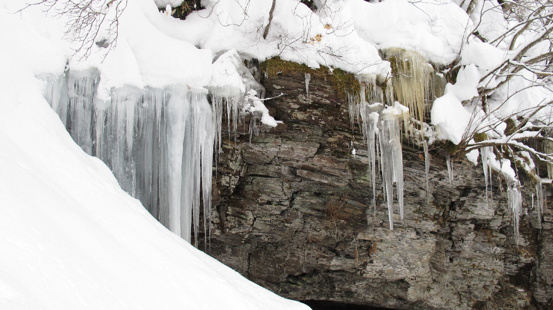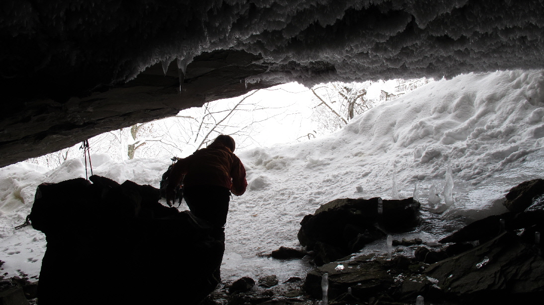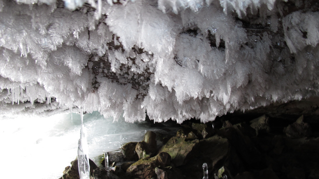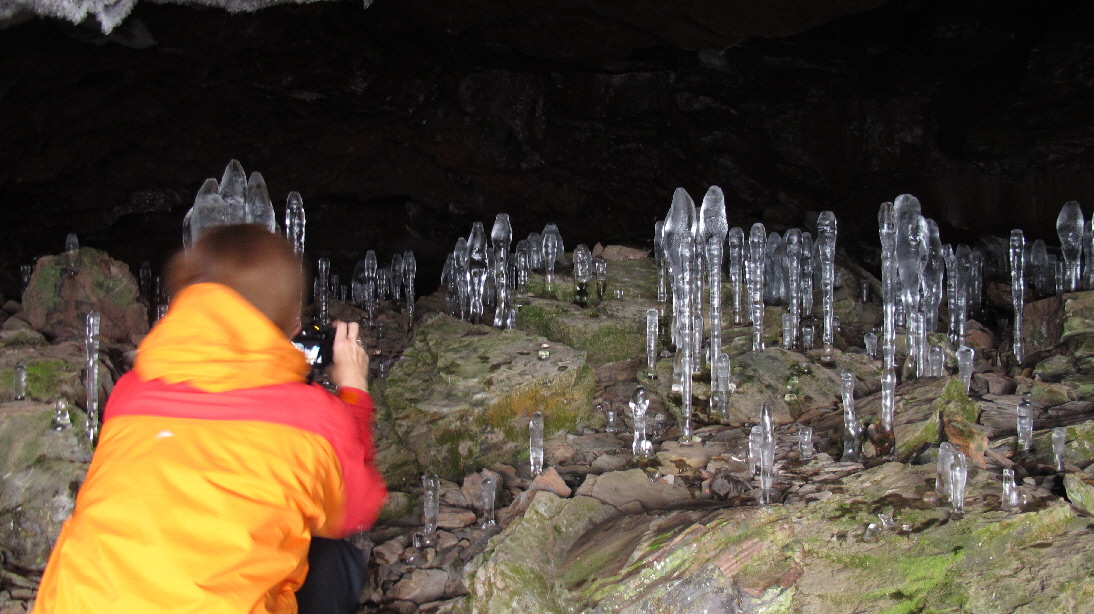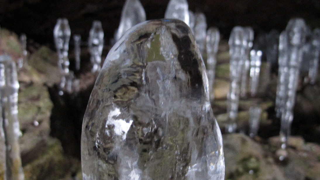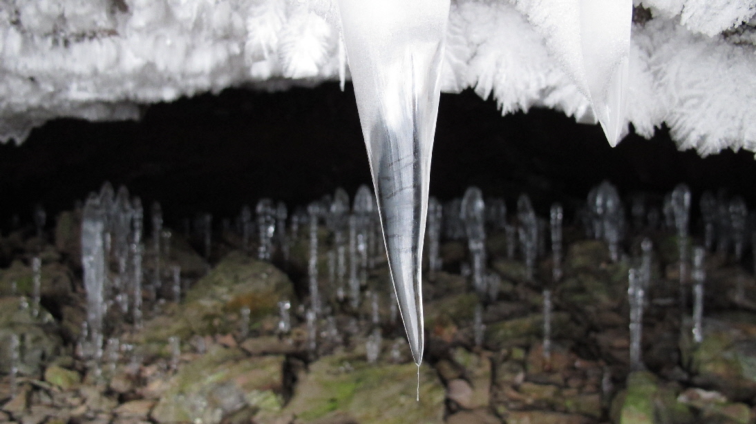 上からの氷柱を見上げます