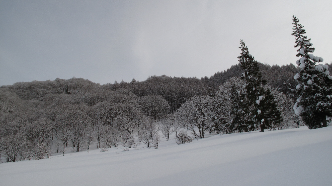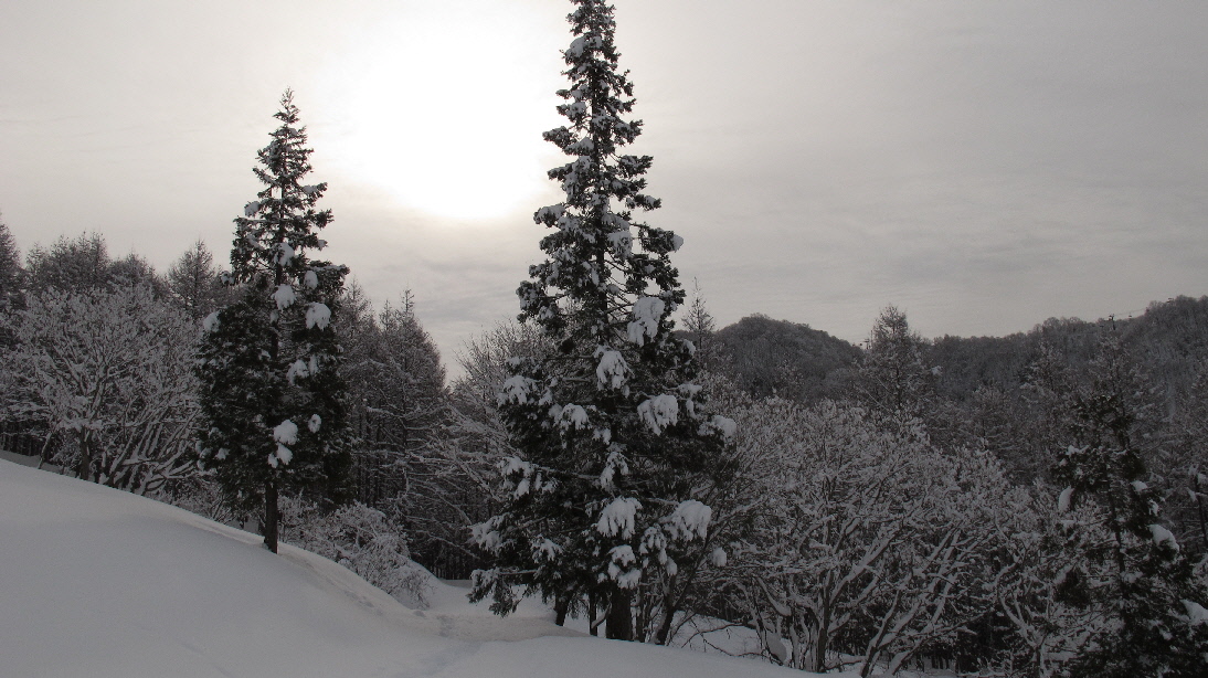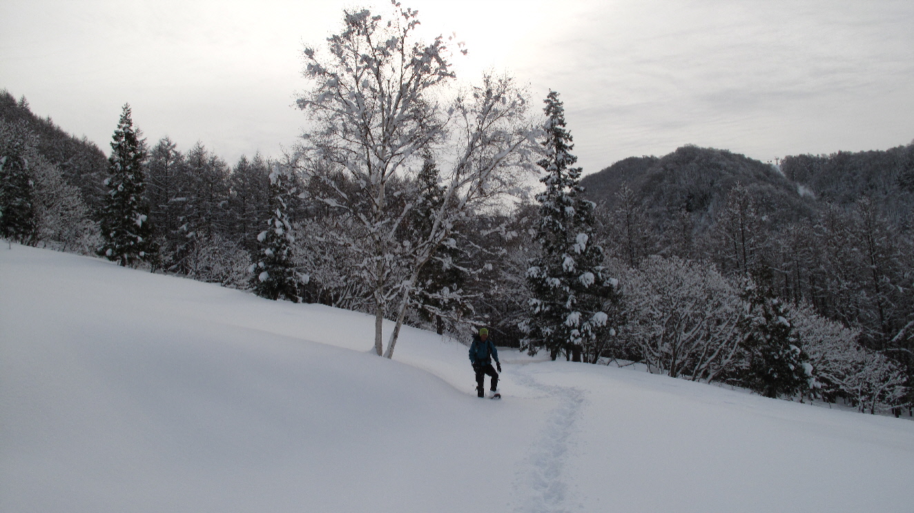 日曜日は少し天気の回復が見られそうだったので、スノーシューで軽く気分転換できる場所は?と考えて