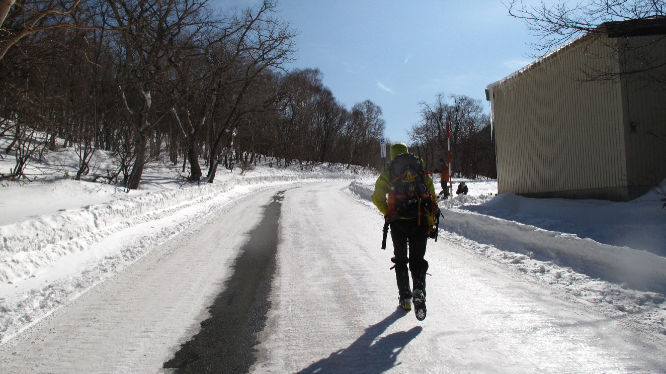黒檜山登山口には車が2台止まってるね~ではでは、ここでアイゼンを着けて・・・いざ出発