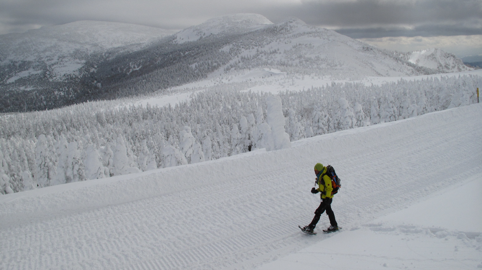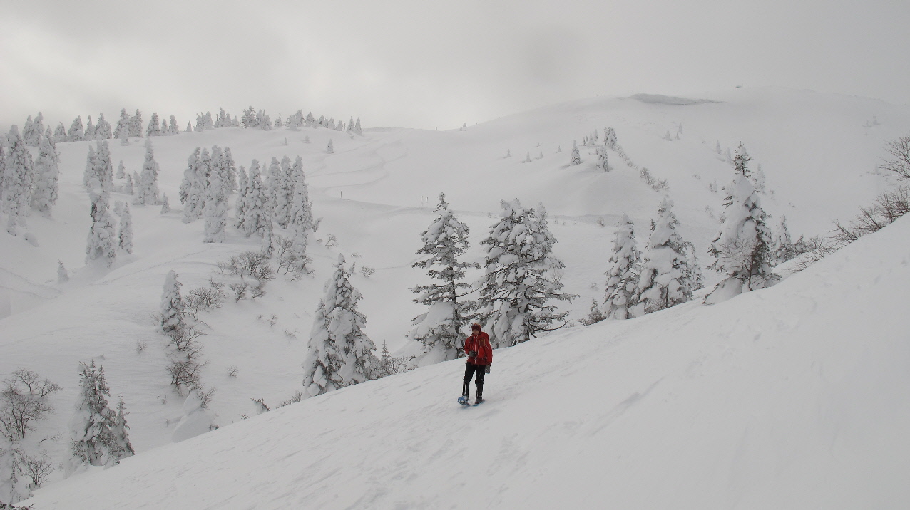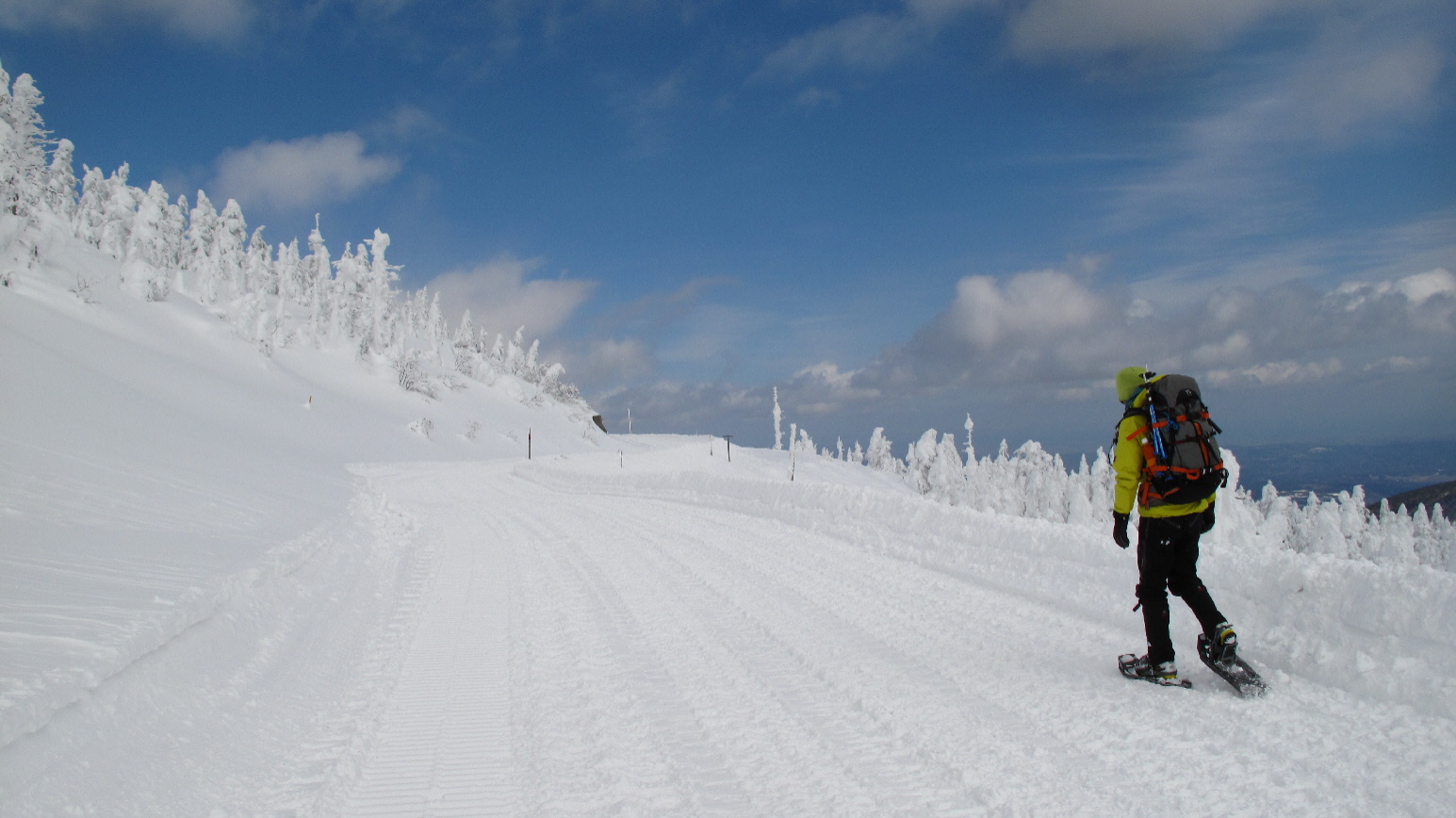 朝、すみかわスノーパークを出発してから、ココ樹氷原までぐるっと歩いてくる間~