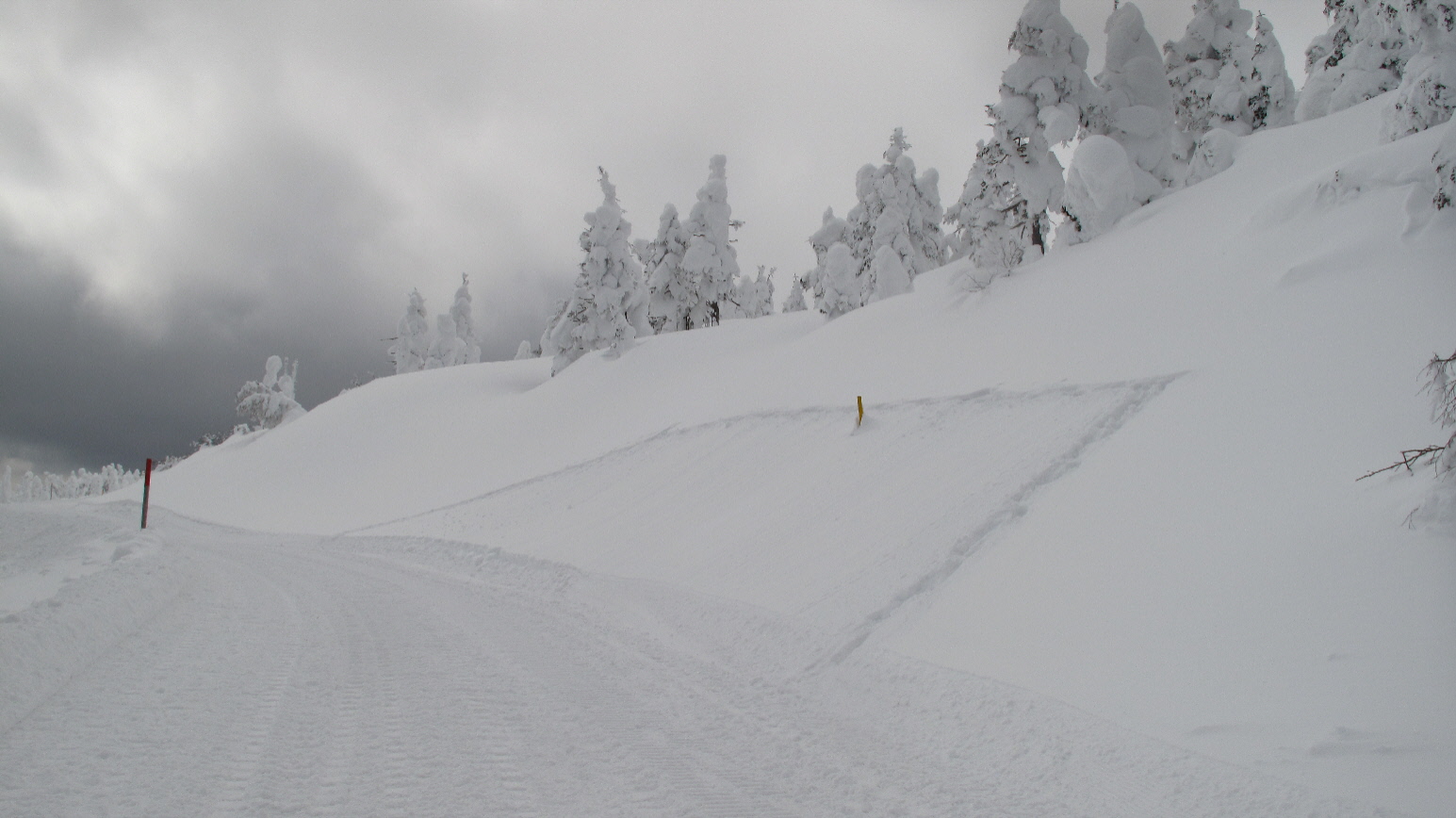 スキーで滑ってきた跡が・・・ たくさんじゃないからかキレイな感じ