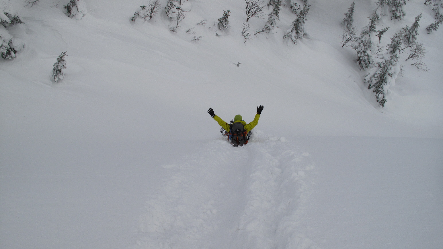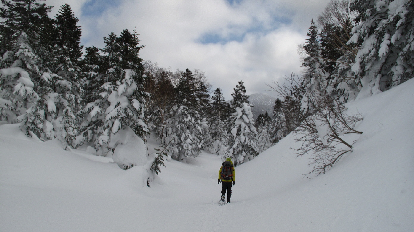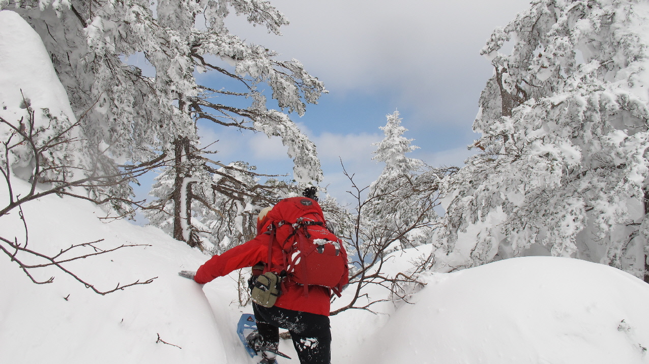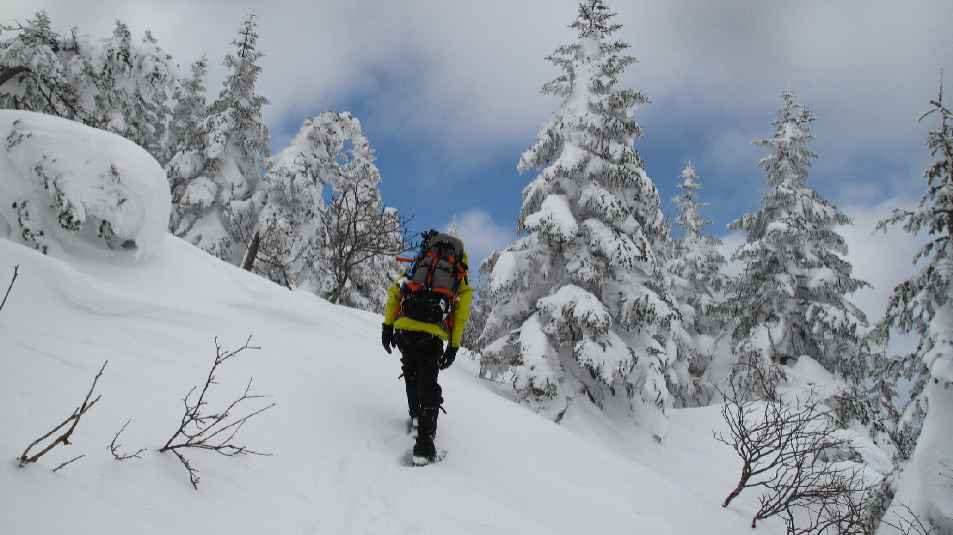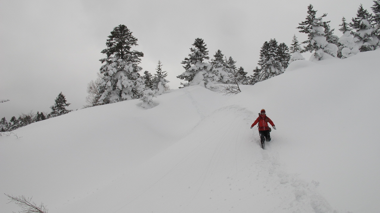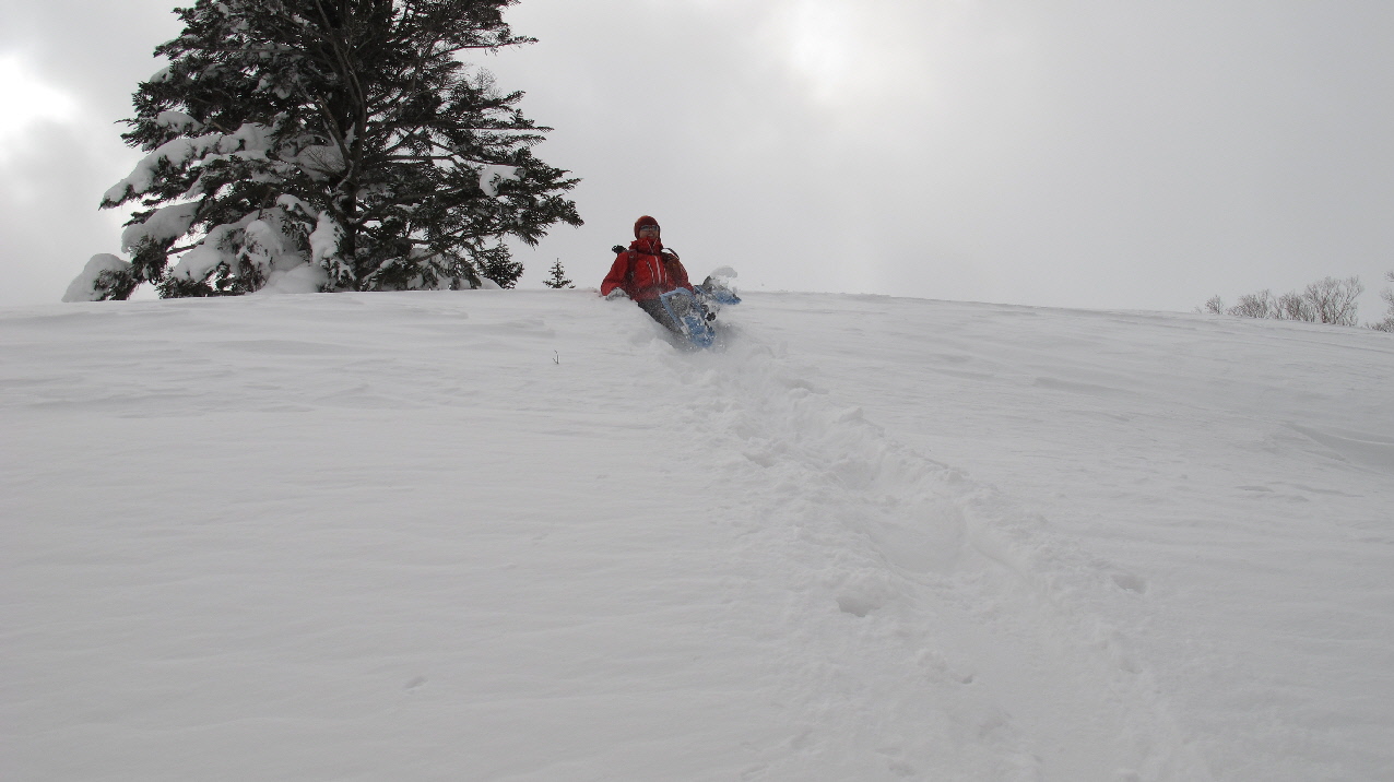 登ったり下りたり~アップダウンは多少あるけど、最後はスノーシュー散策的でタノシミながらね~
