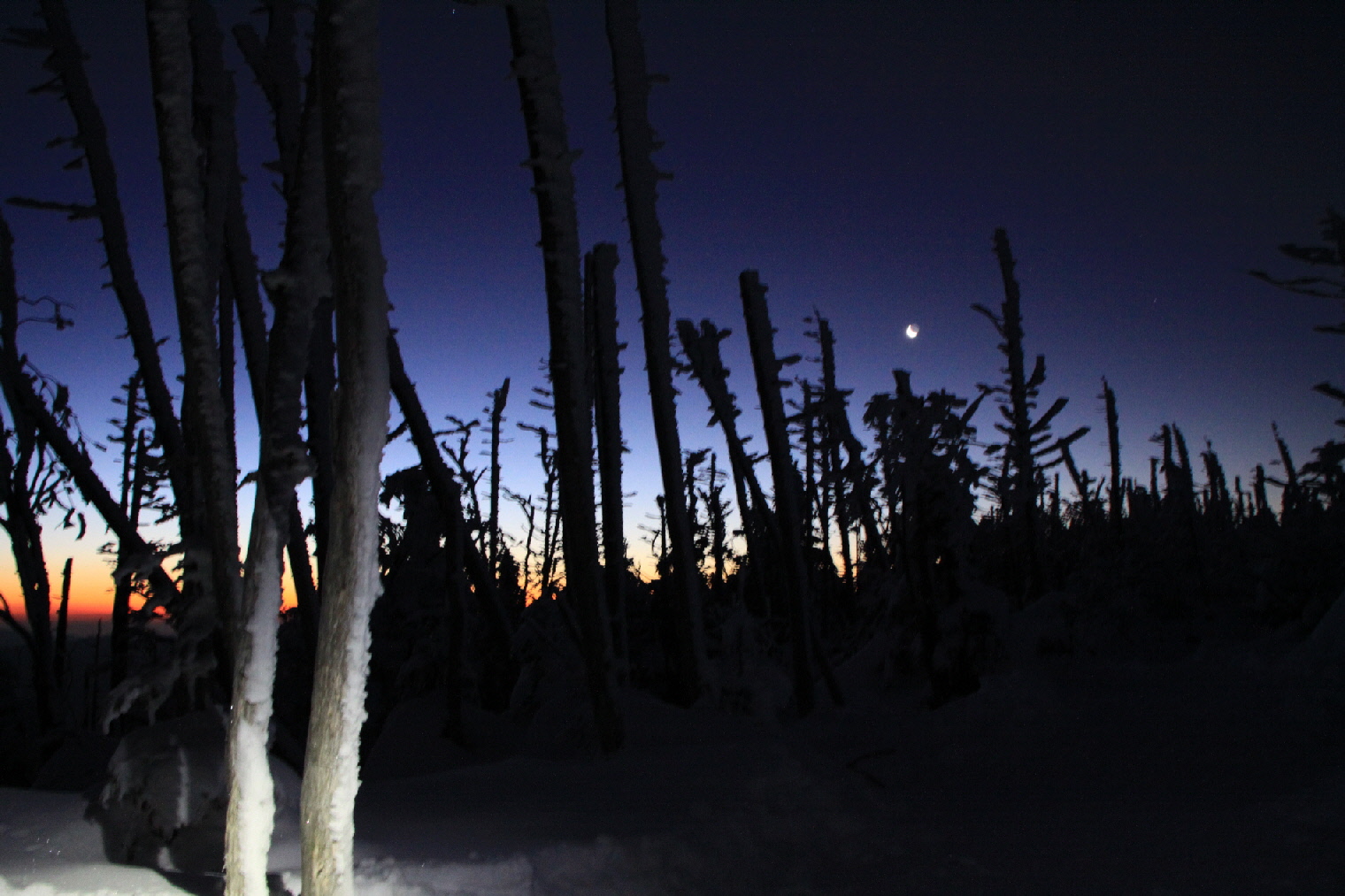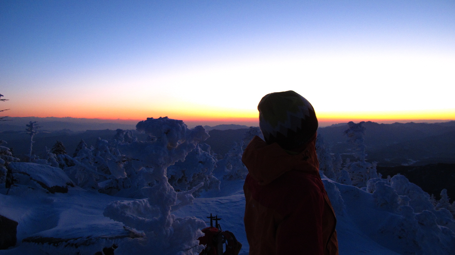 でも、最後の締めくくりは、縞枯山からの日の出を見たいということで~