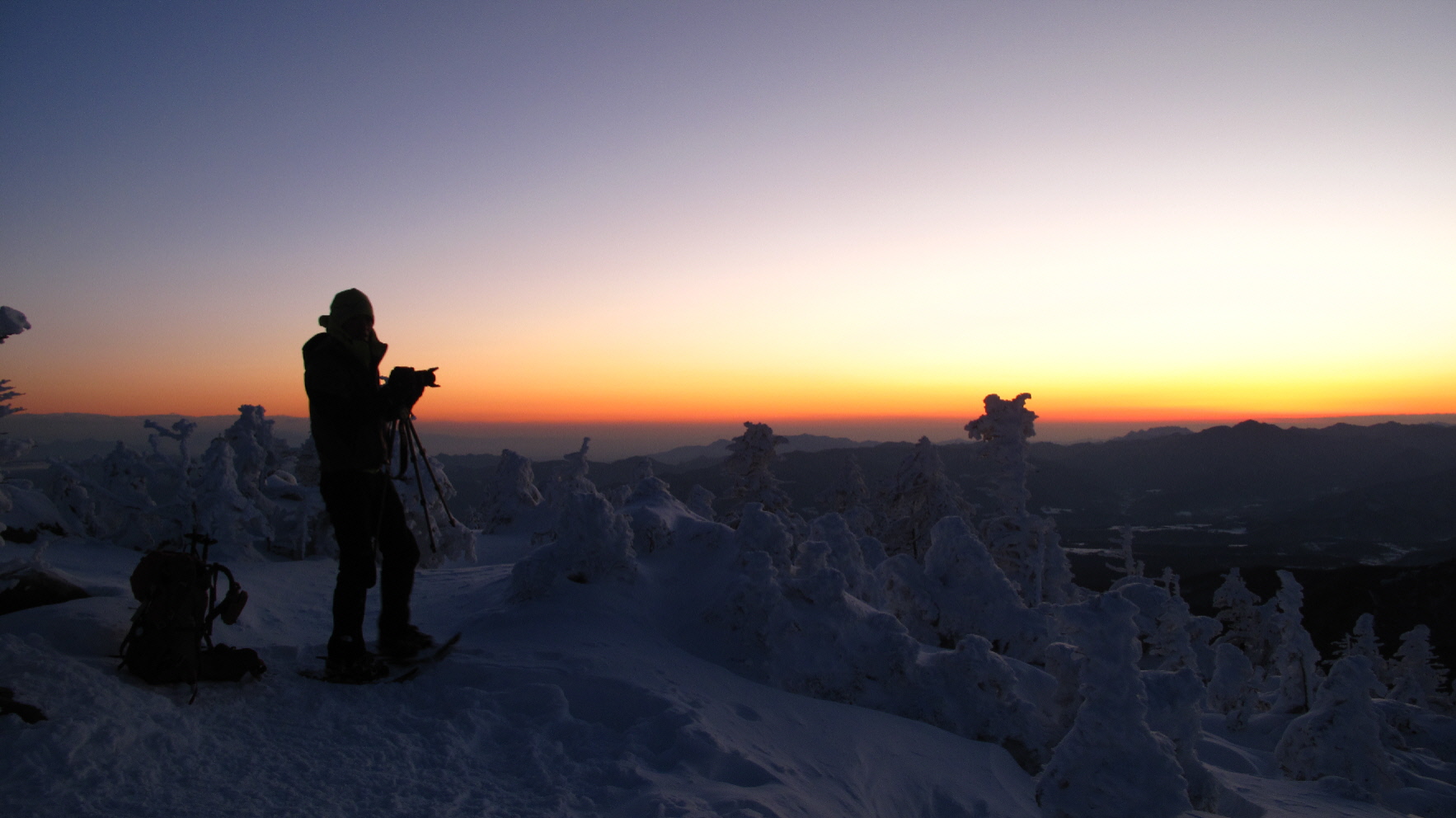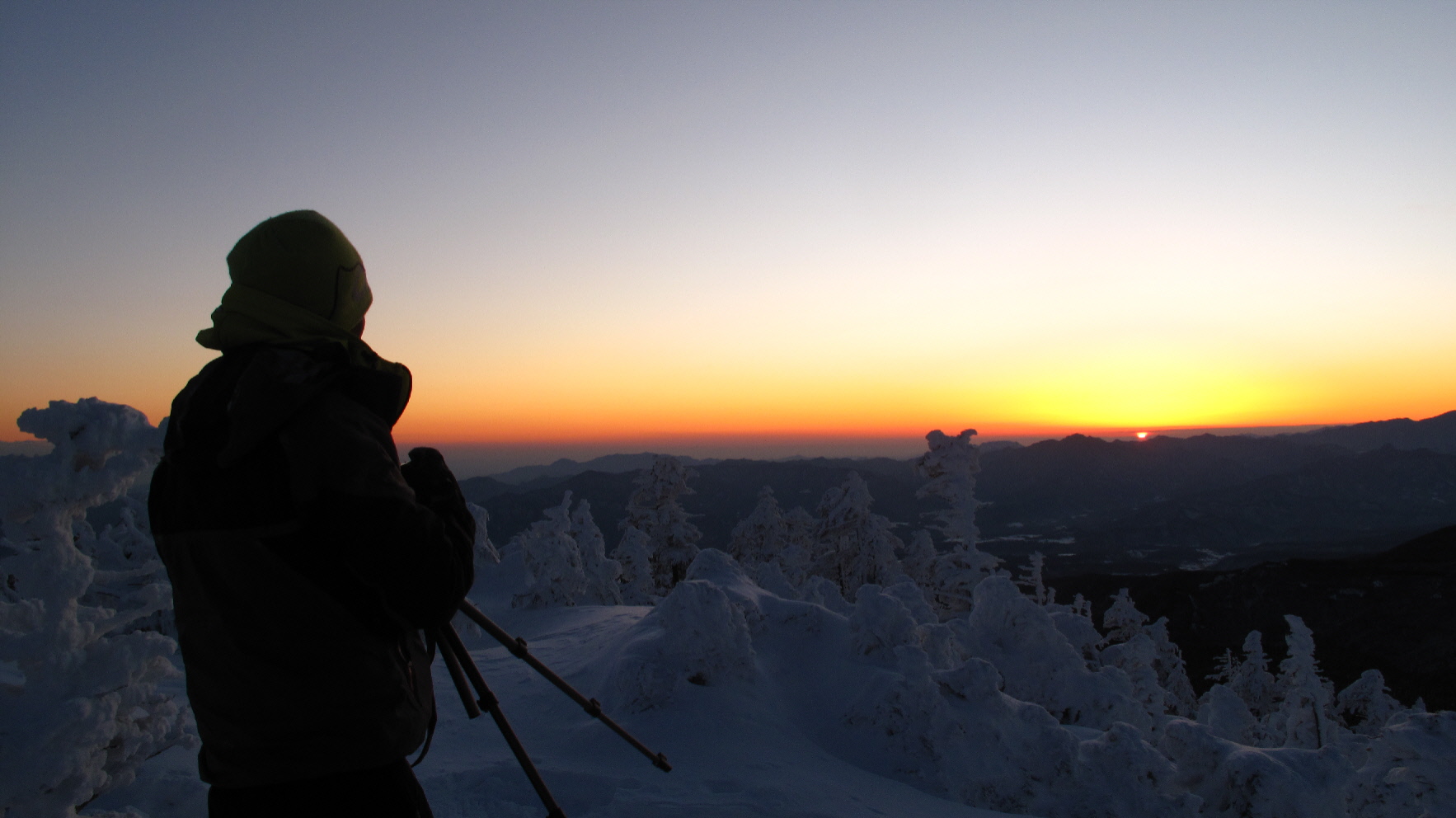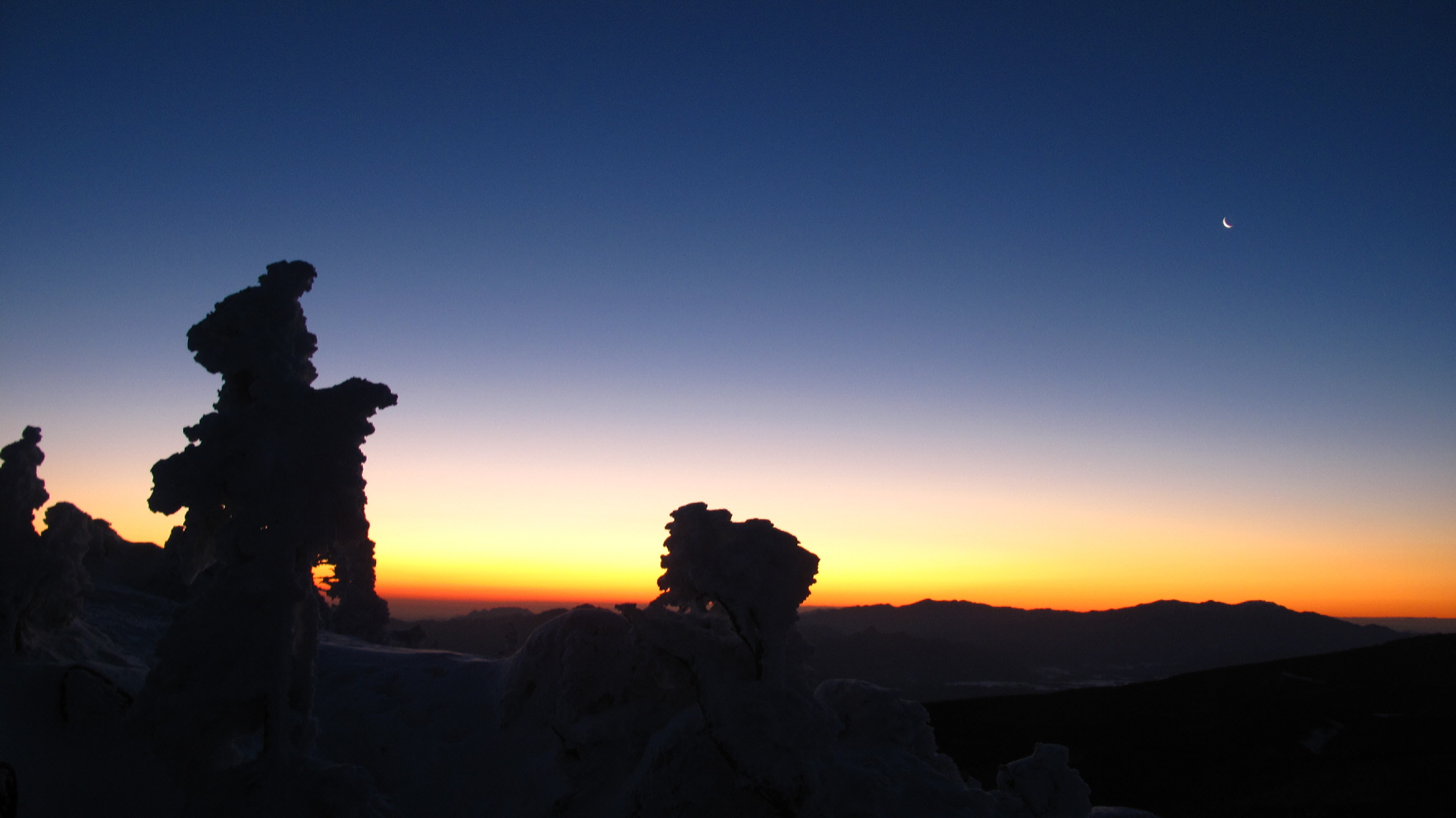日が上がる前の、あのイイ~感じのソラ色の景色~そして太陽が出てきてからだんだん見えてくるヤマの景色~