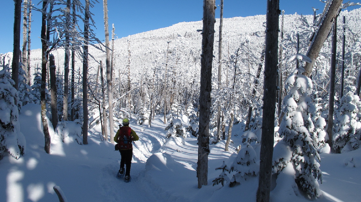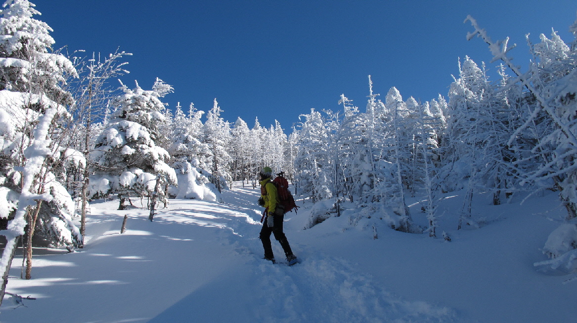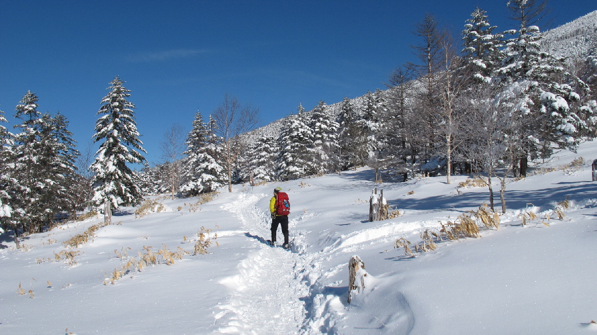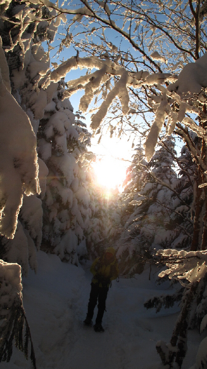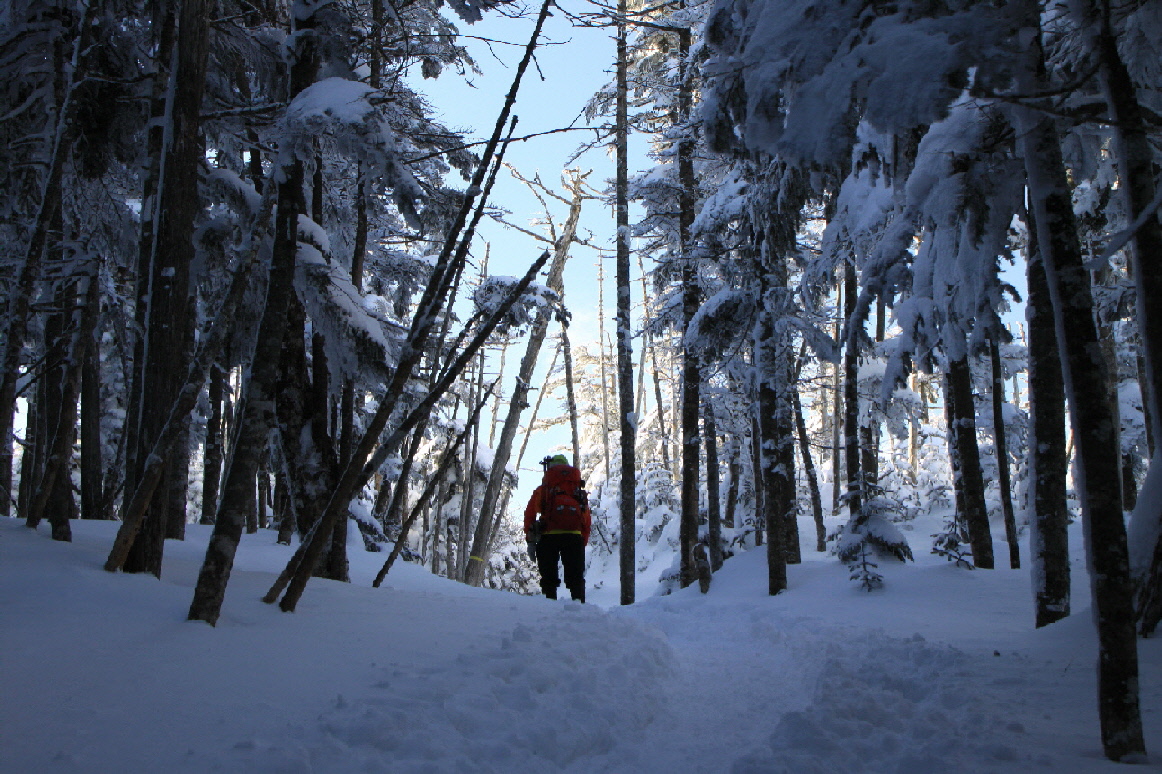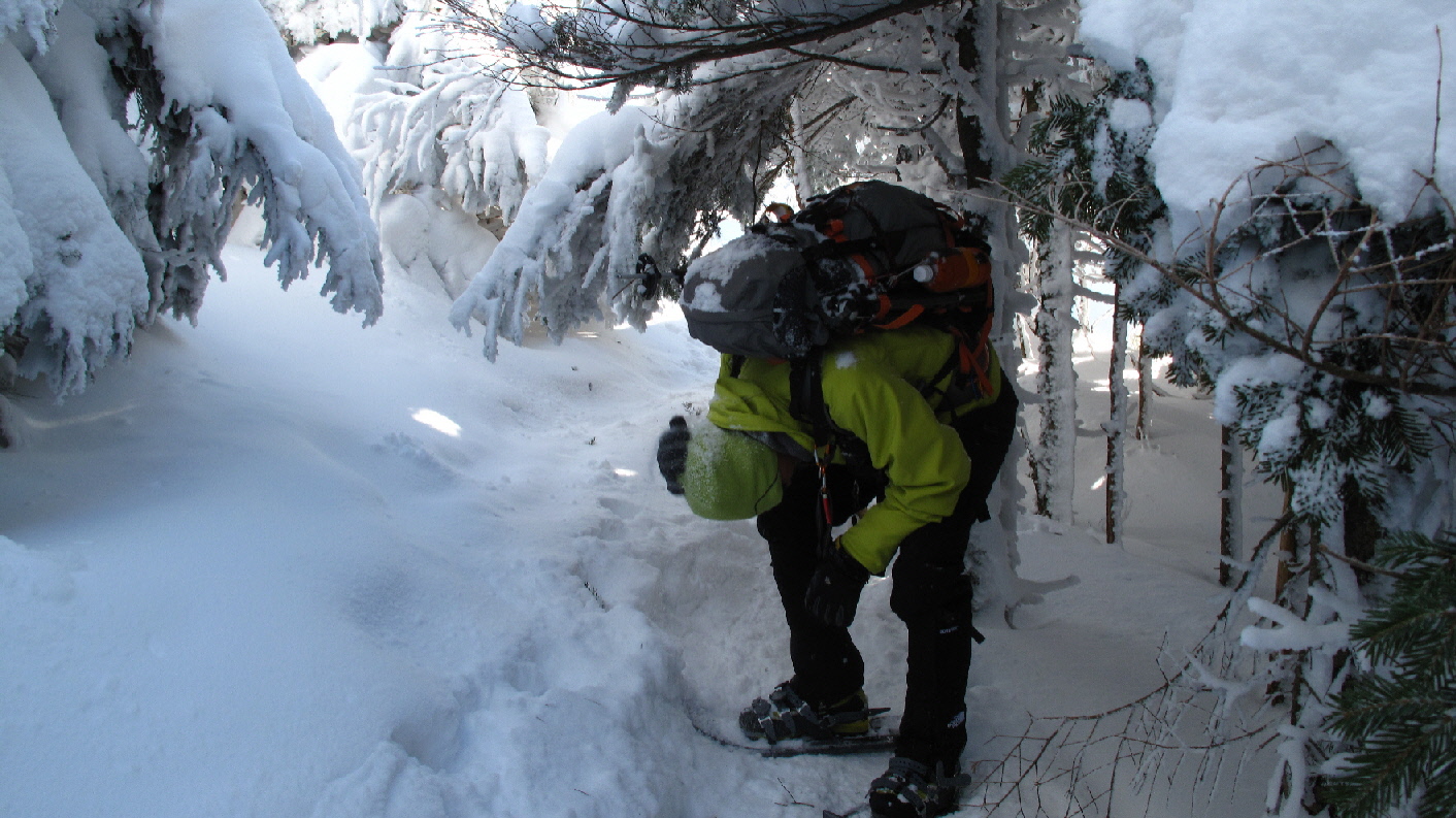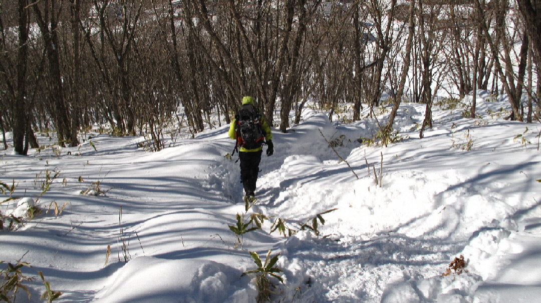 最後のこの辺りは、さすがにスノーシューでガツガツ行くには狭すぎます