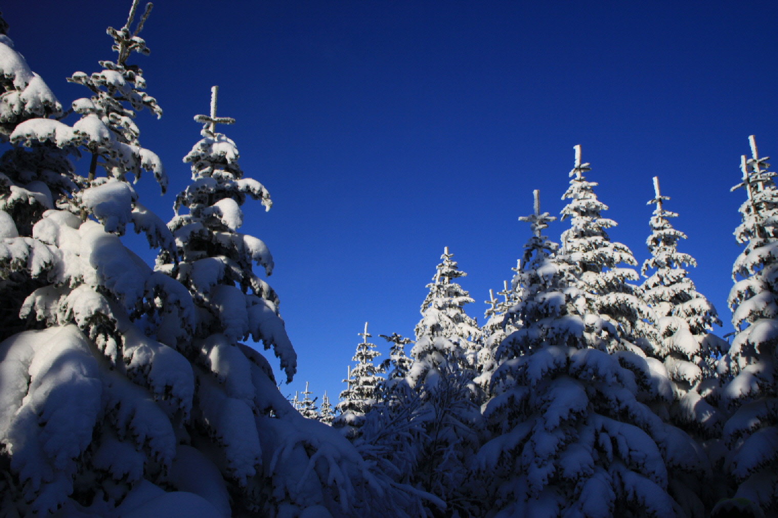 日の出後も、雲一つない青いソラ 明け方前にはマイナス32℃だったとは思えないくらい風もなくて穏やかで~