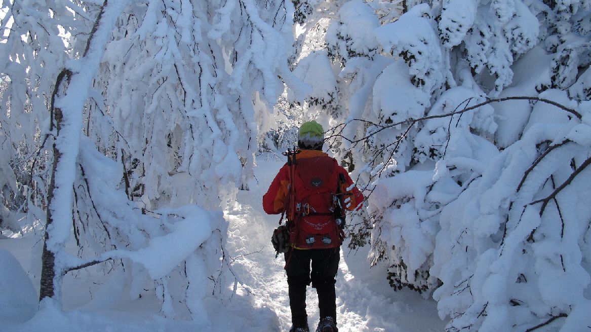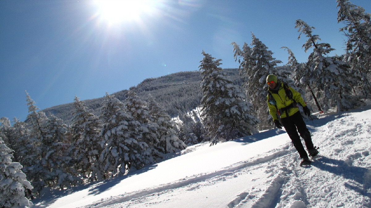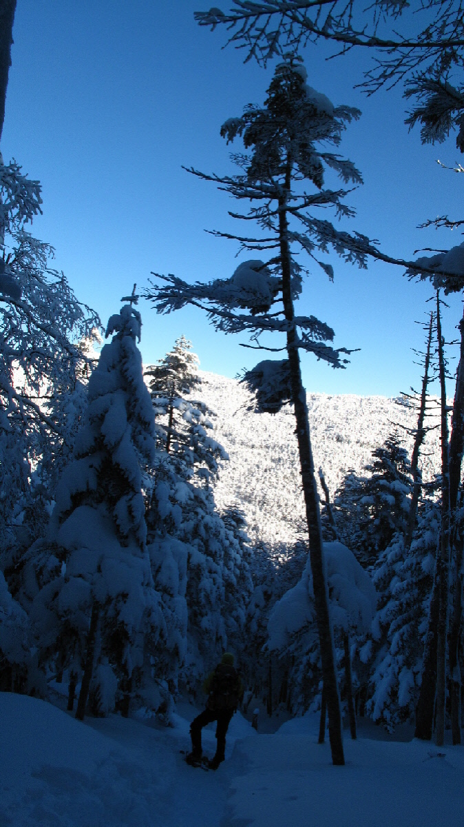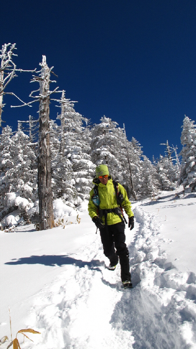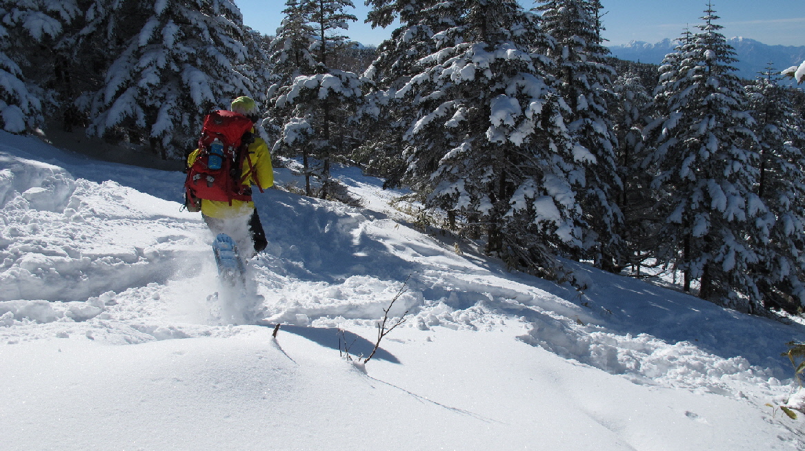 後ろから追われているように下ってKちん スノーシュー履いてるけどちょっとガンバって下ります