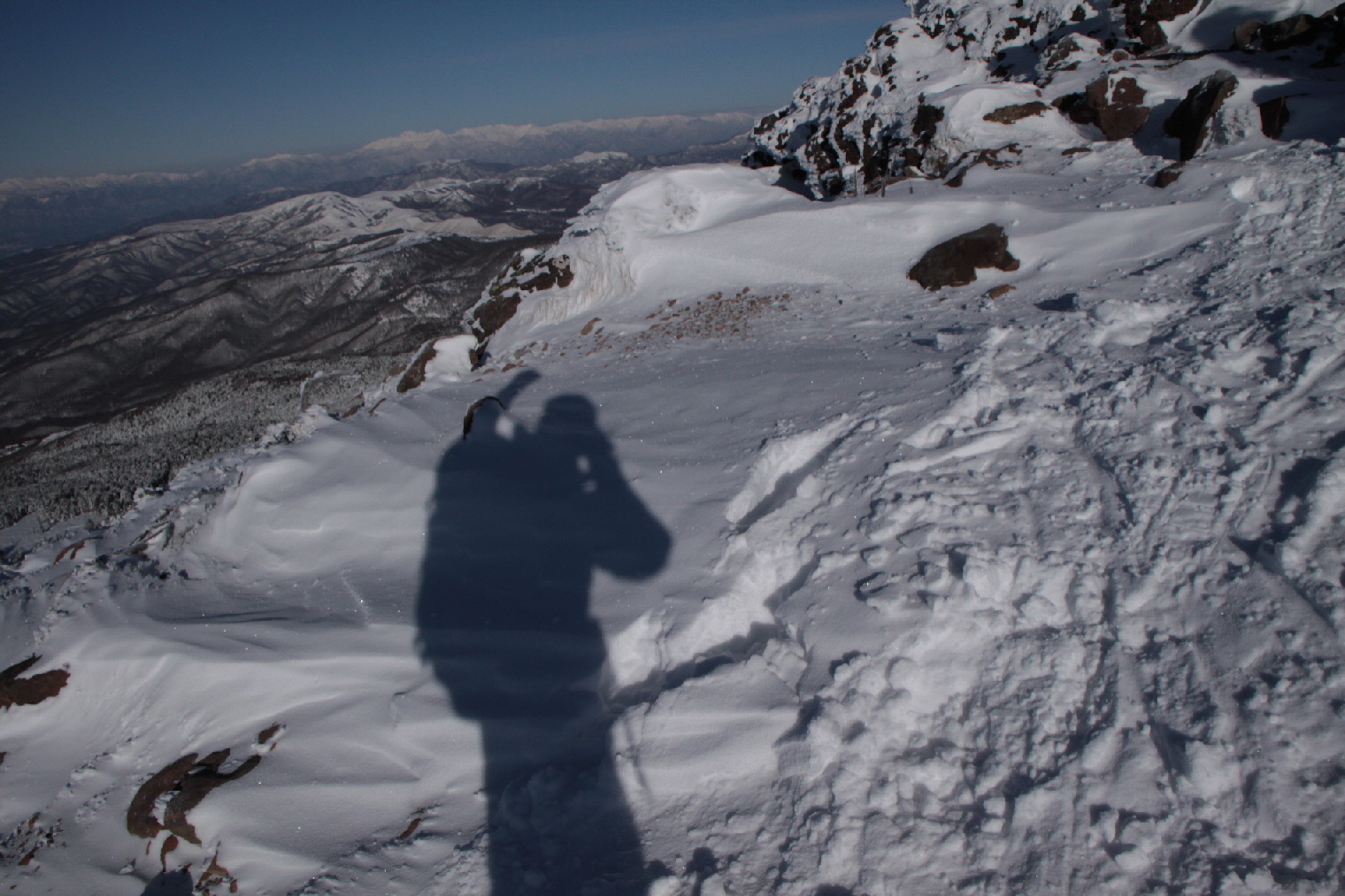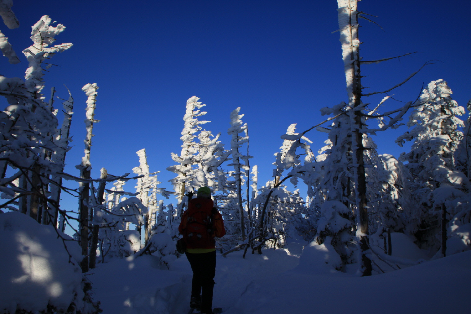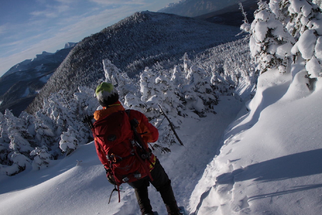 後ろから追われているように下ってKちん スノーシュー履いてるけどちょっとガンバって下ります
