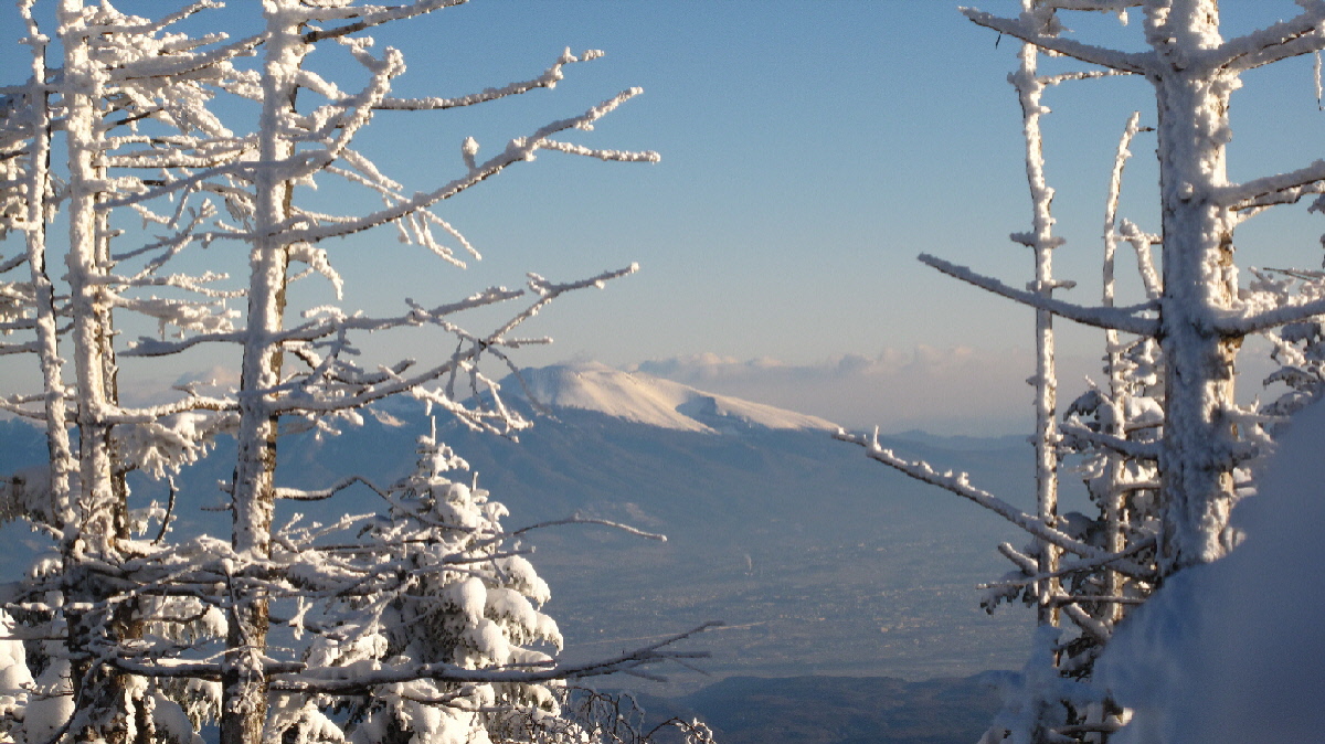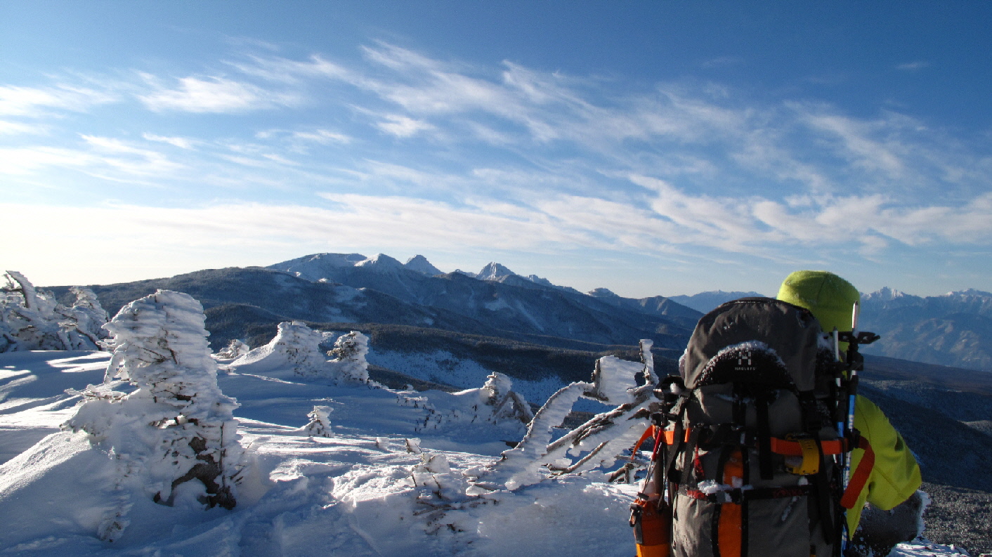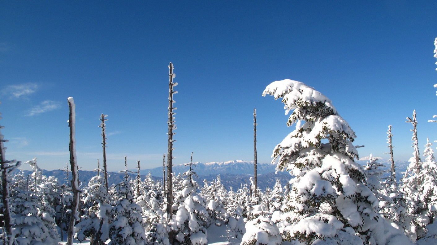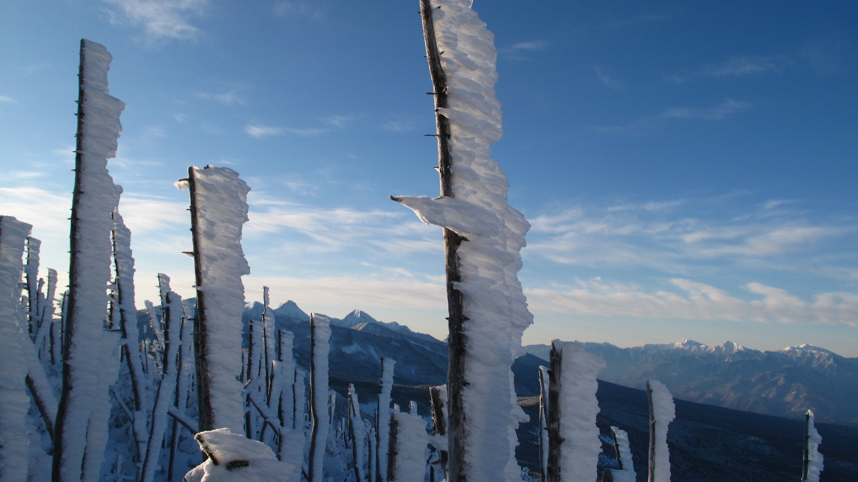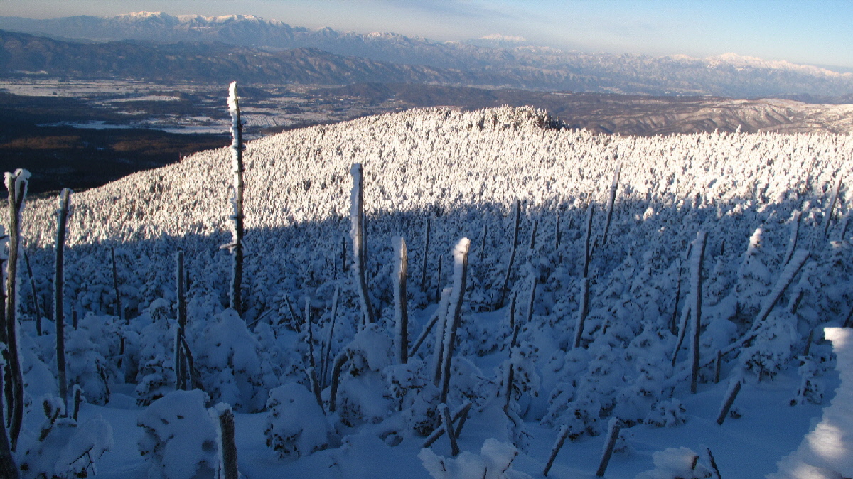 一面に広がる樹氷の木々と北横岳
