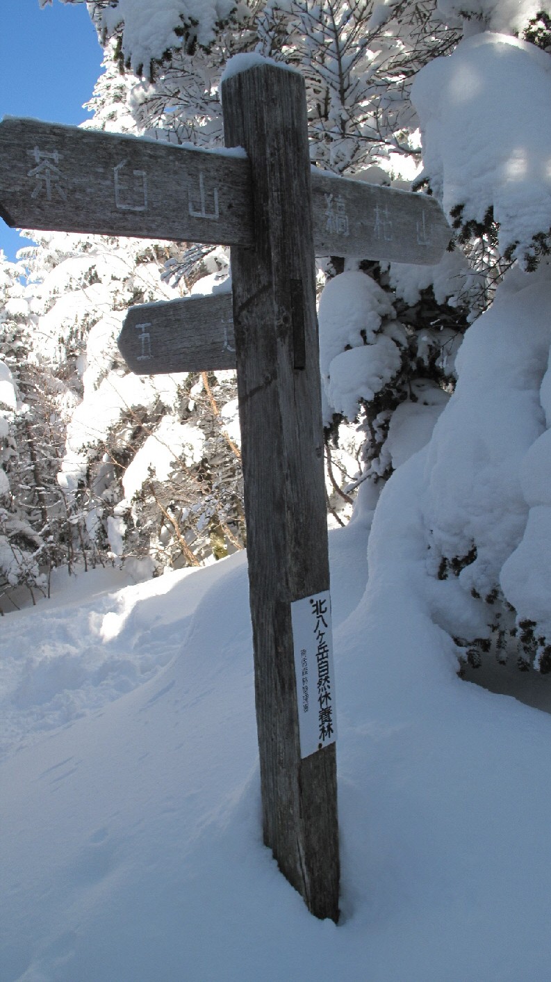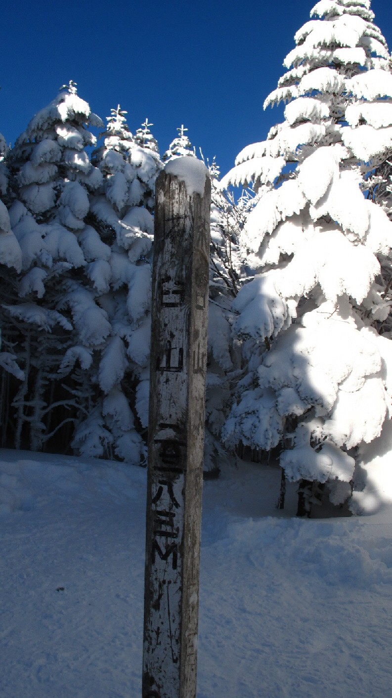 そして茶臼山の山頂 縞枯山と同じ展望のない山頂 景色が良く見渡せる奥に歩いて行きます