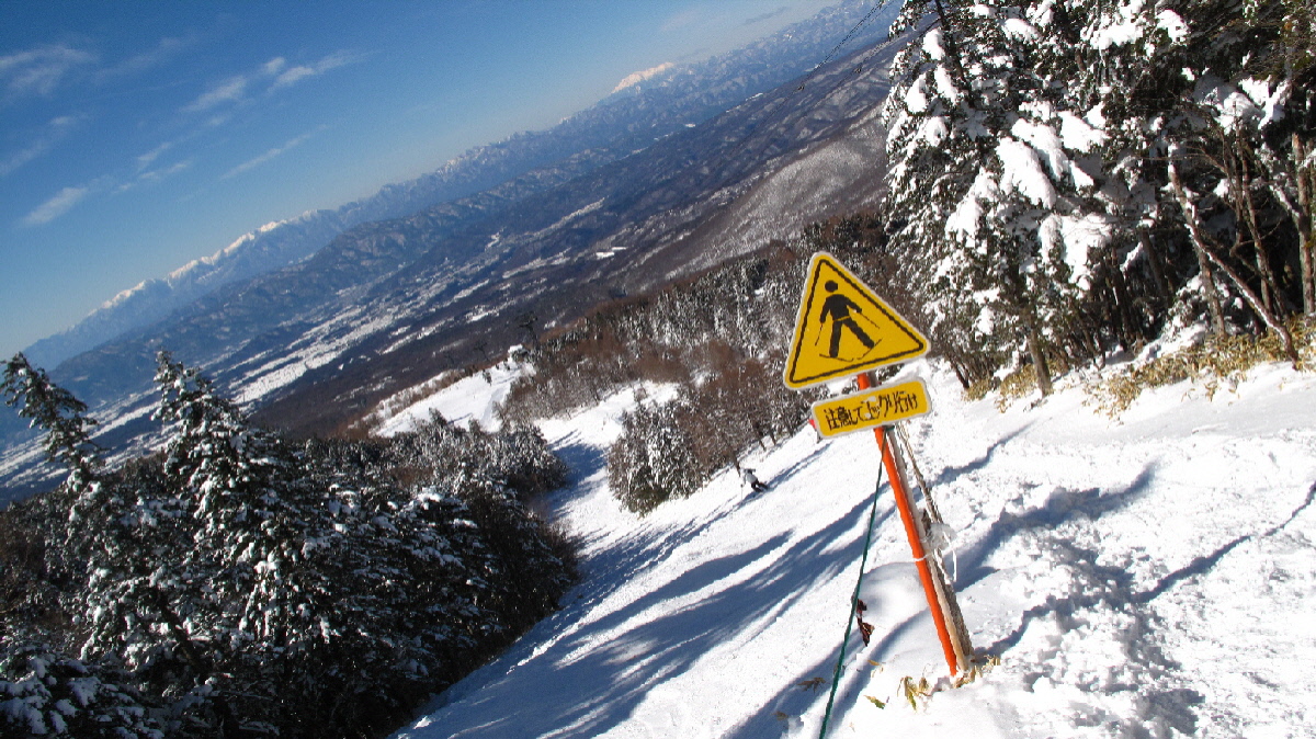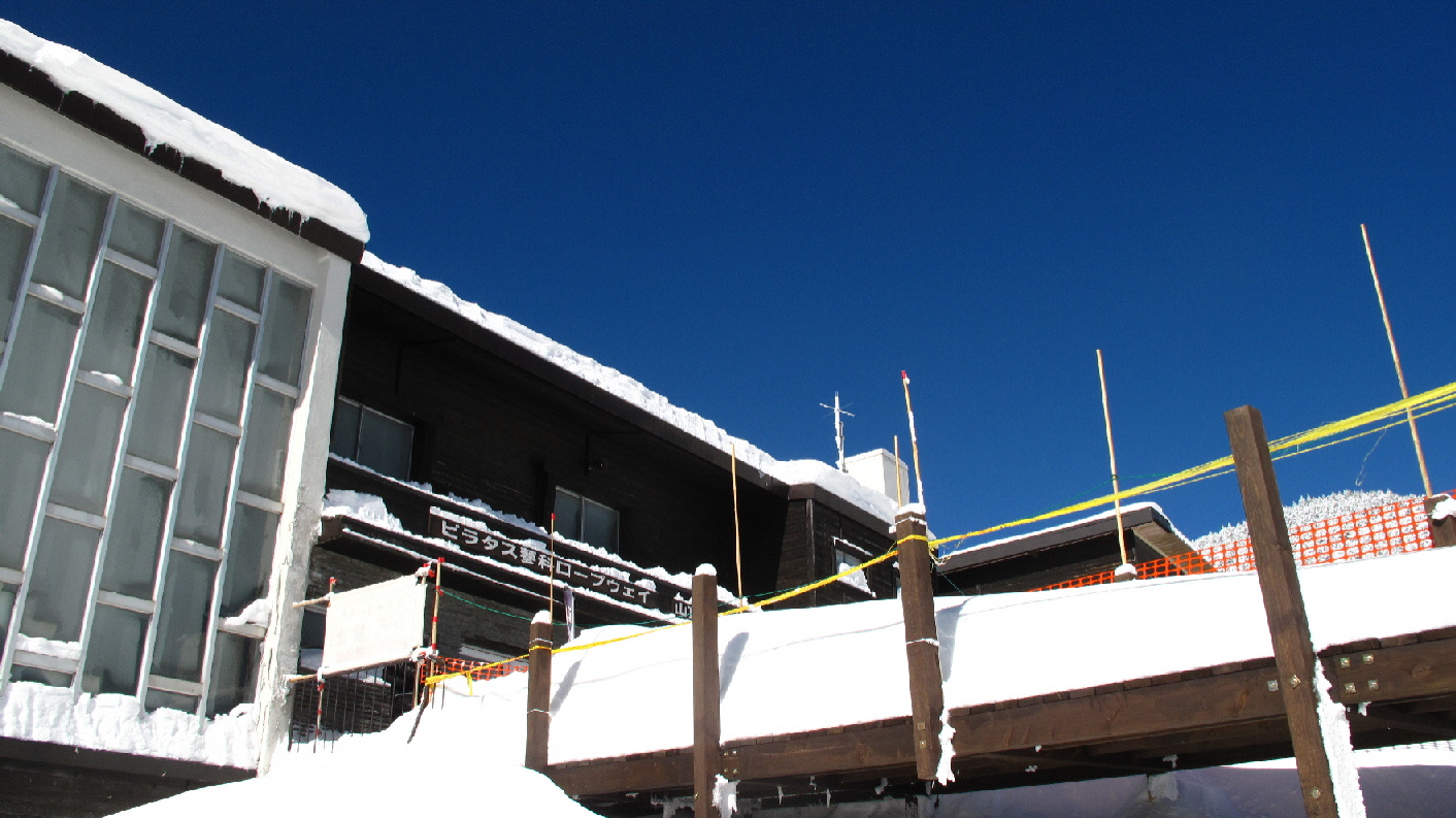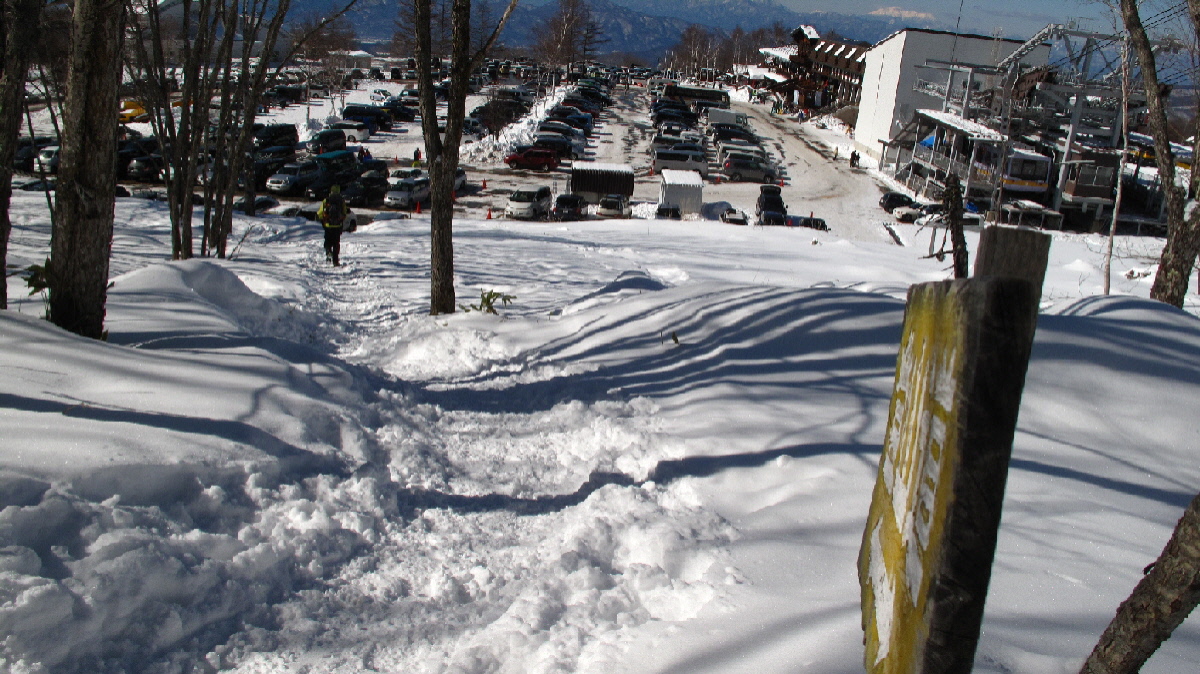 山頂駅を出たところで、スキーの人はどんどん滑って行き~山の人は用意で混雑気味です