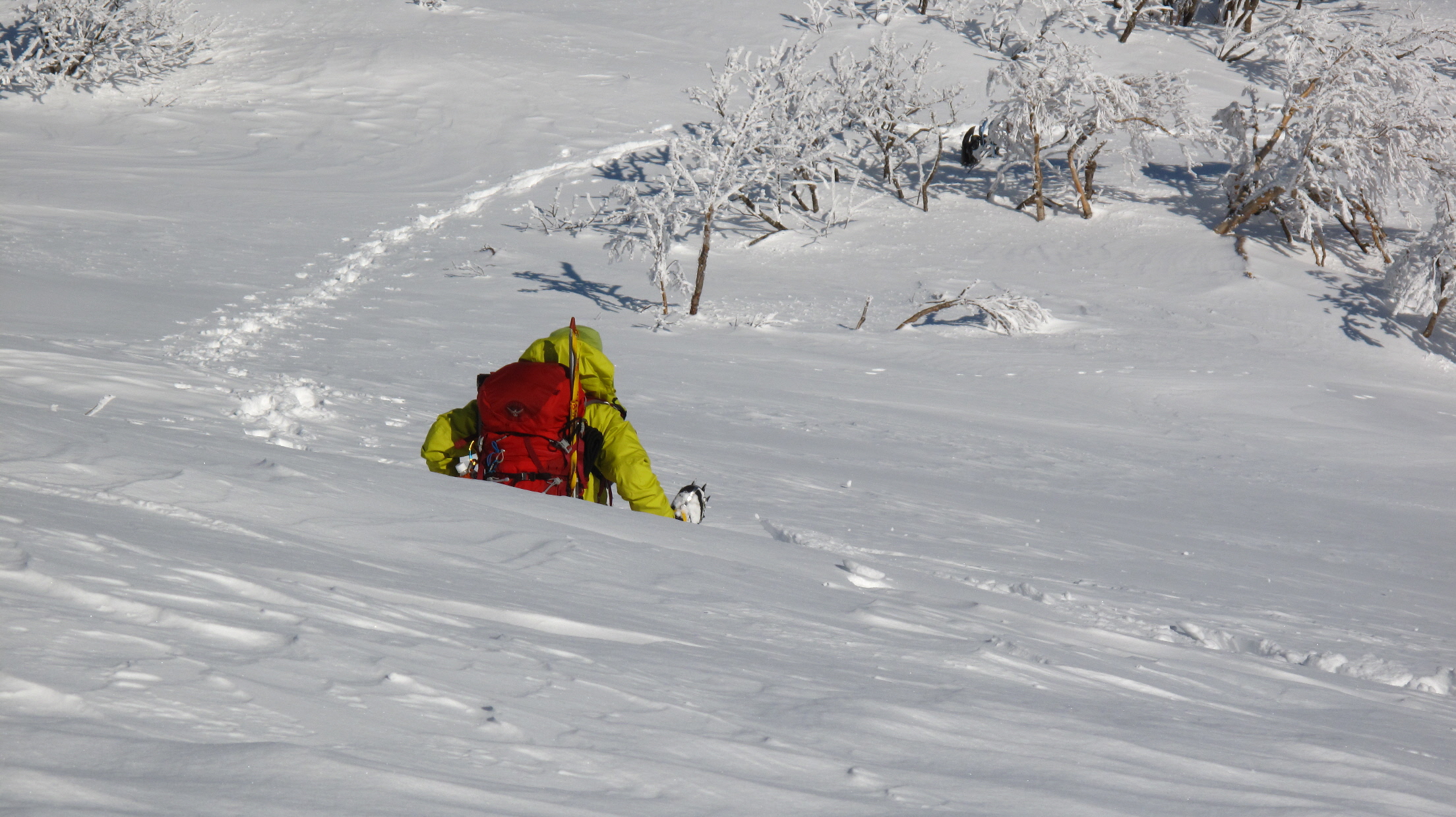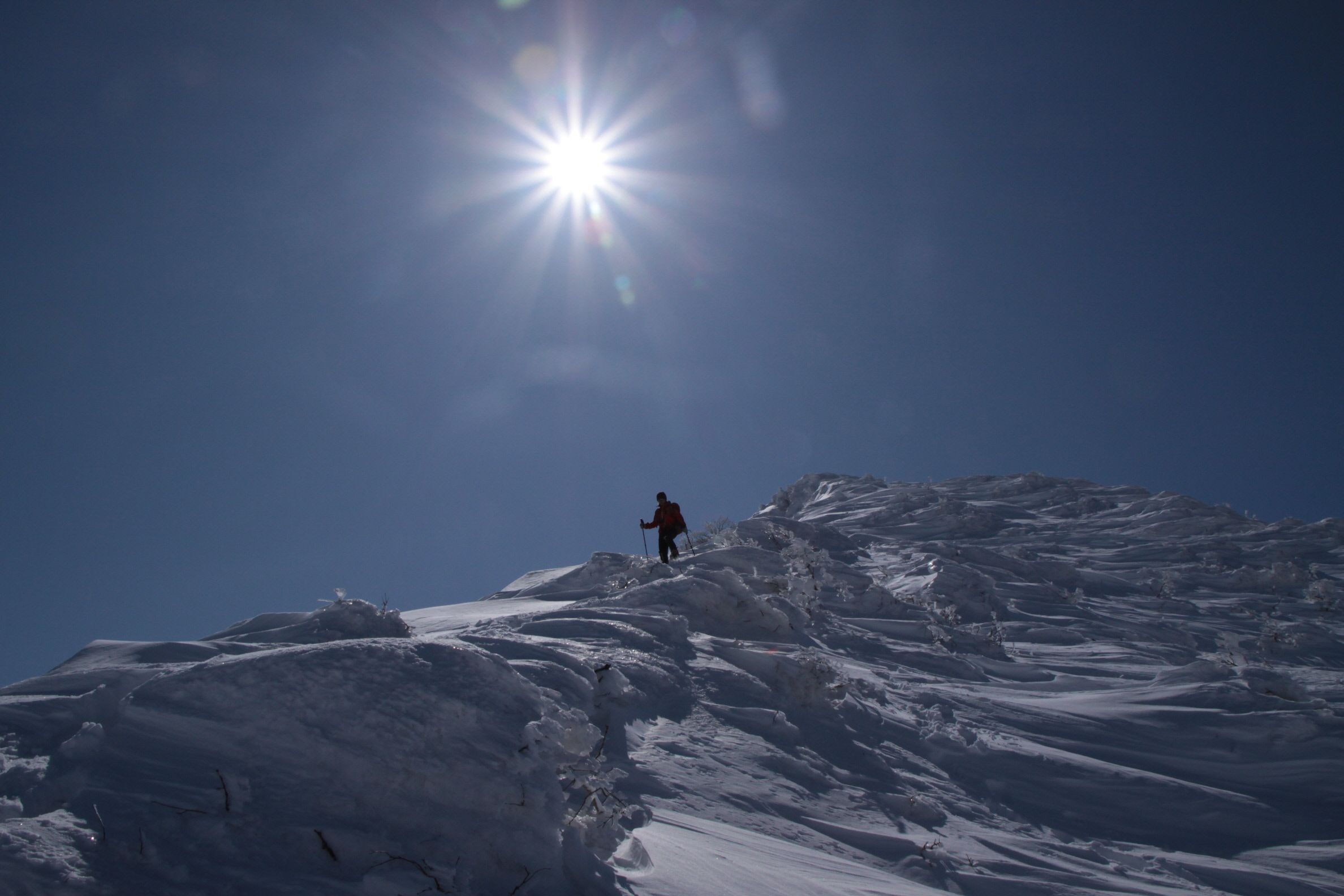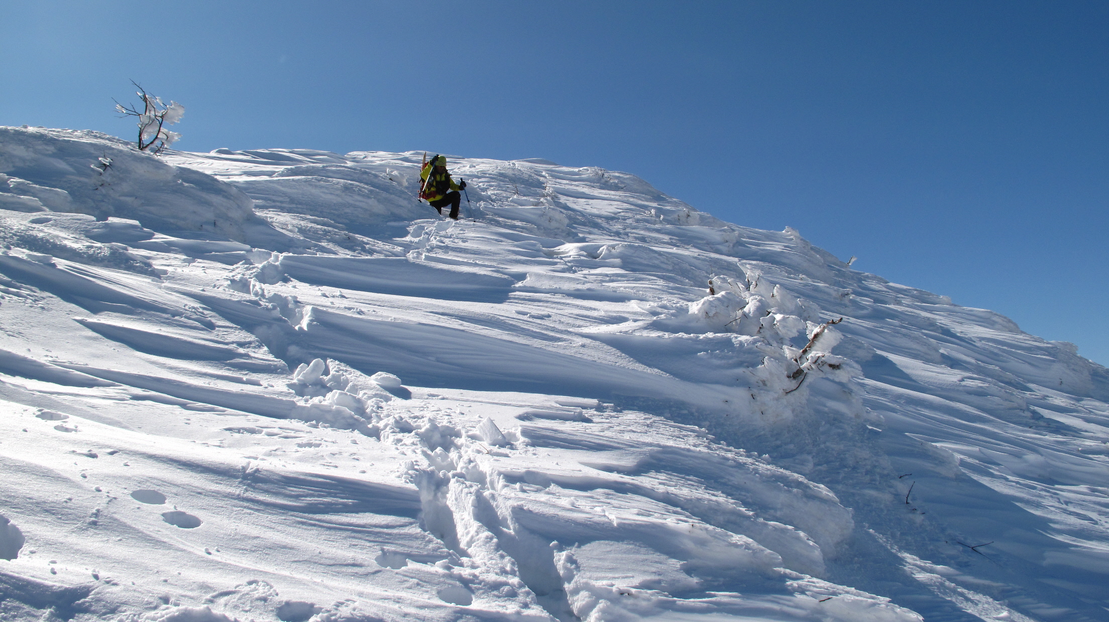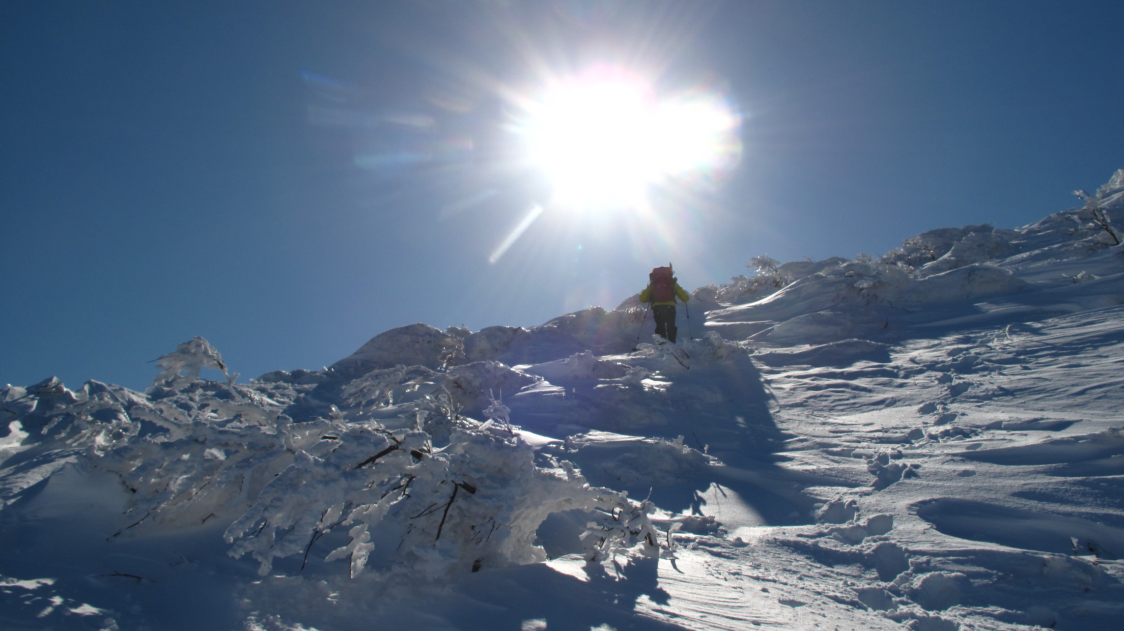 ちょうど、スノーシューを回収して少し休んでいたら、ソロの男性の方が登ってこられました
