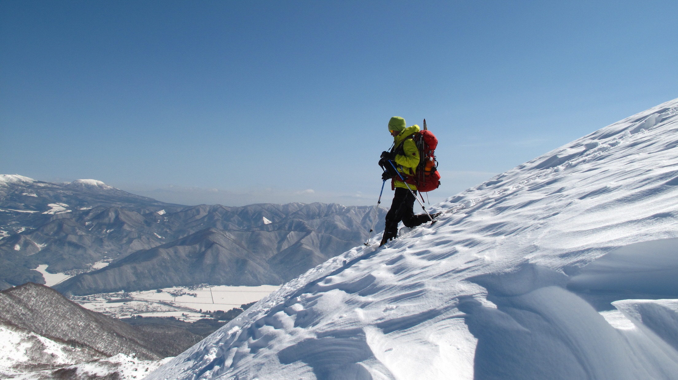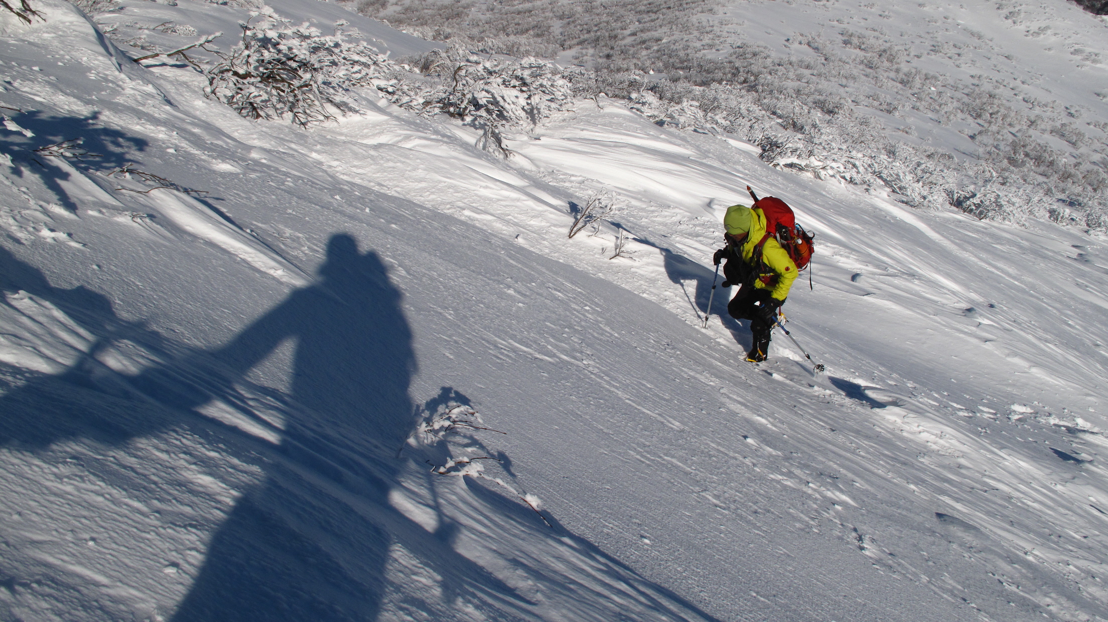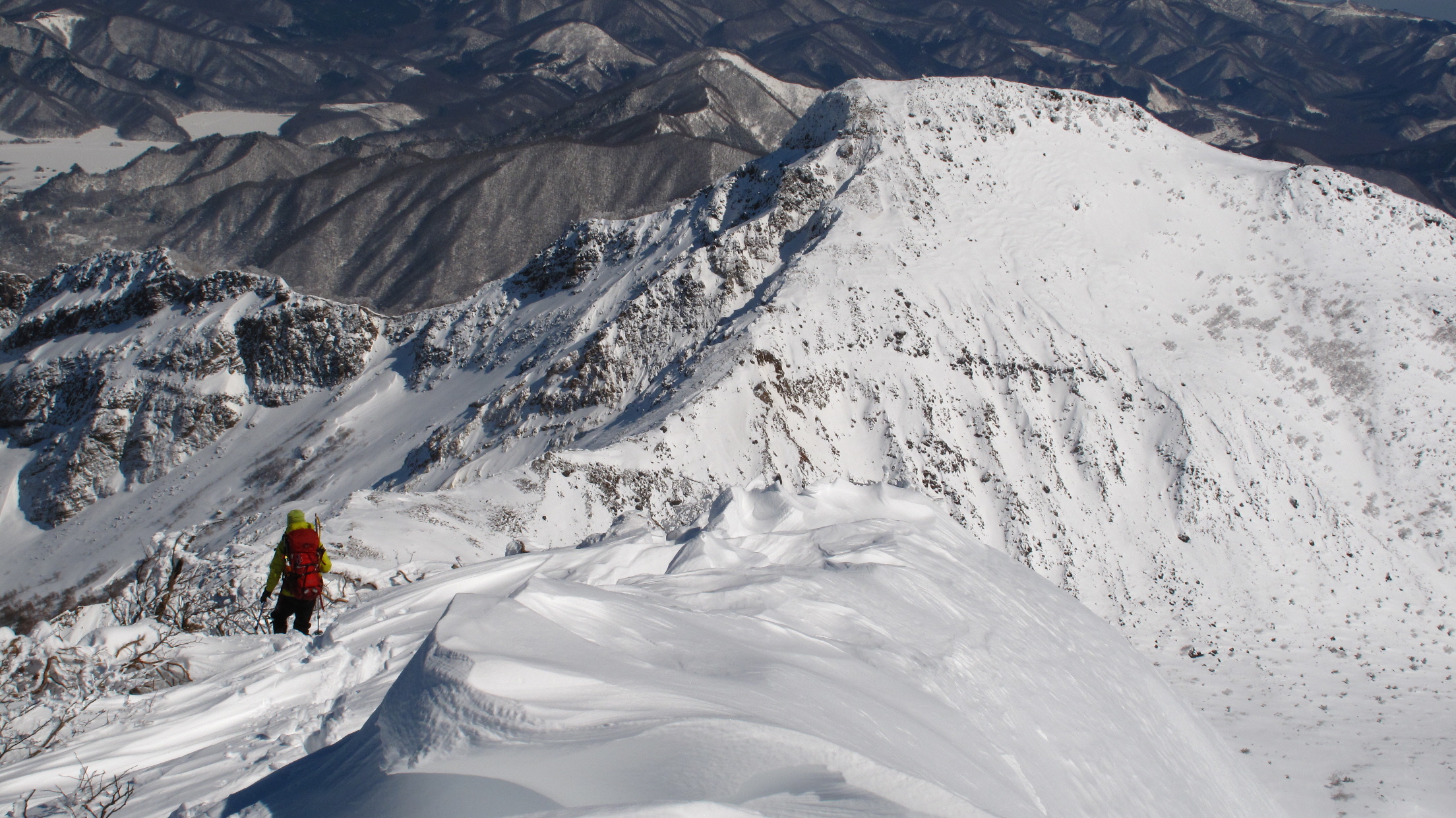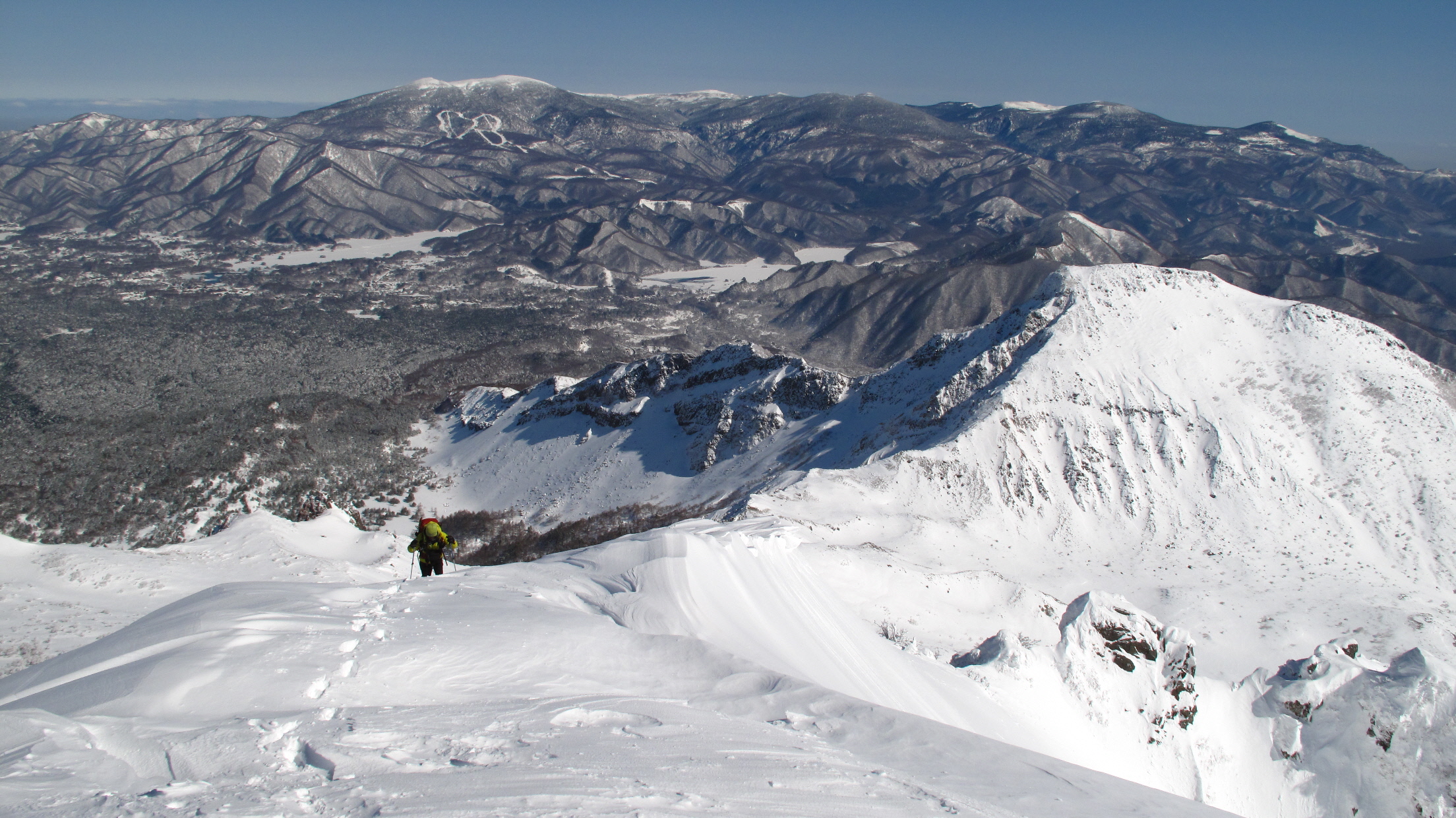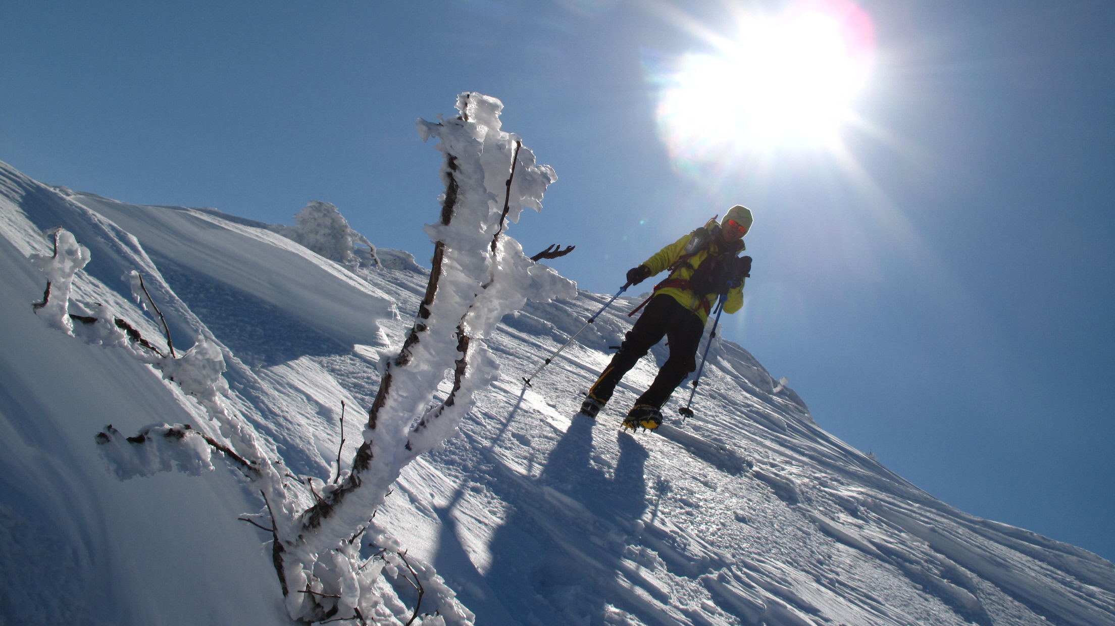 ちょうど、スノーシューを回収して少し休んでいたら、ソロの男性の方が登ってこられました