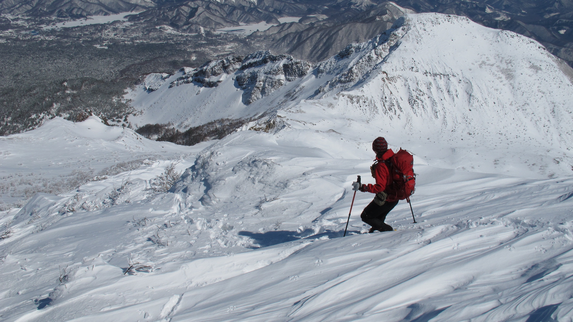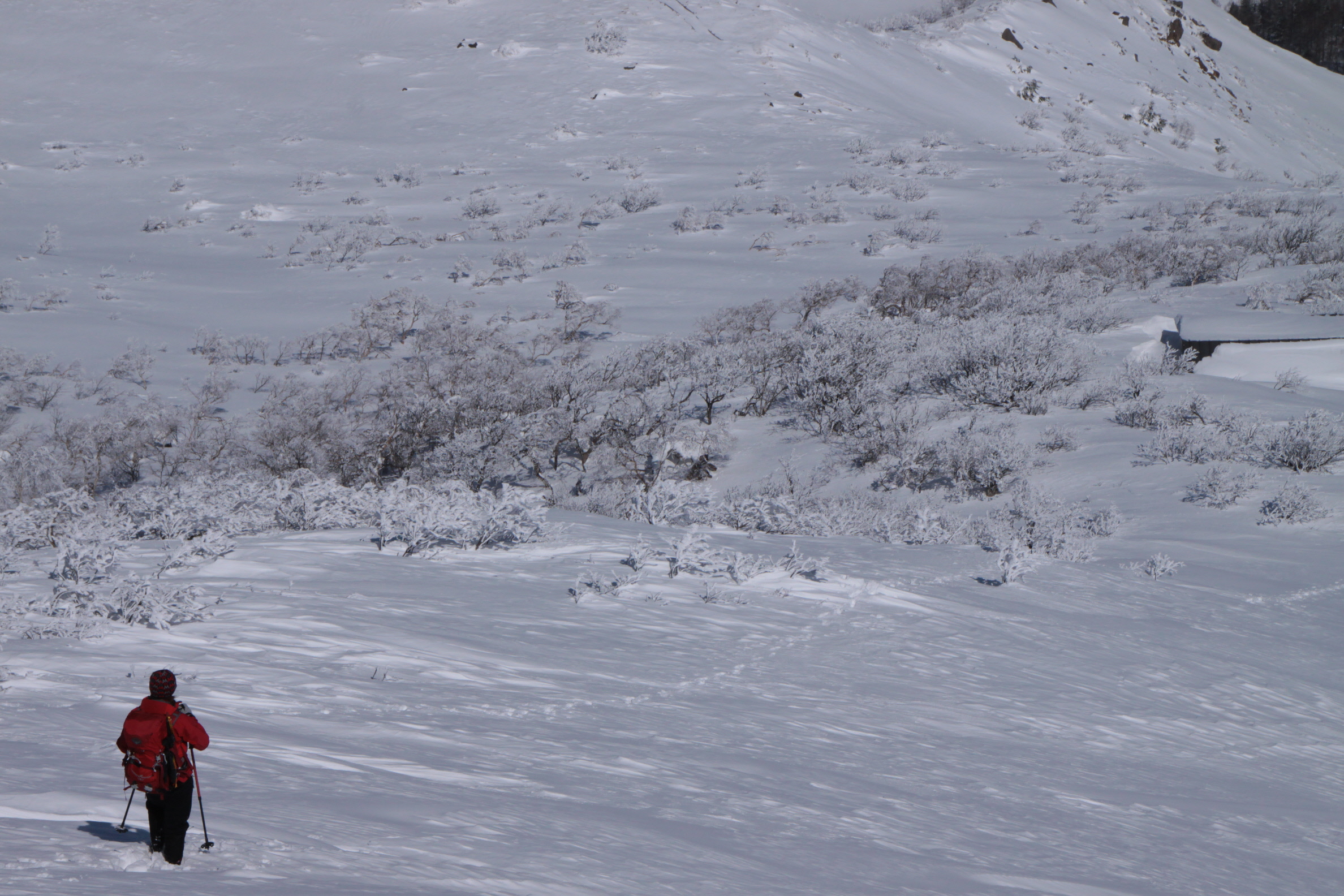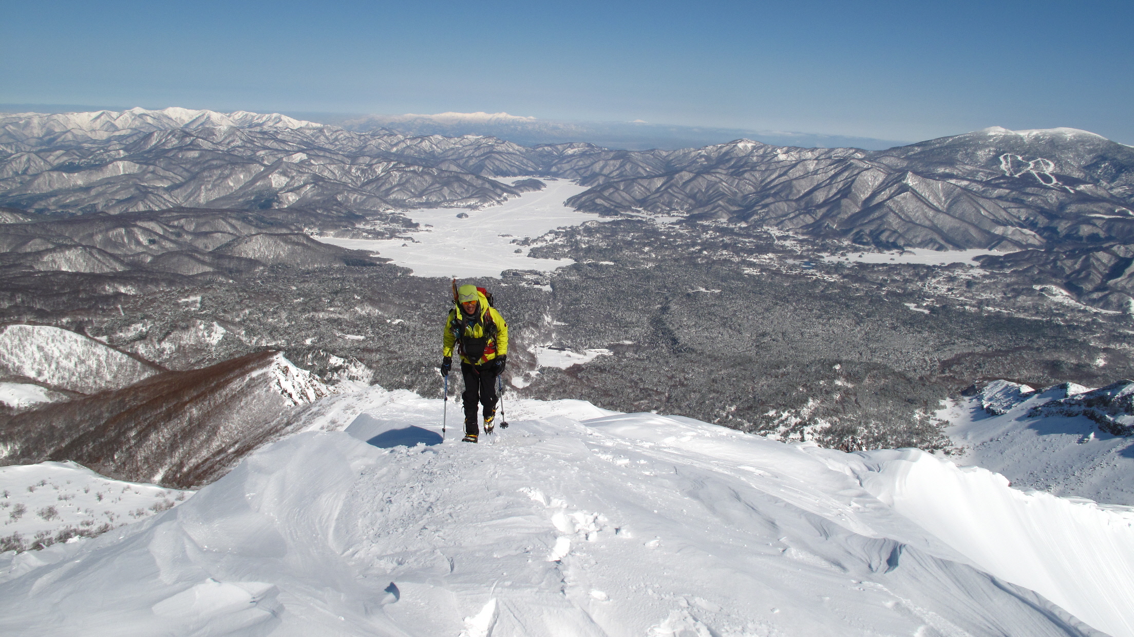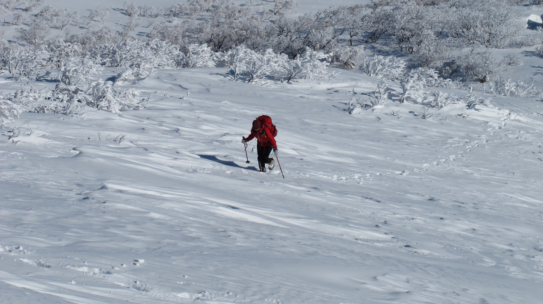 ちょうど、スノーシューを回収して少し休んでいたら、ソロの男性の方が登ってこられました