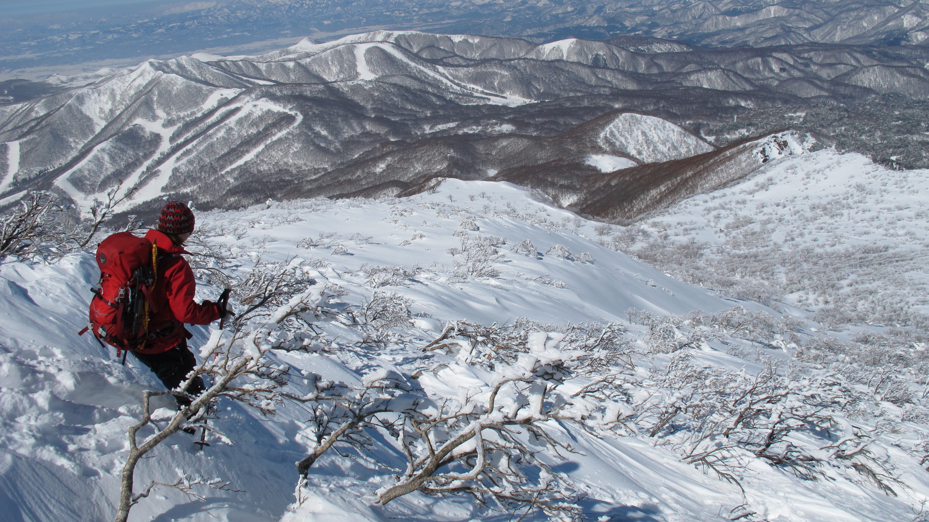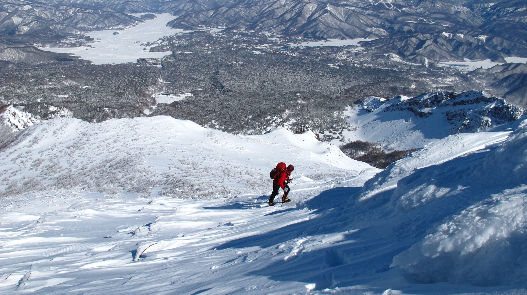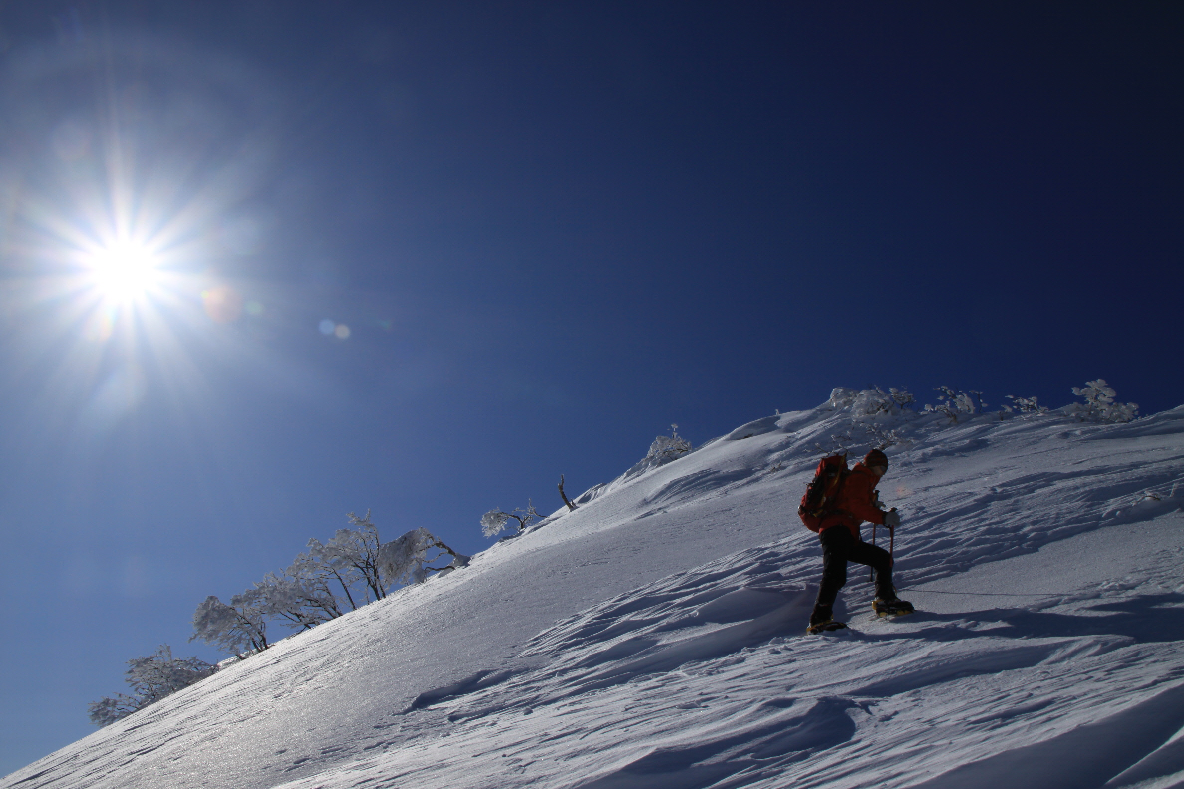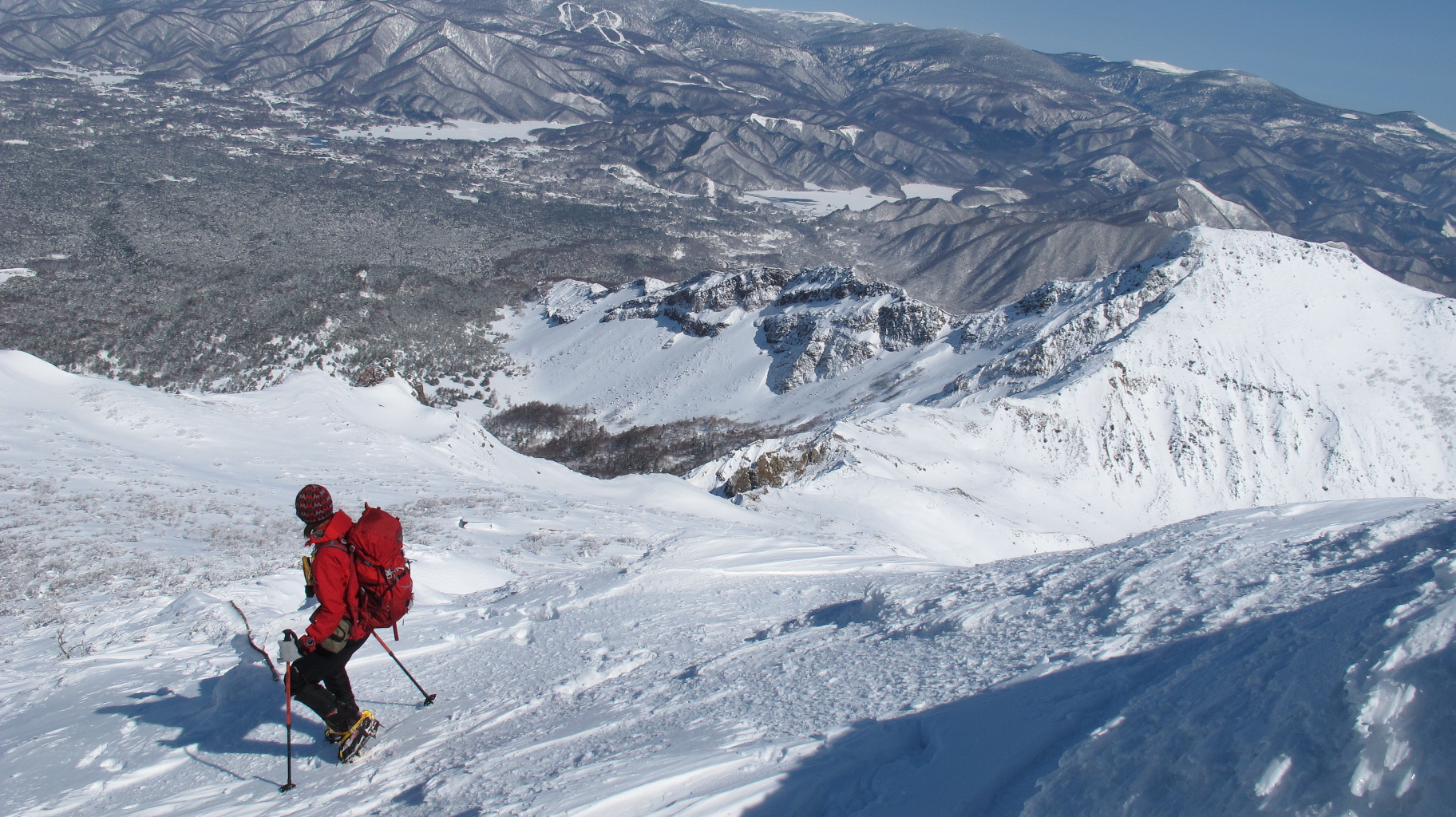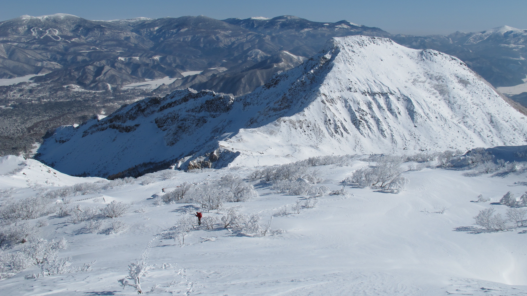 ちょうど、スノーシューを回収して少し休んでいたら、ソロの男性の方が登ってこられました