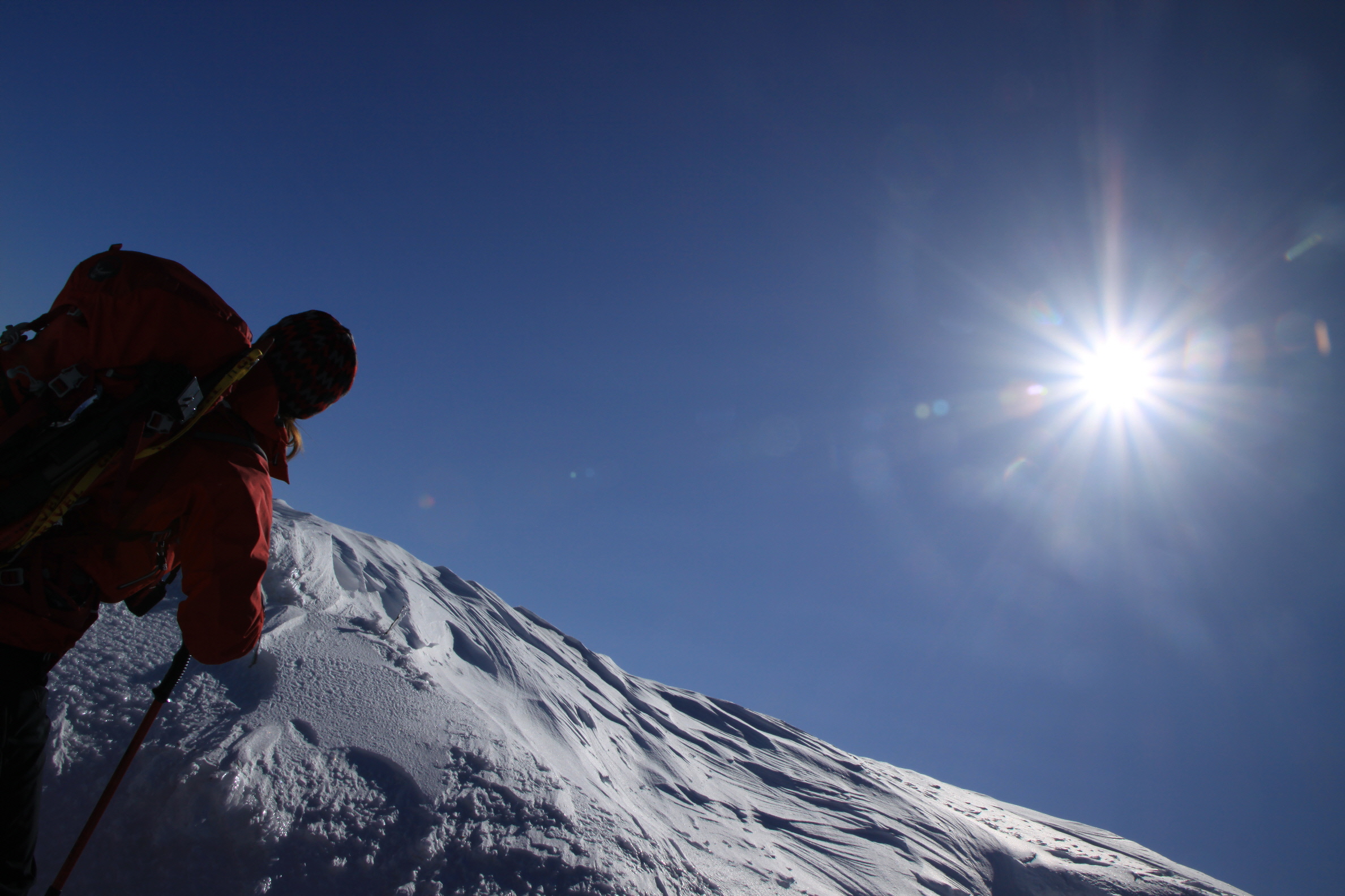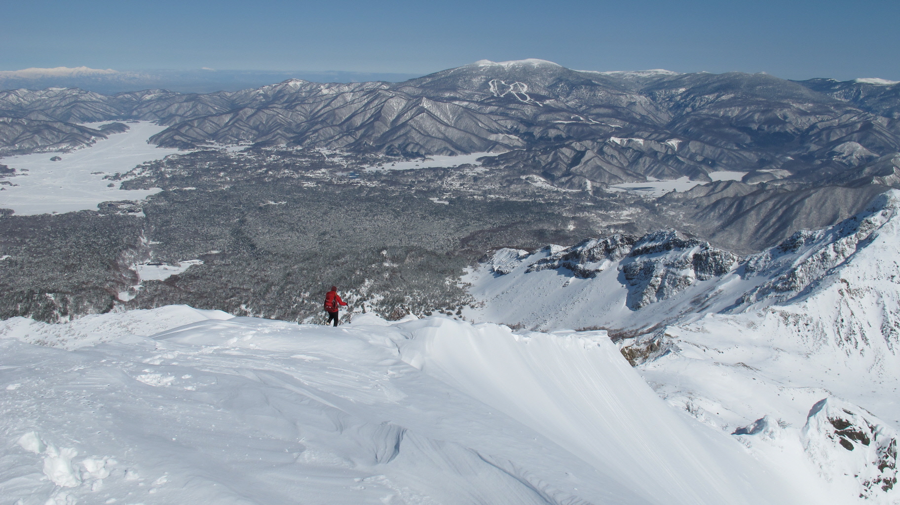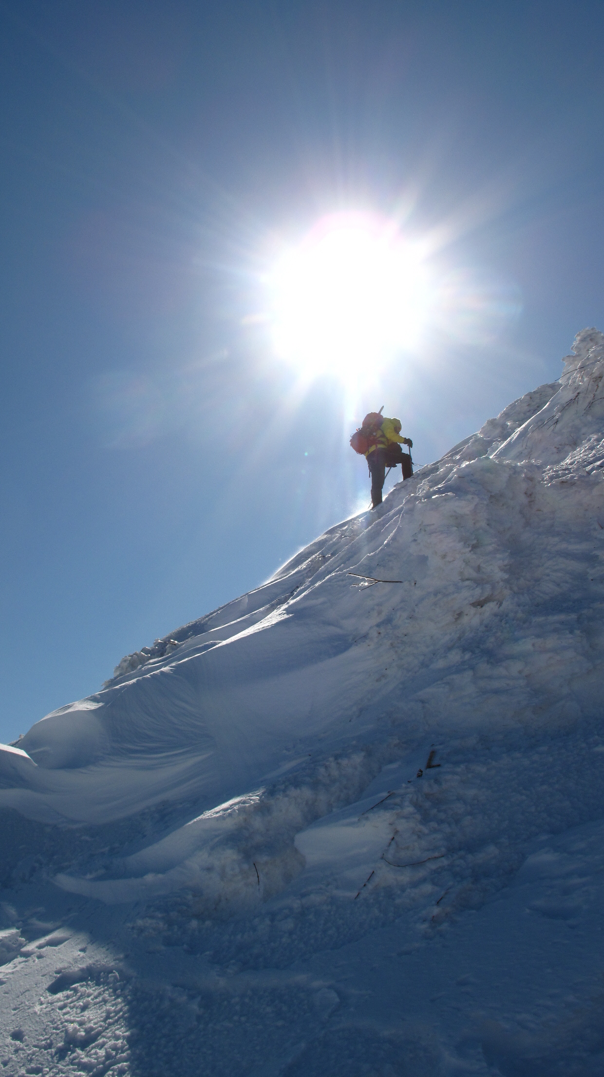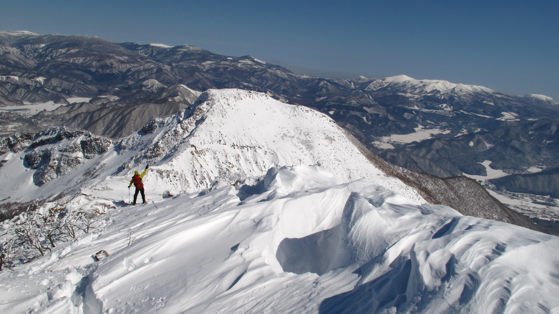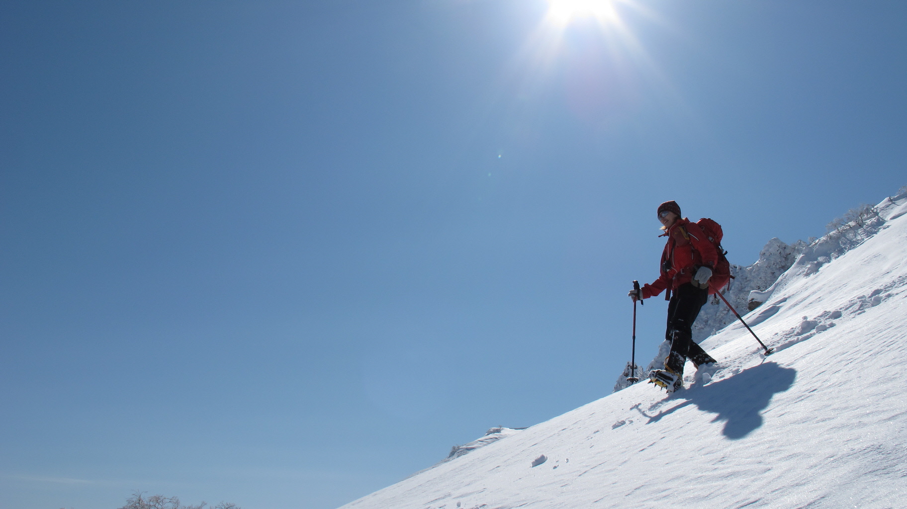 ちょうど、スノーシューを回収して少し休んでいたら、ソロの男性の方が登ってこられました