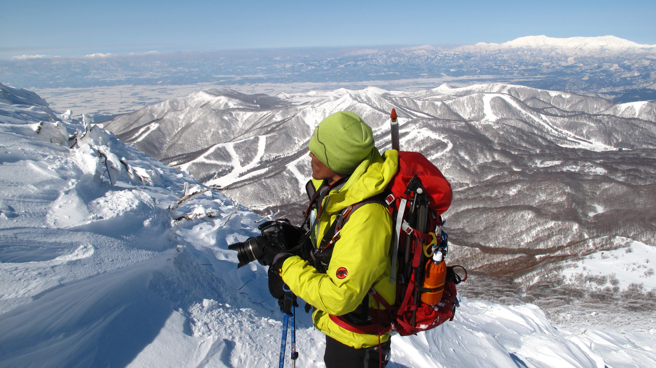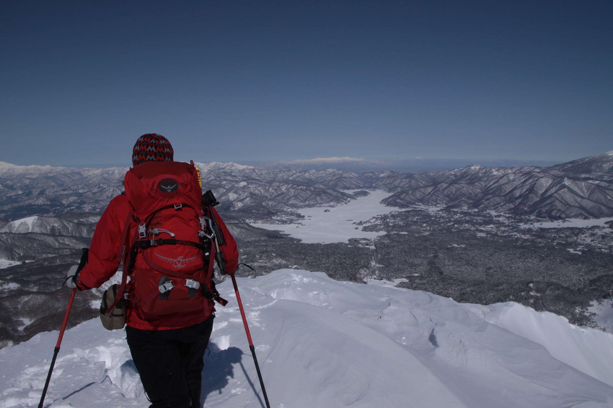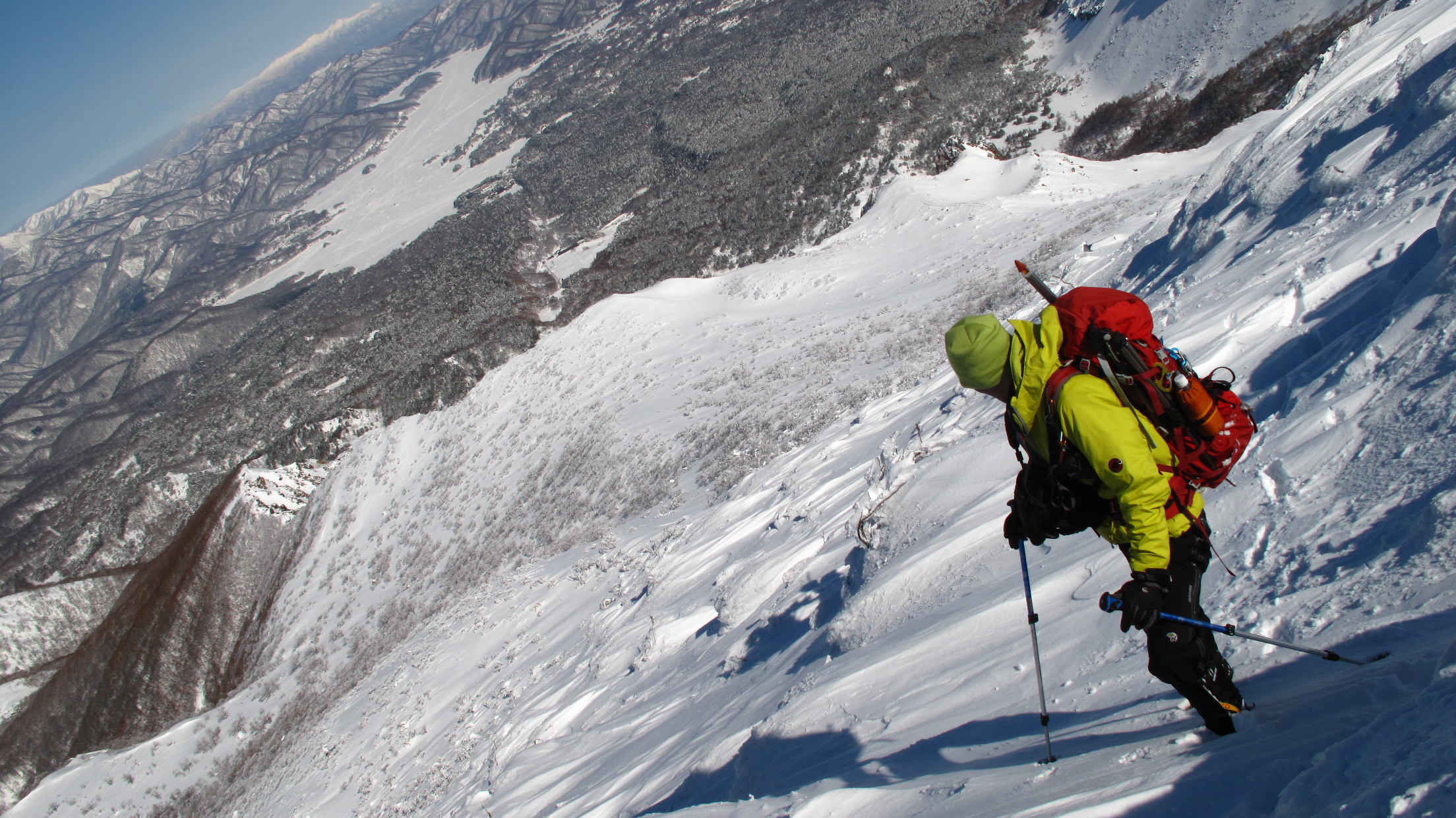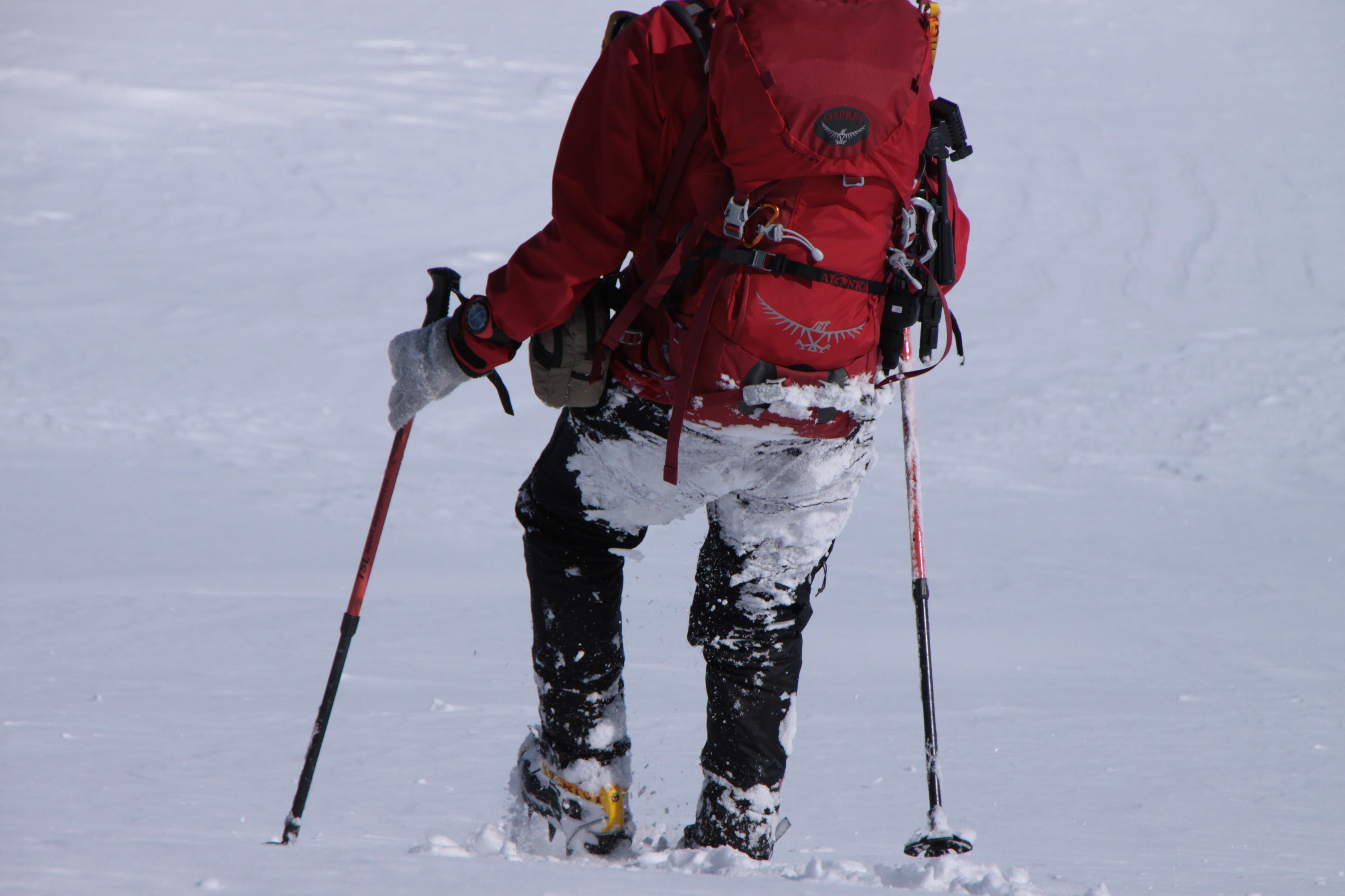 ちょうど、スノーシューを回収して少し休んでいたら、ソロの男性の方が登ってこられました