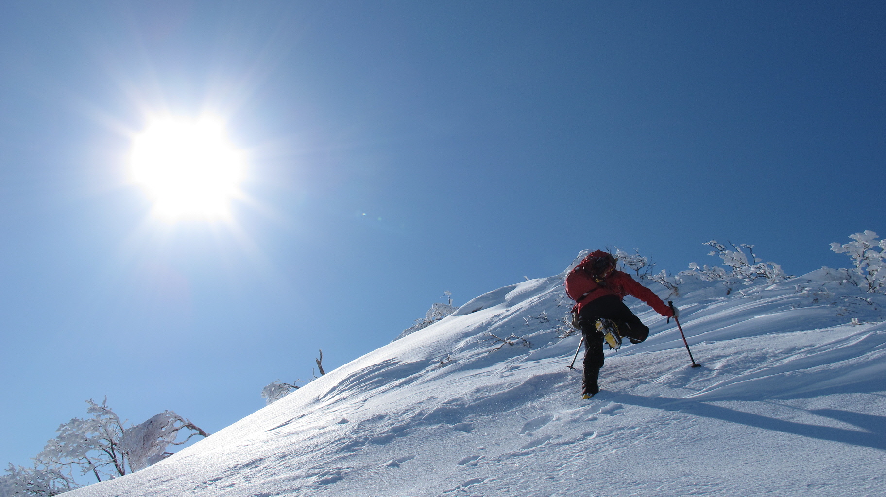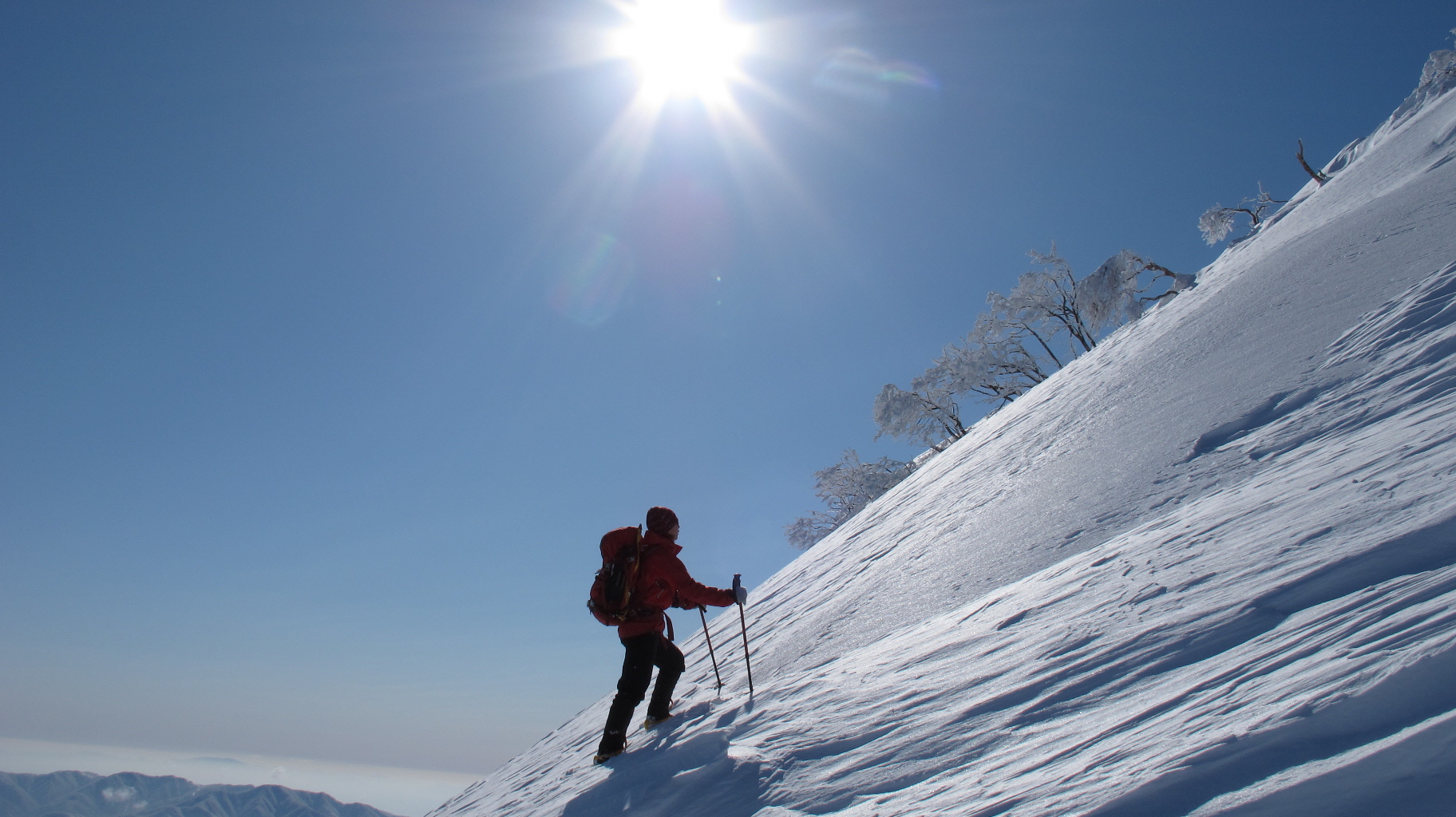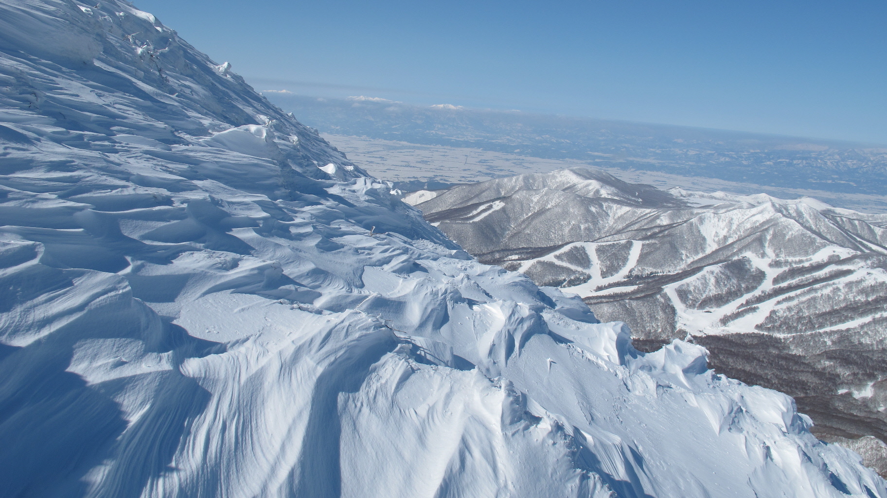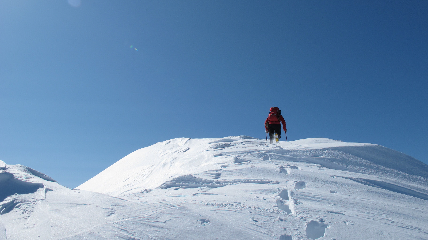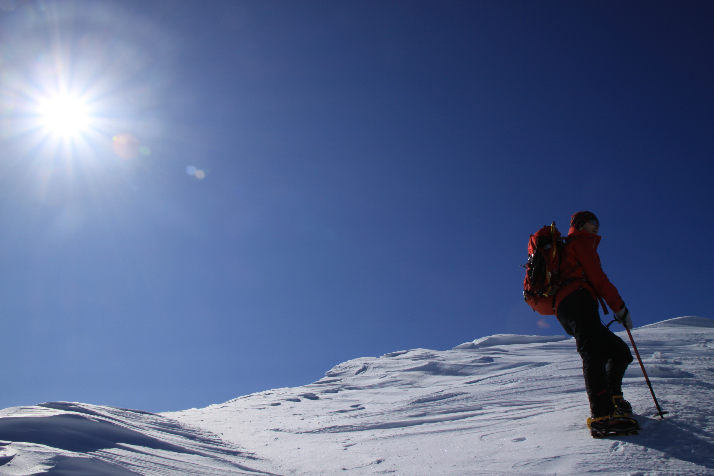 ちょうど、スノーシューを回収して少し休んでいたら、ソロの男性の方が登ってこられました