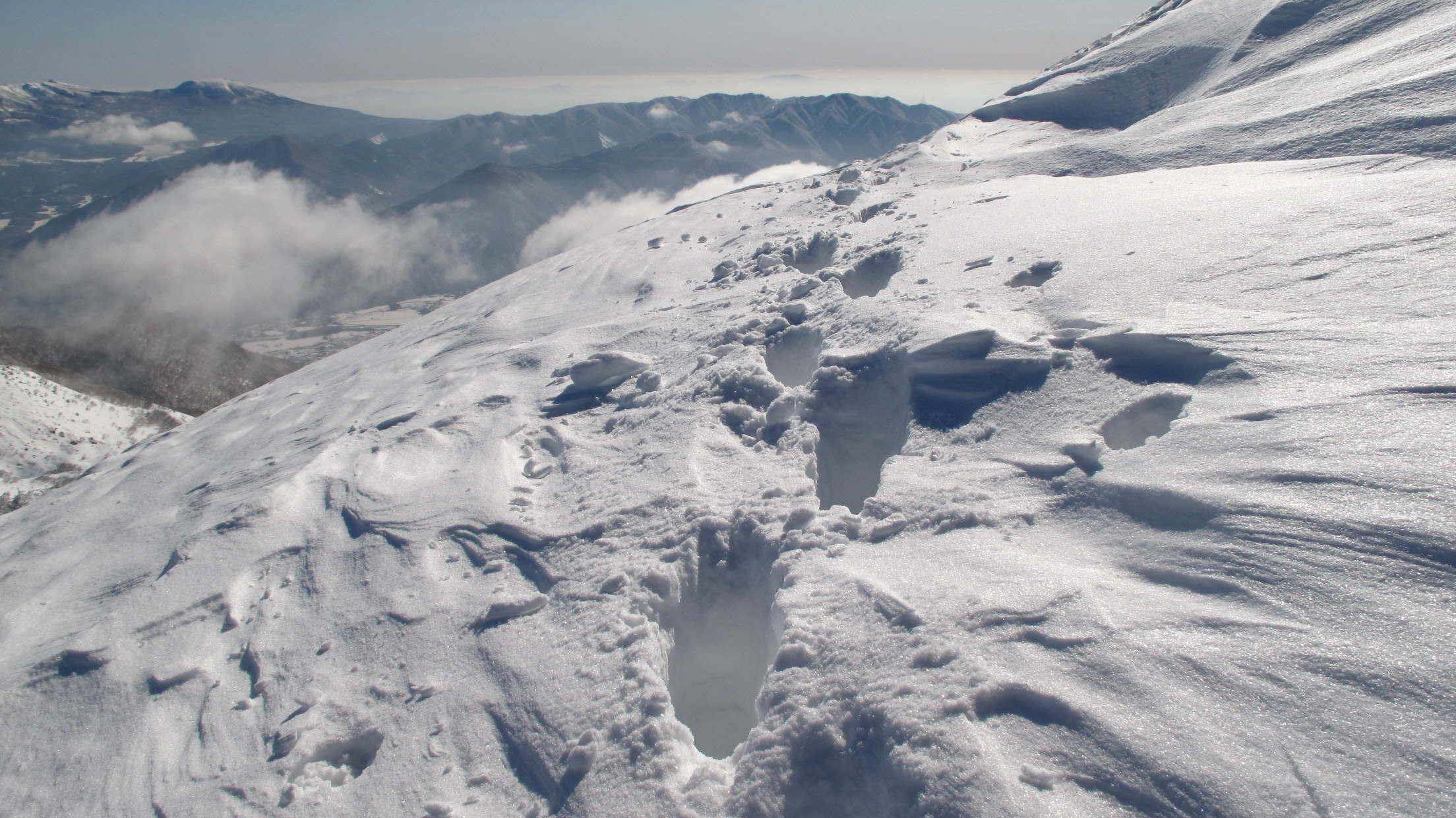 下りの方が登りよりも重みがかかる分、運が悪いとズボッといっちゃうので気を付けないとね!