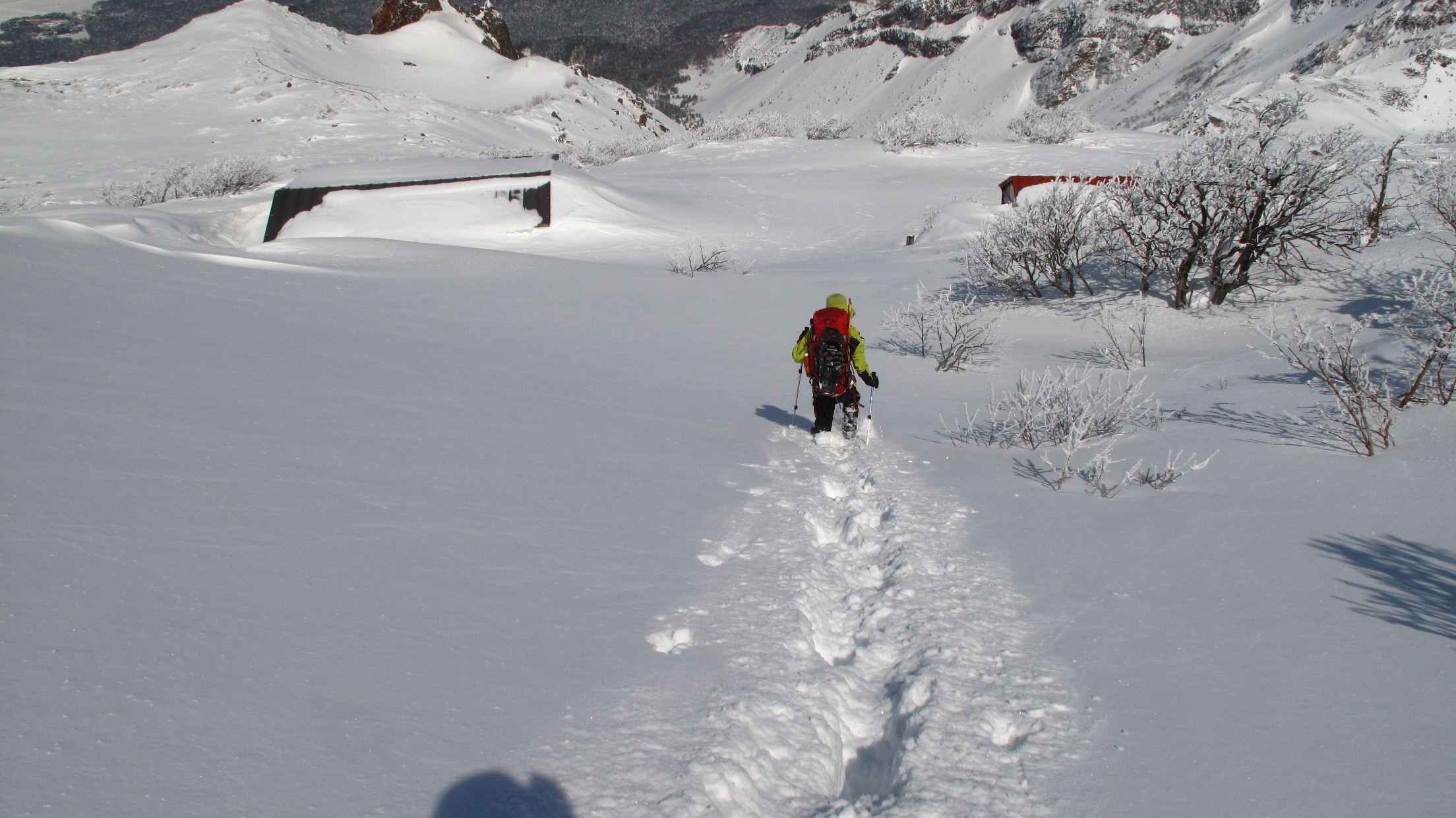 弘法清水小屋まであと少し お留守番中のスノーシューを回収せねばっ