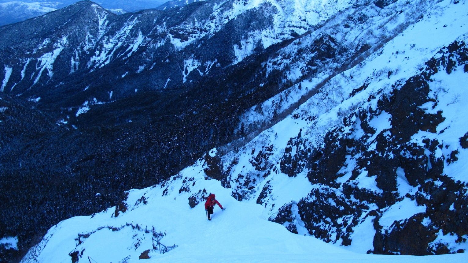 イイ感じで登って行く相方Mクンそろそろあの辺り・・・ナイフリッジかな~