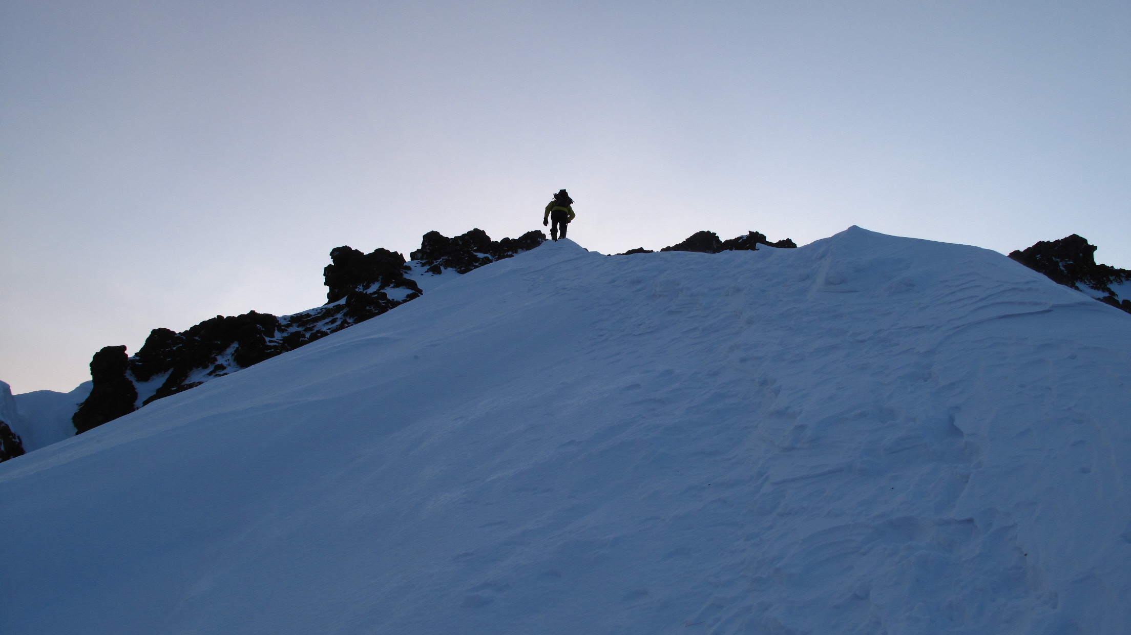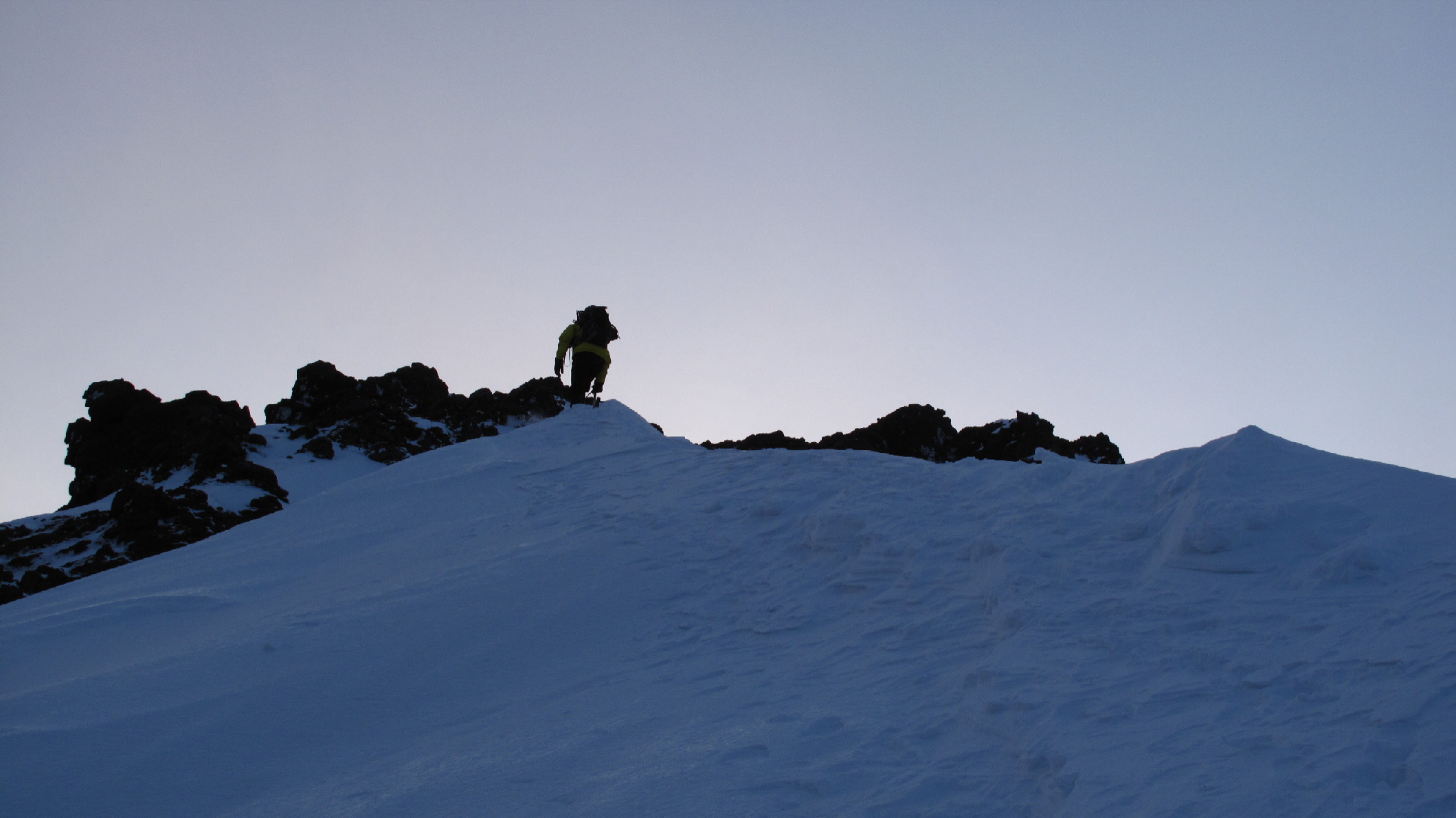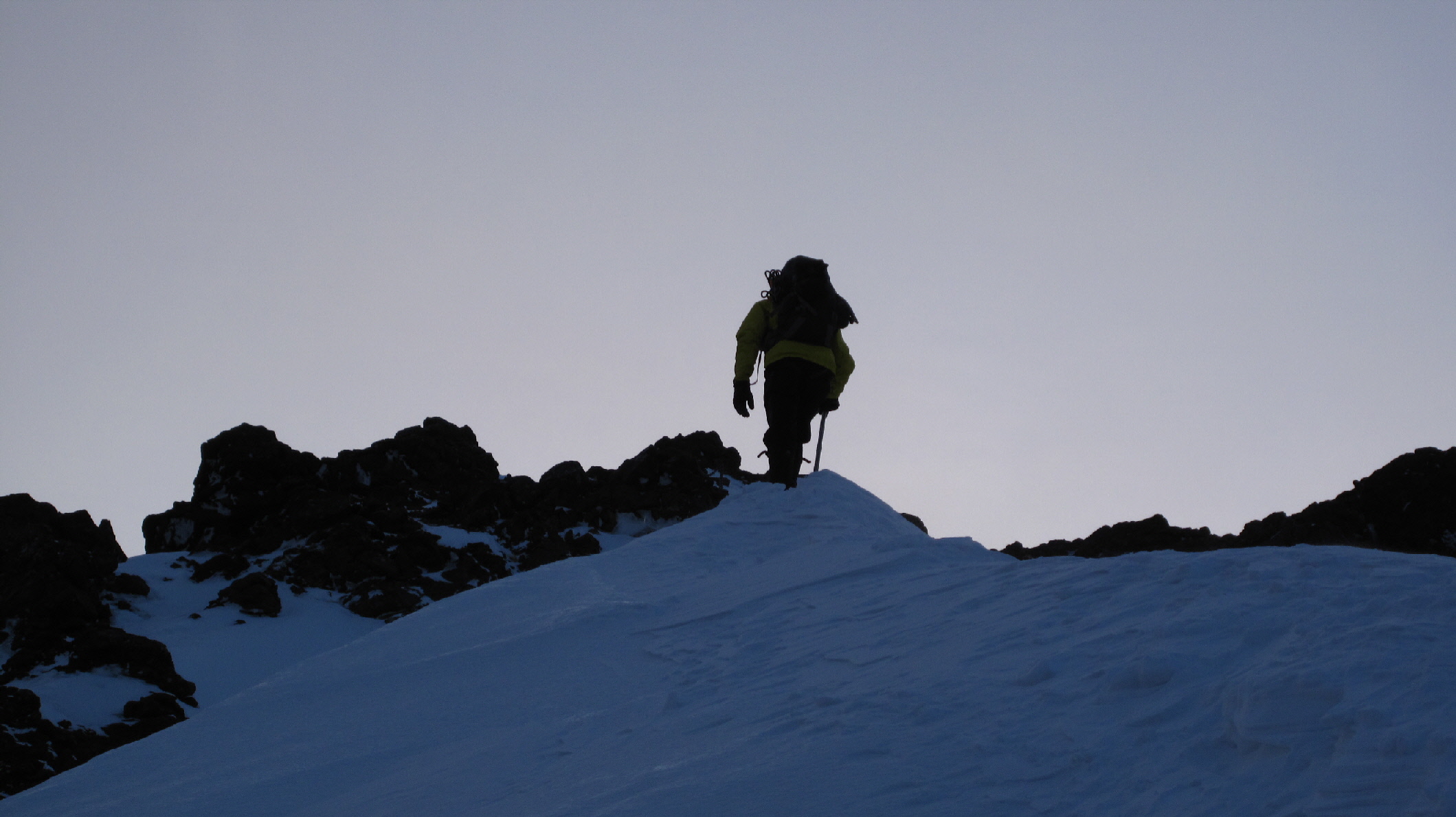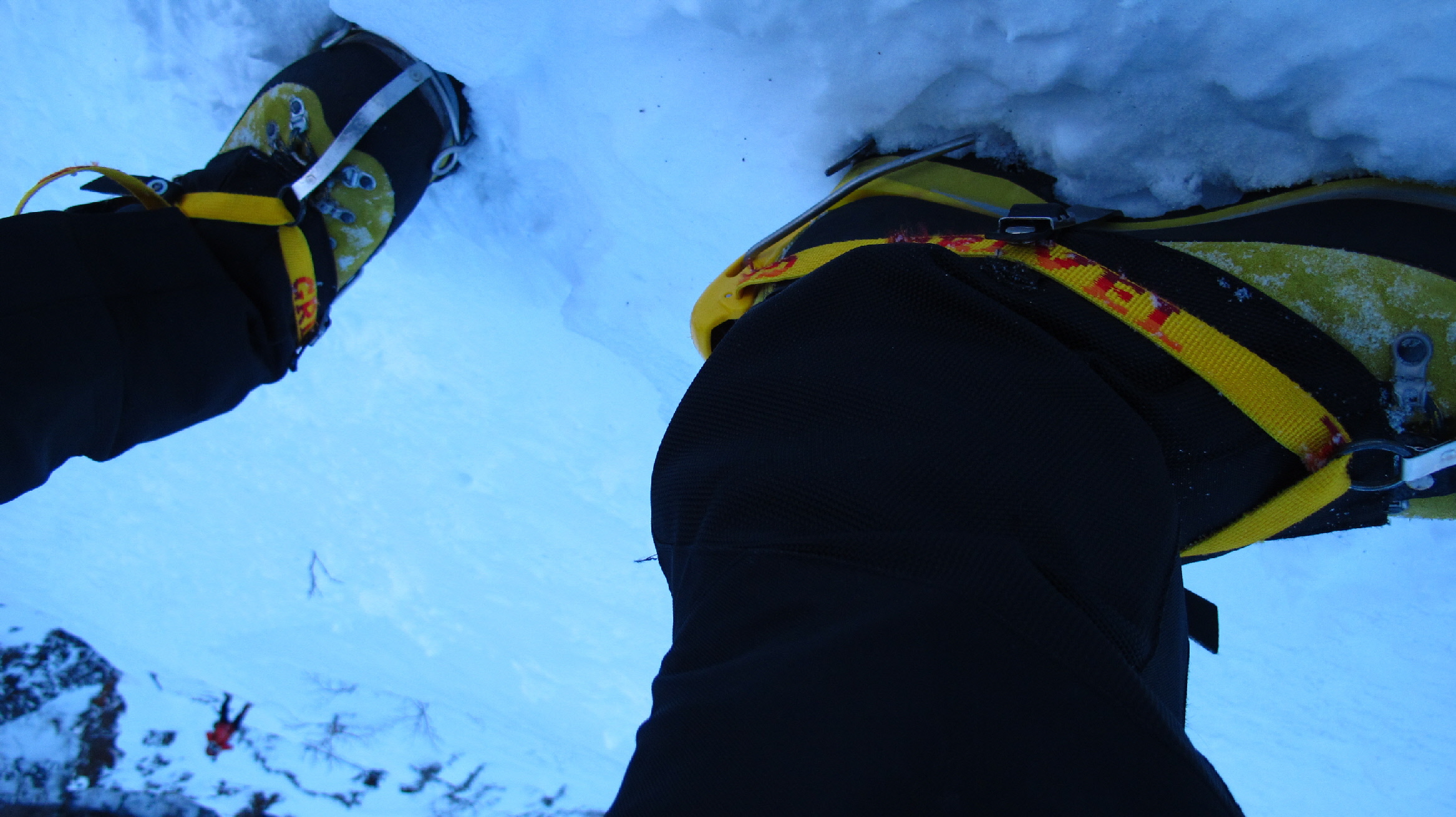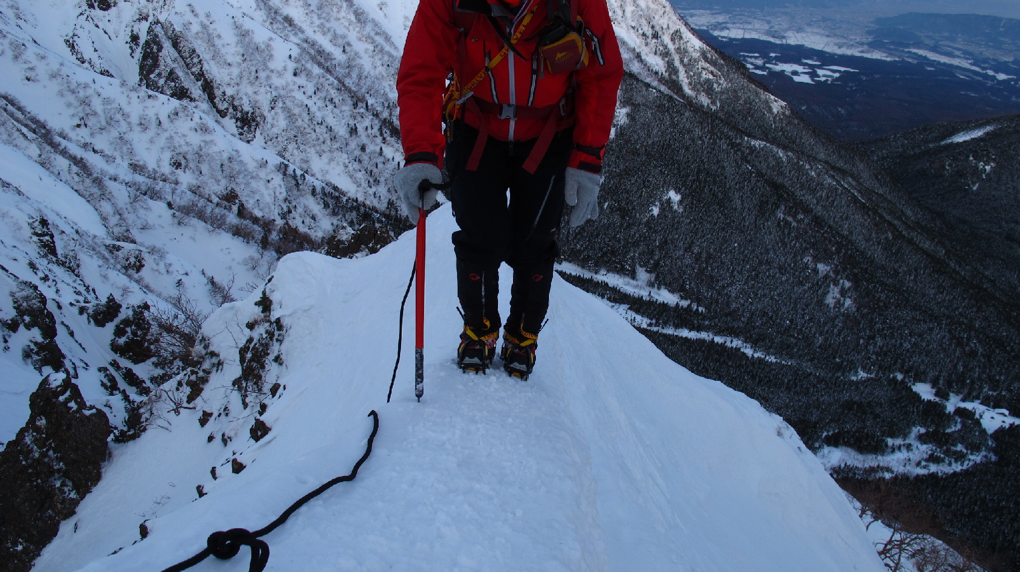 そして、腰にロープをくくり、恐怖のナイフリッジを通過します