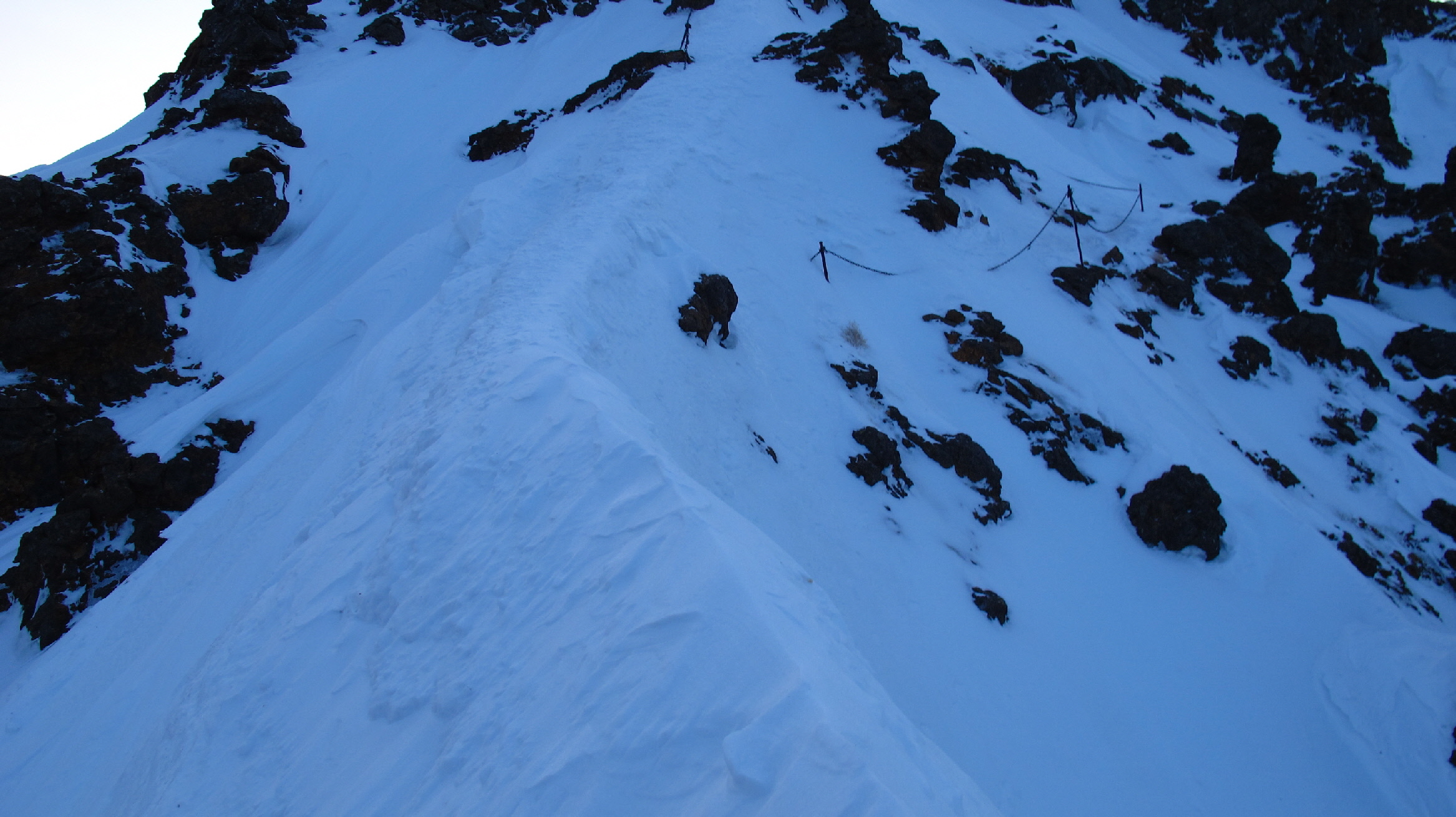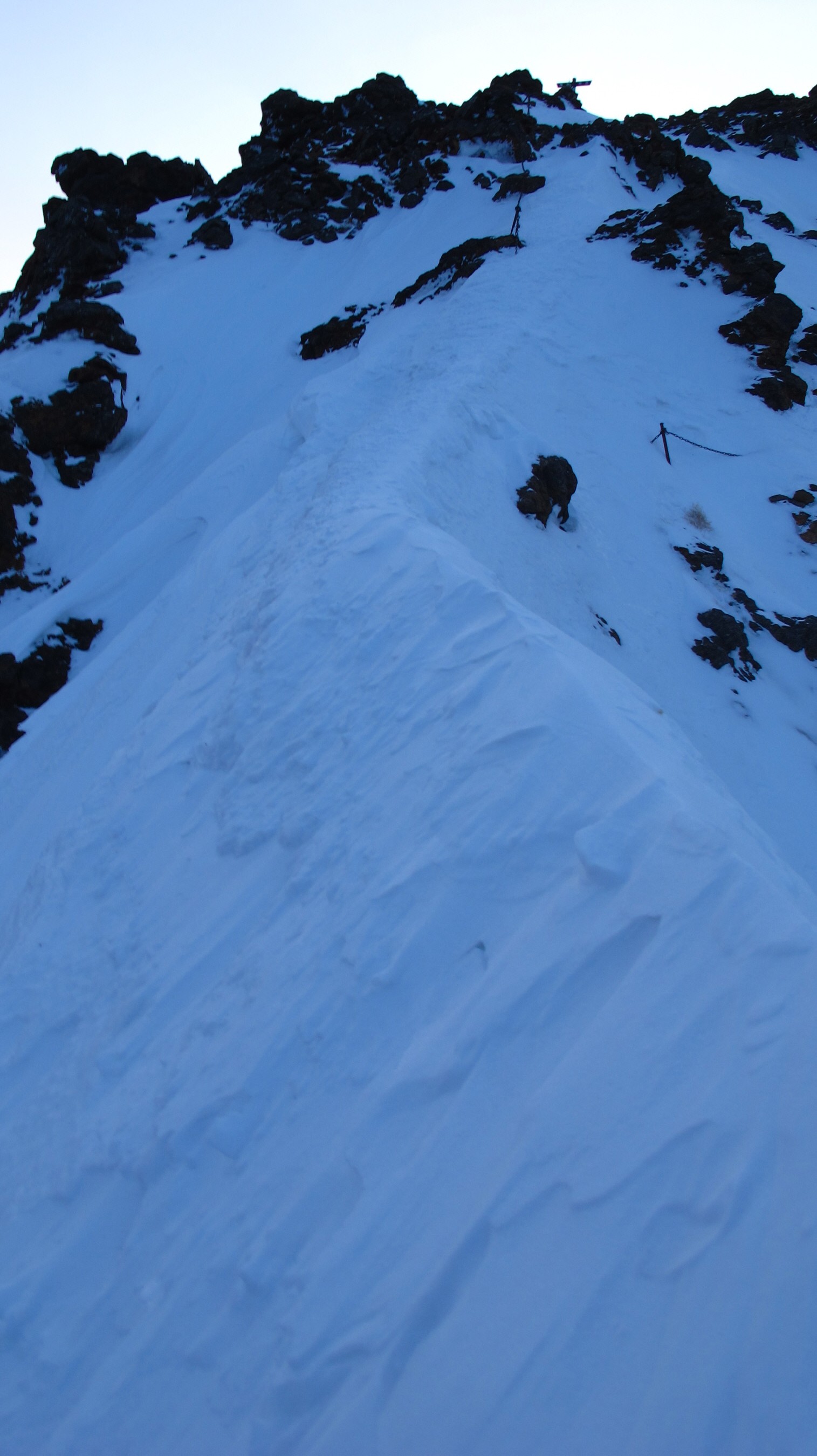 イイ感じだけど、地蔵の頭の直下には、ナイフリッジが待ってます