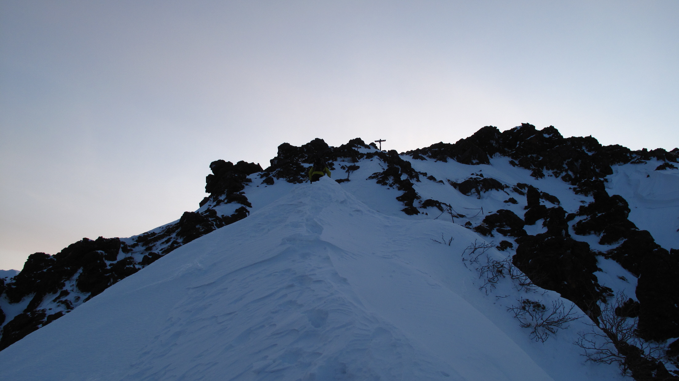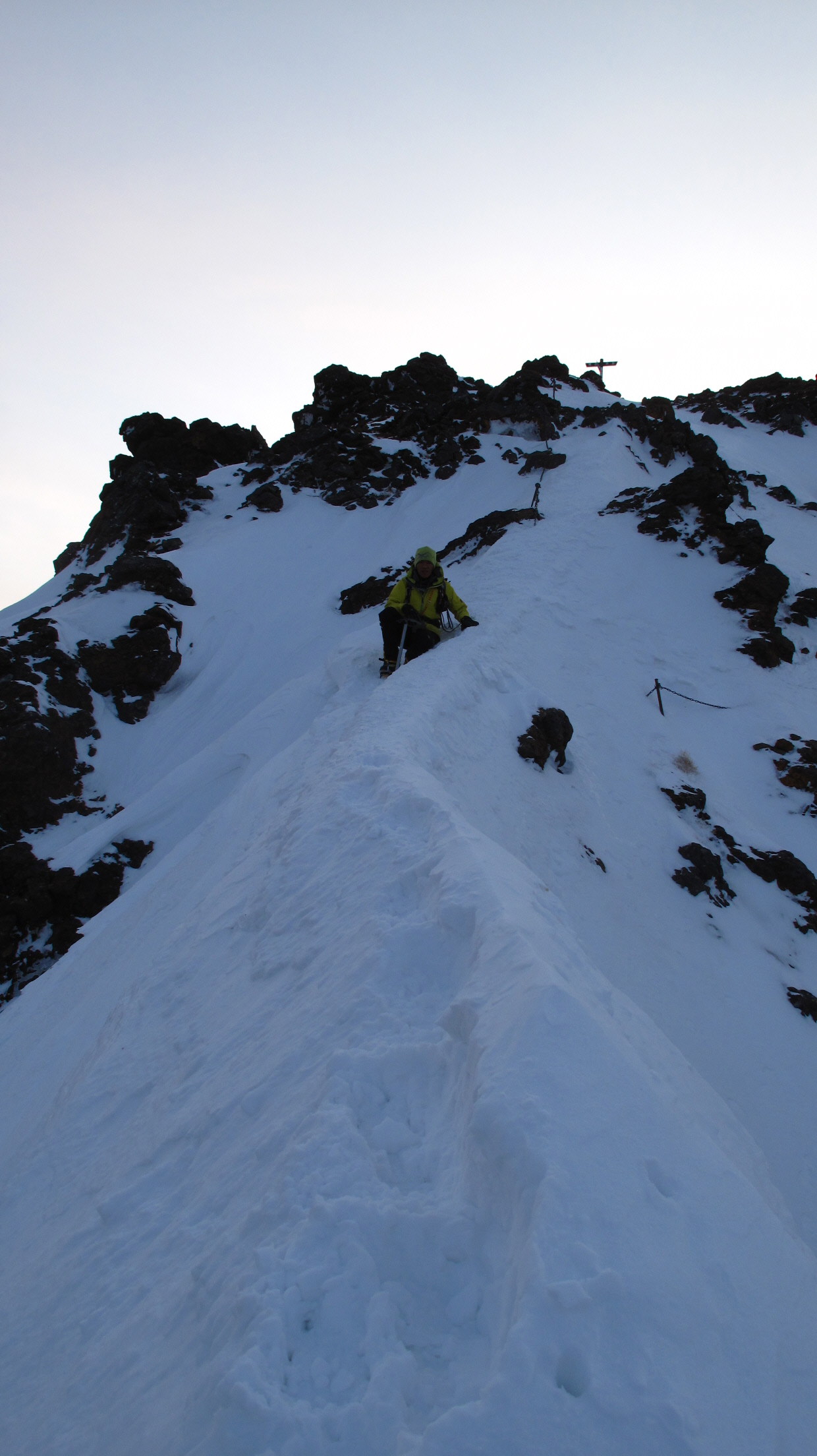 ナイフリッジを通過したKちんも一安心だけど、気を抜かずに地蔵の頭まであとちょっと登ります