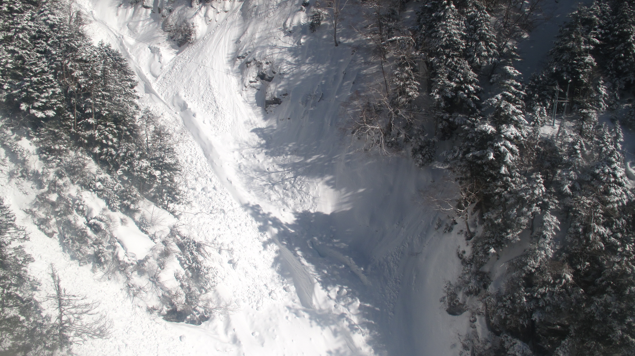ロープーウェイに乗っていると、雪崩が起きているのが見えました
