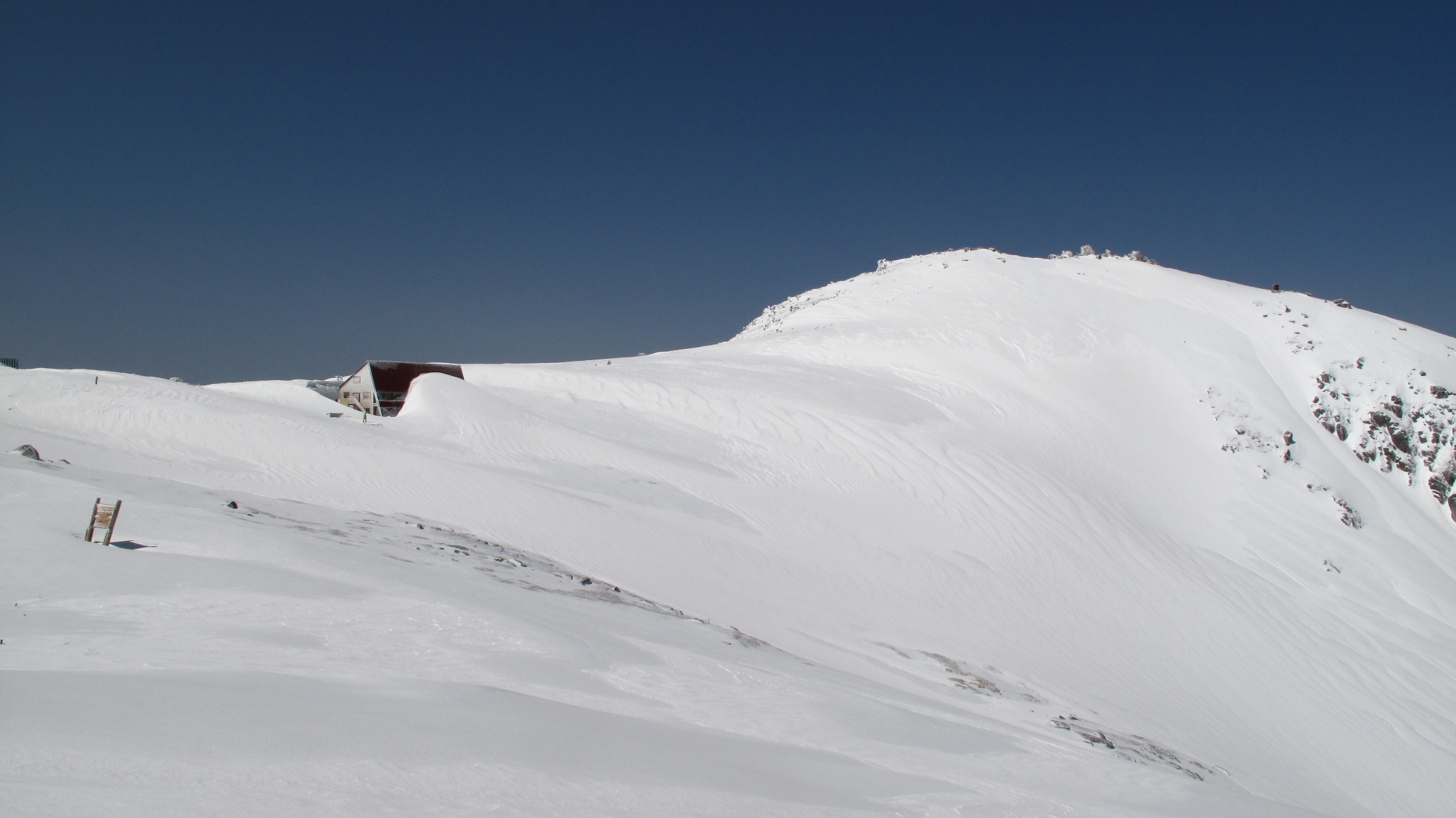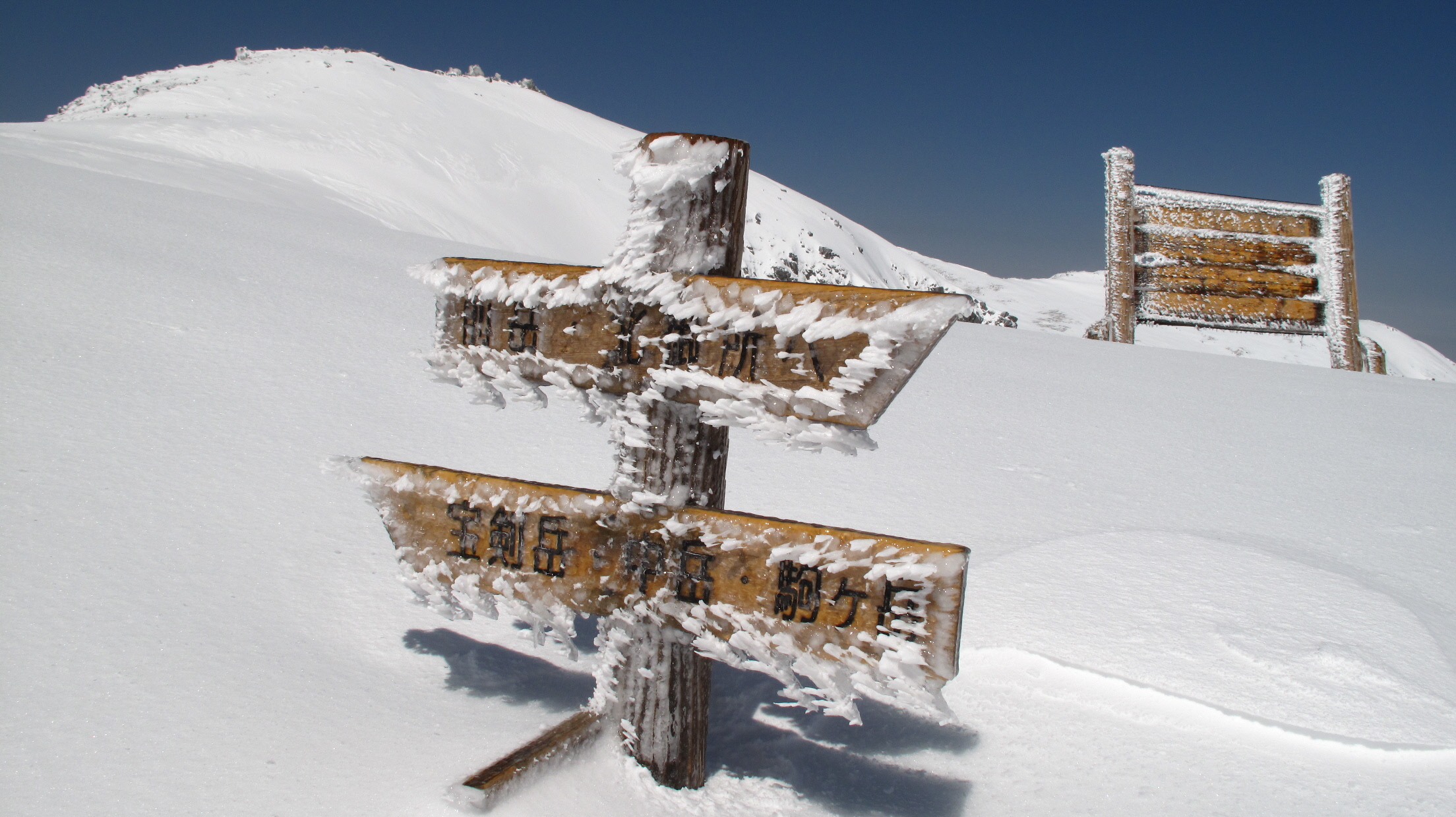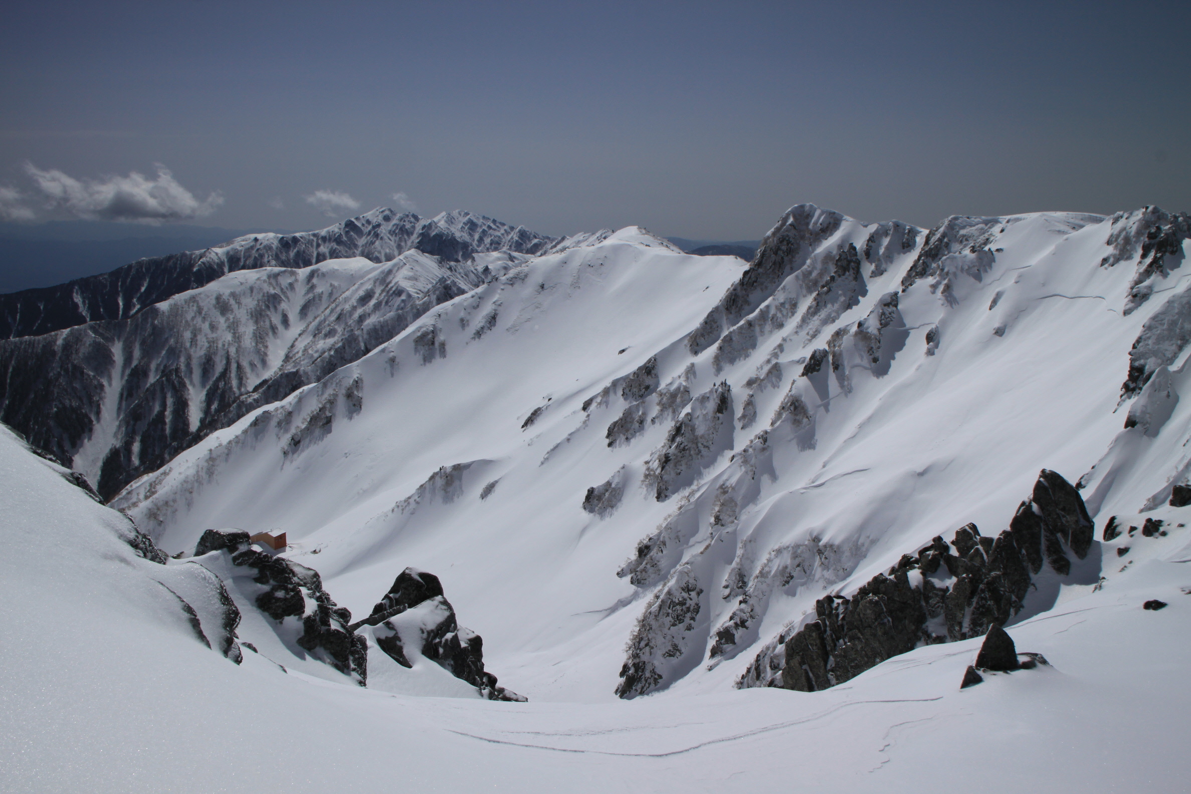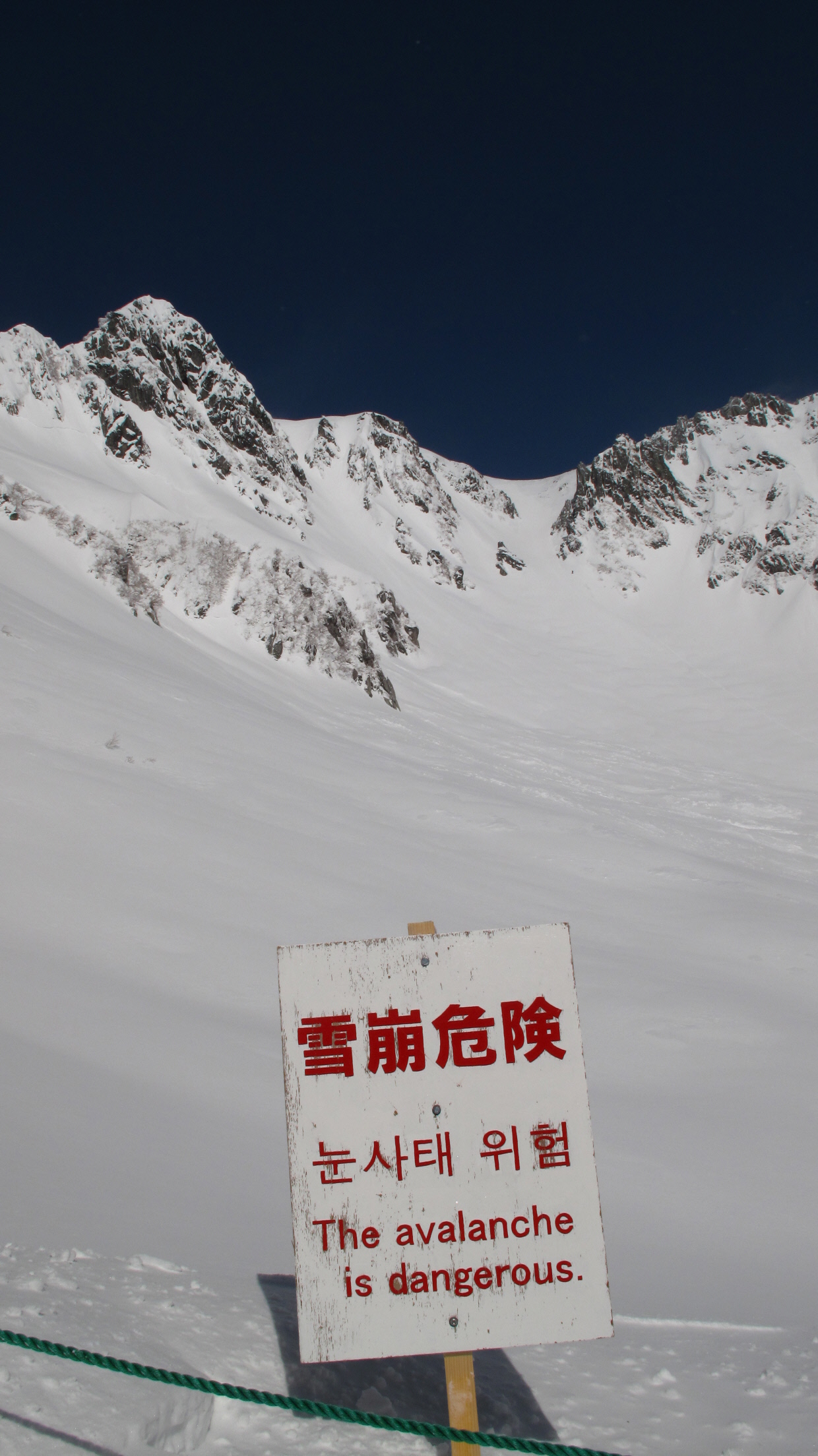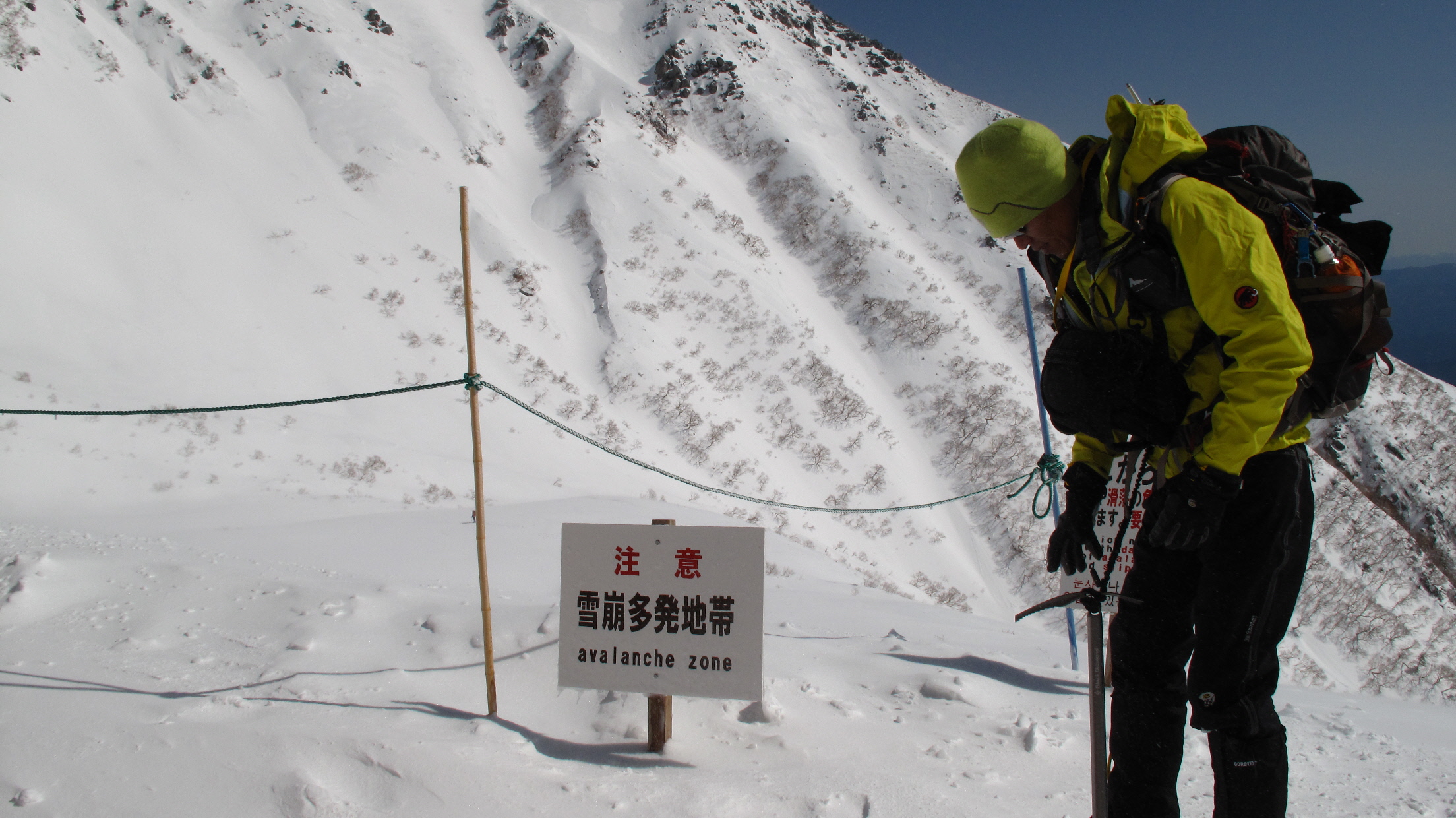 雪崩危険 その奥には晴れて真っ青なソラと真っ白な千畳敷