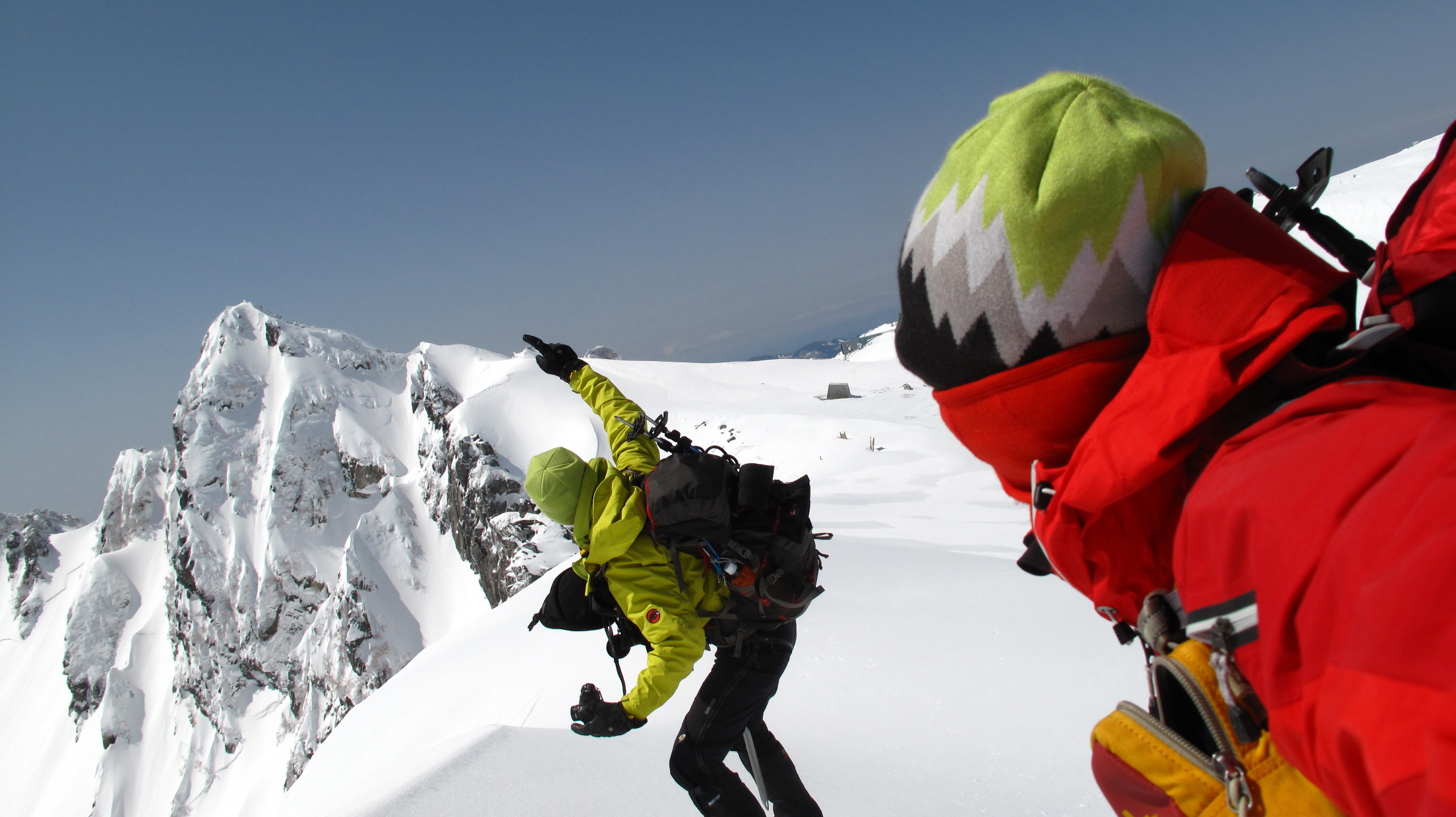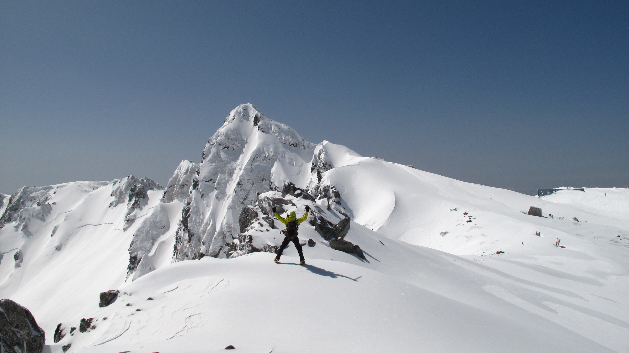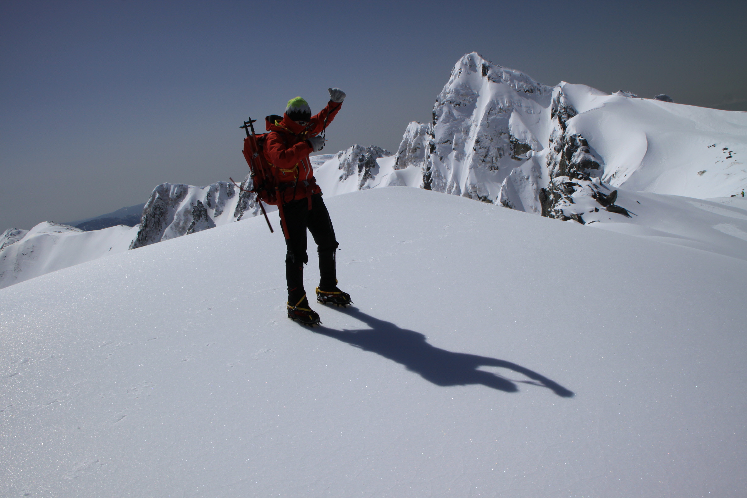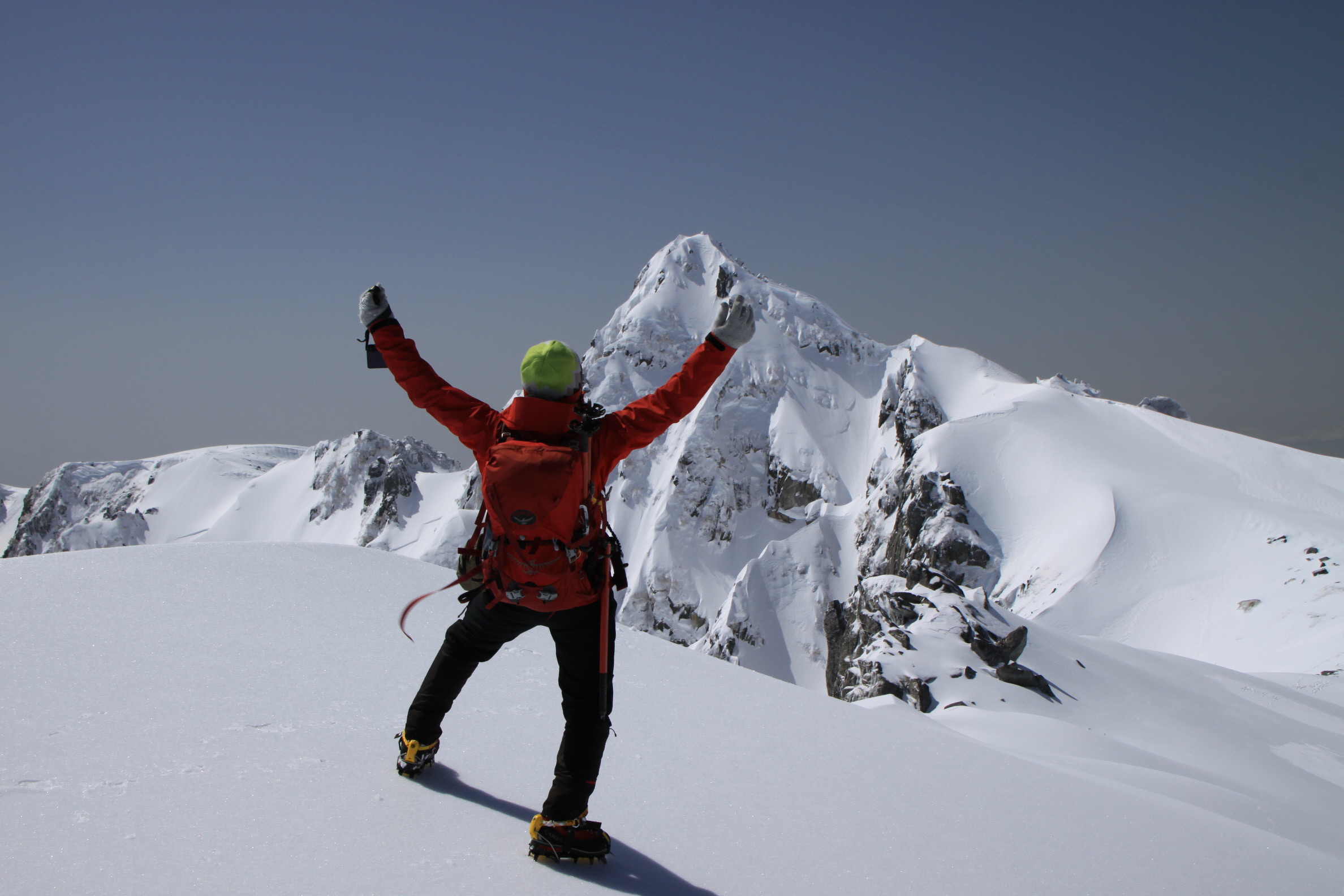 帰りの心配がまだあるけども、とりあえず登りの途中で雪崩れることもなく、無事に登ってこれて何よりです