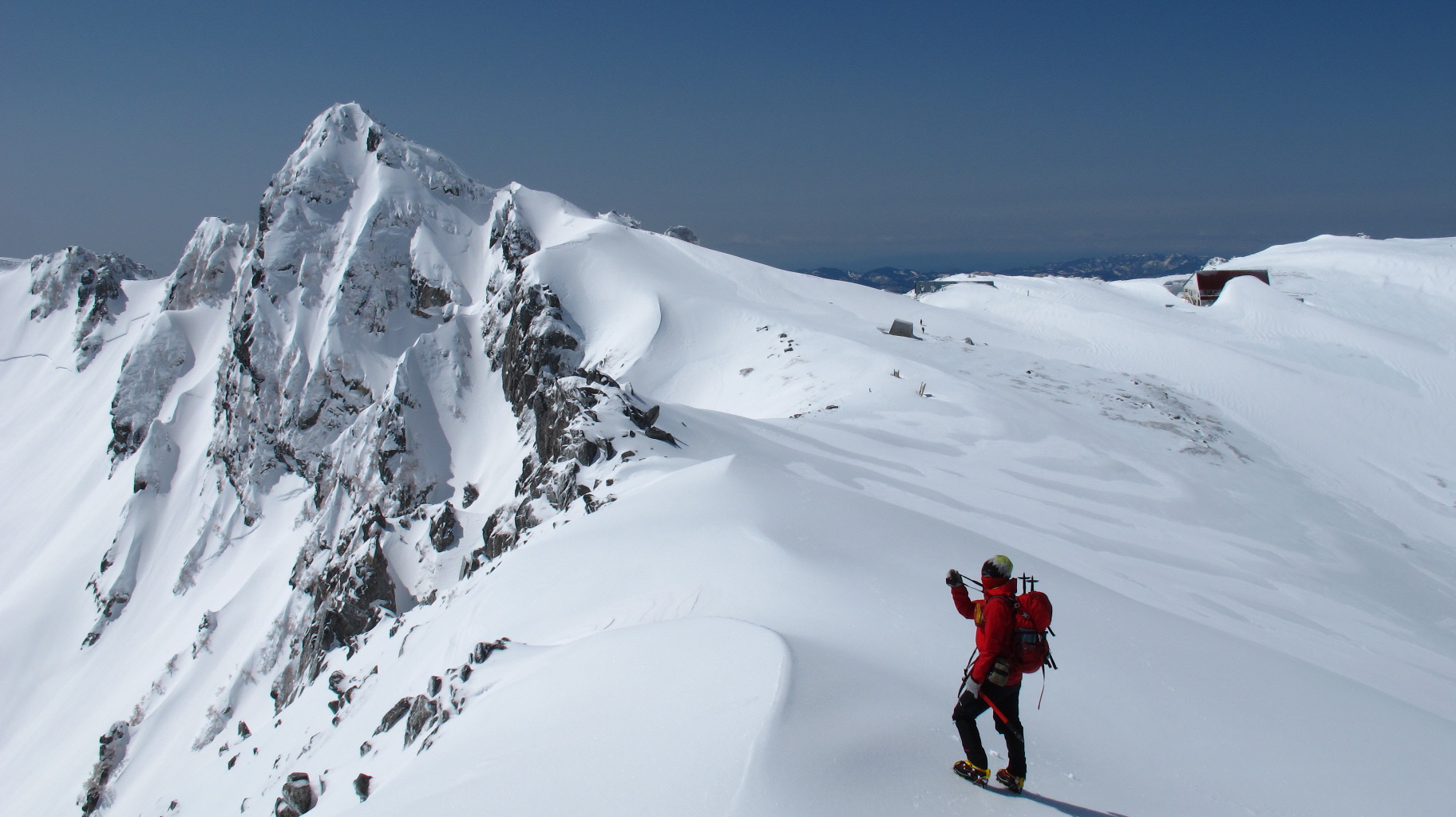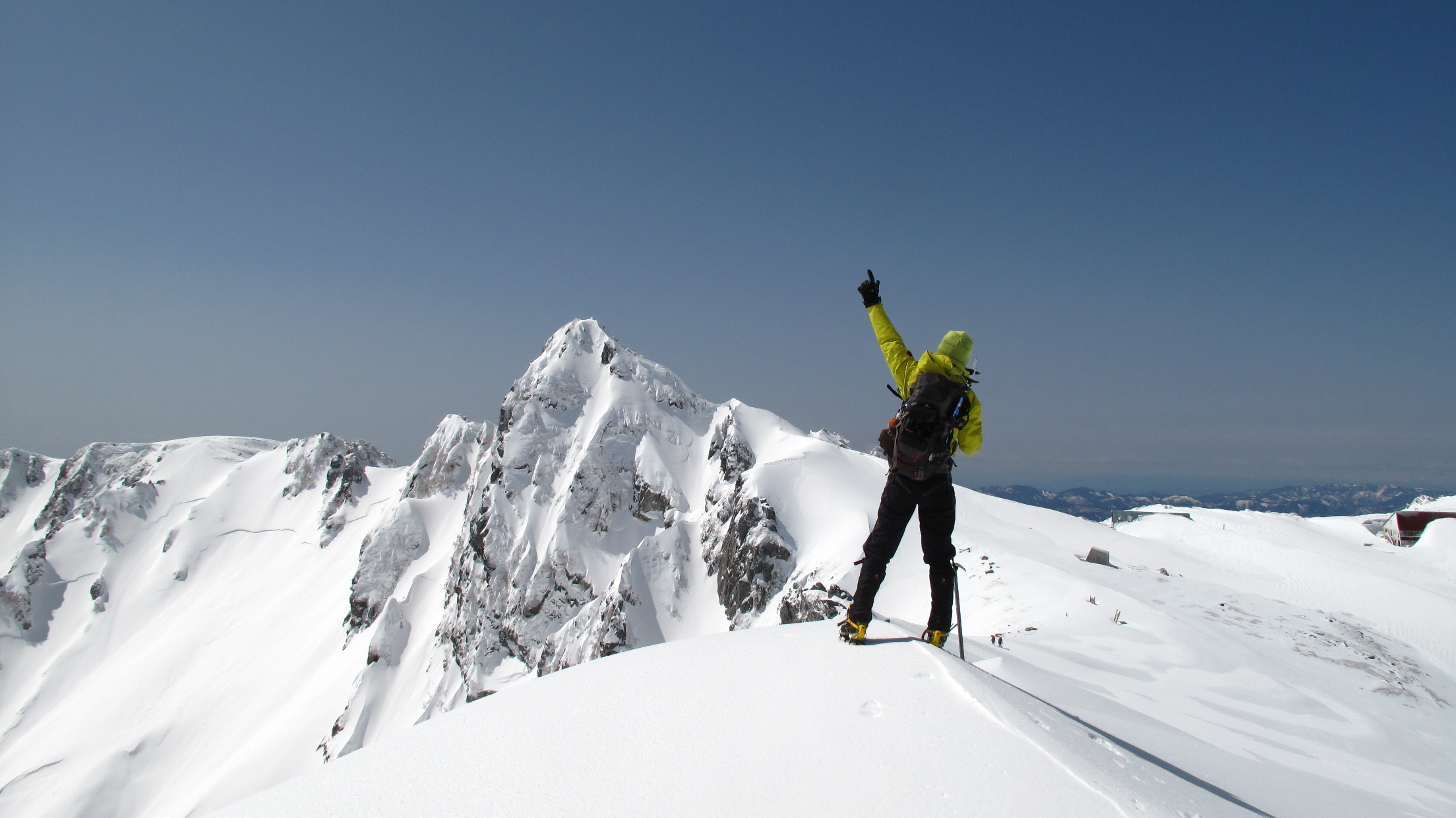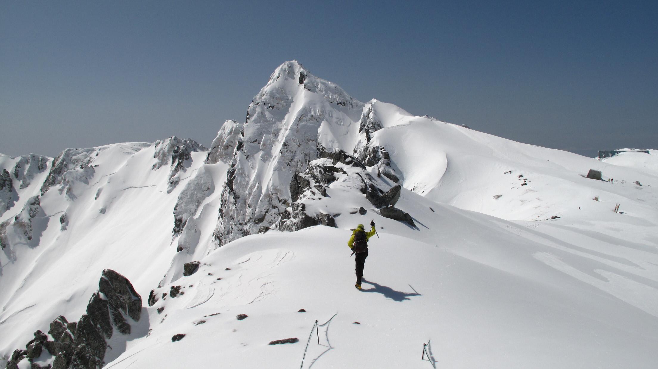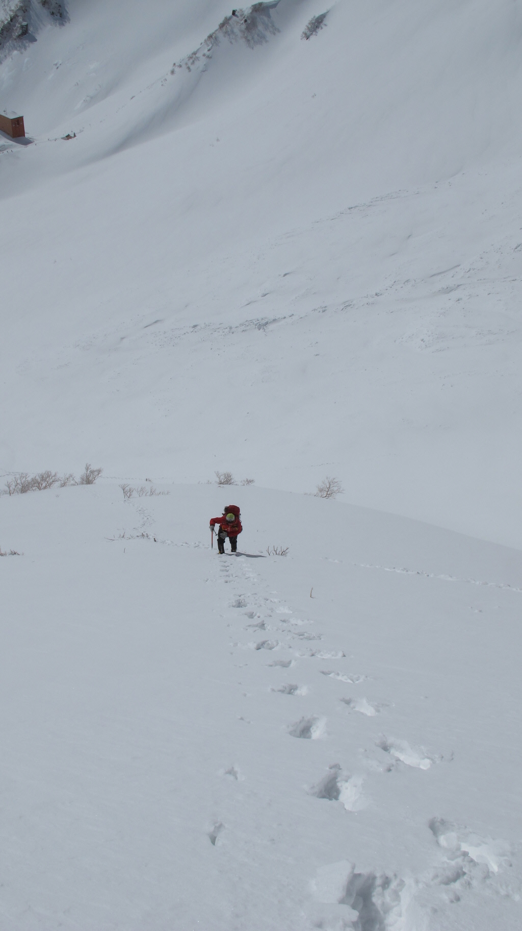 帰りの心配がまだあるけども、とりあえず登りの途中で雪崩れることもなく、無事に登ってこれて何よりです