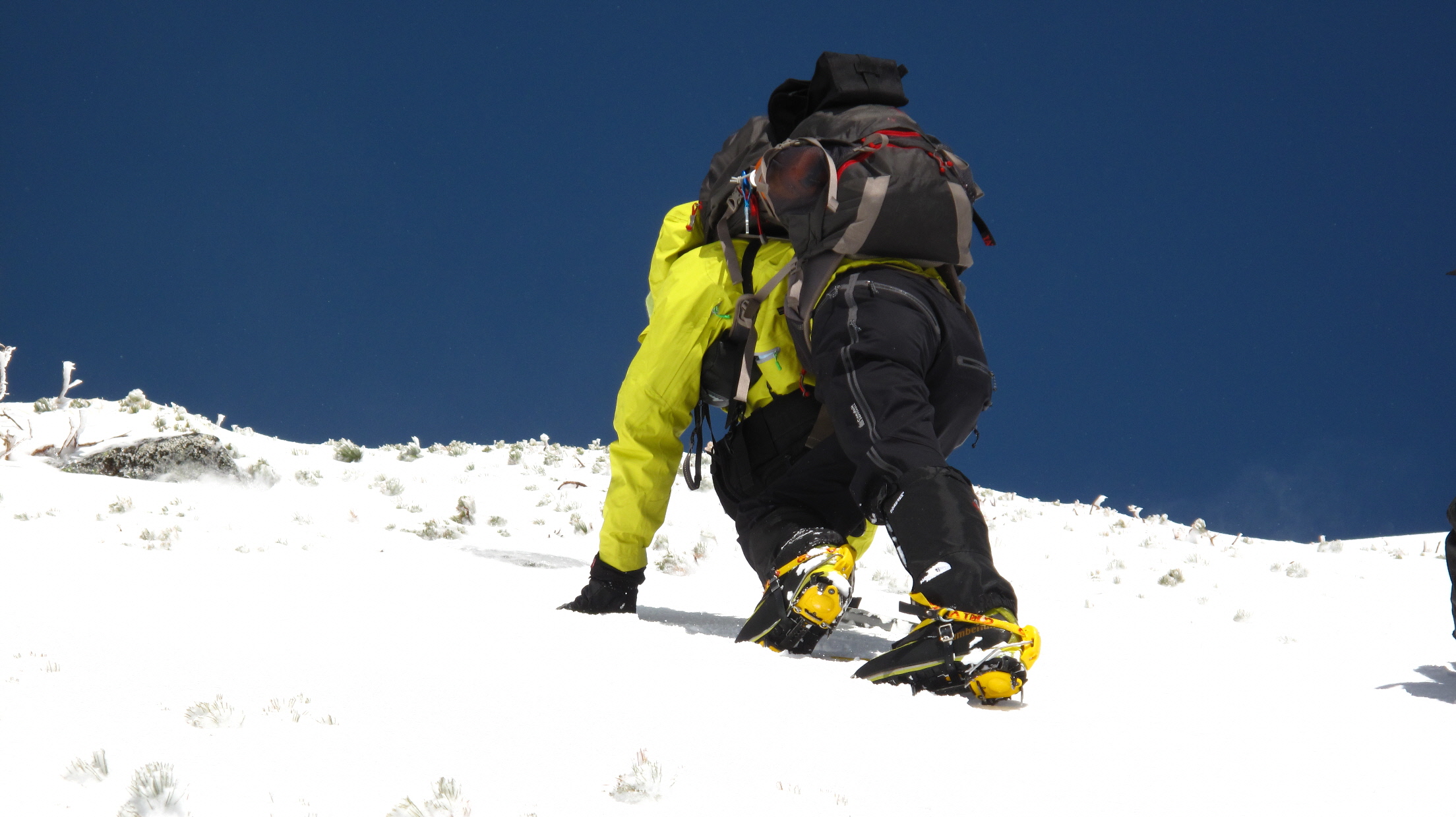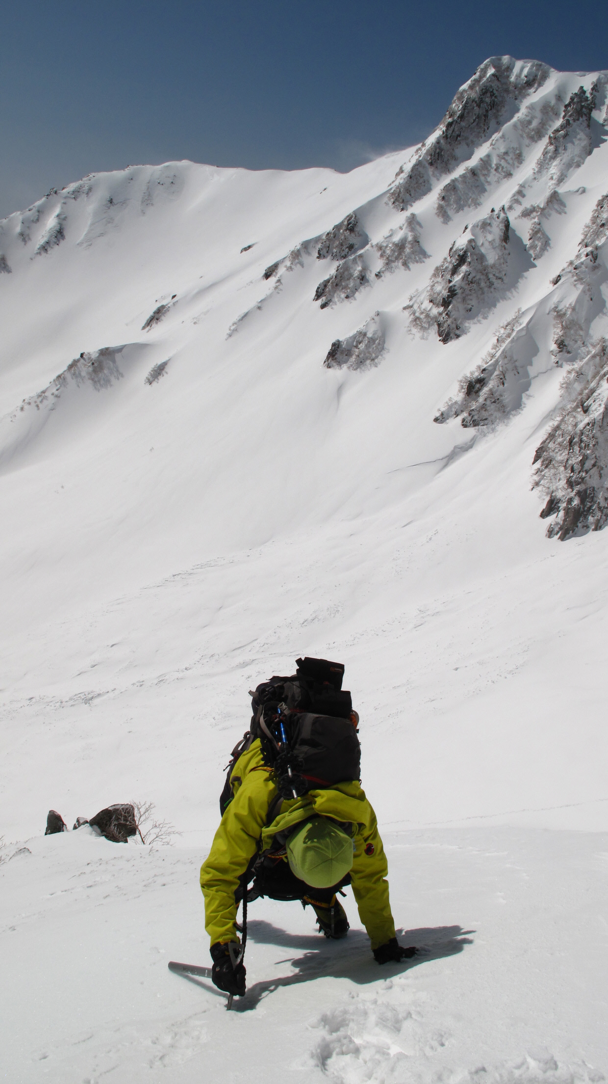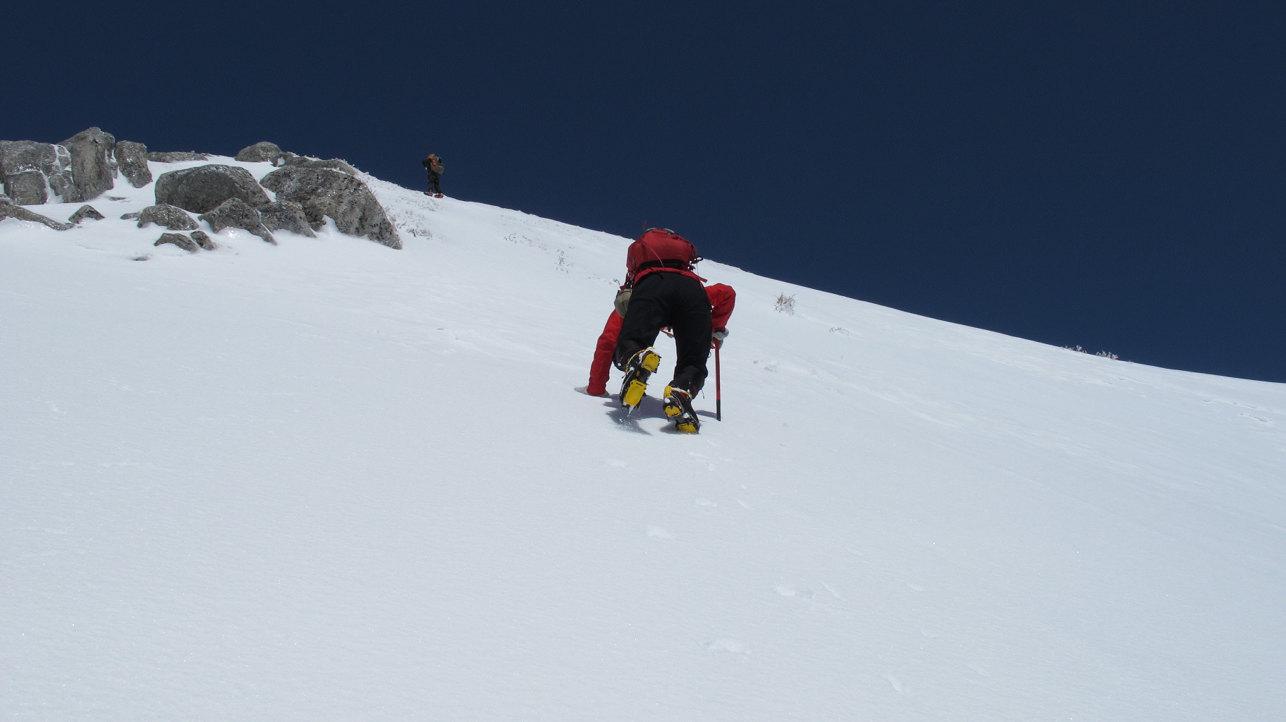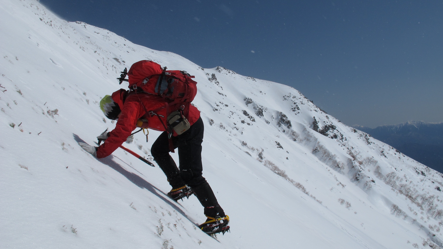 アイゼンとピッケルをしっかりくい込ませながら一歩づつ 一本しかないピッケル 左手にももう一本欲しいと思った