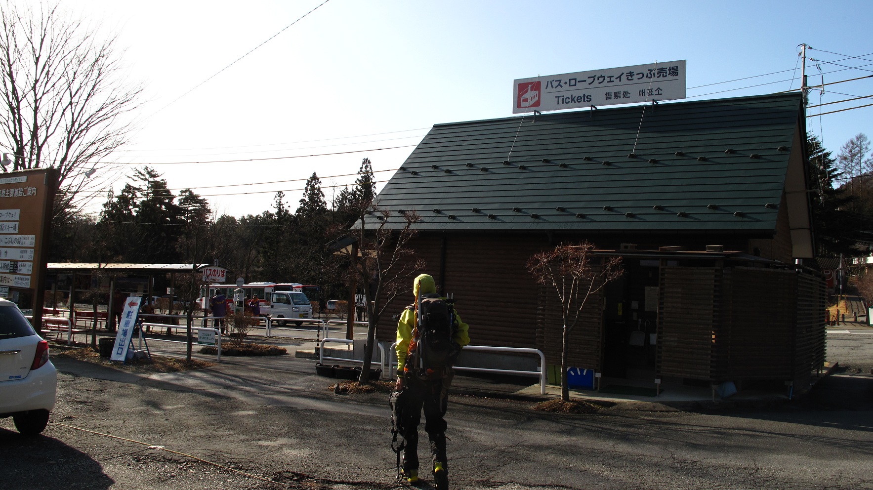 始発のバスは7時です 菅の台バス乗り場(駐車場)へ向かいます