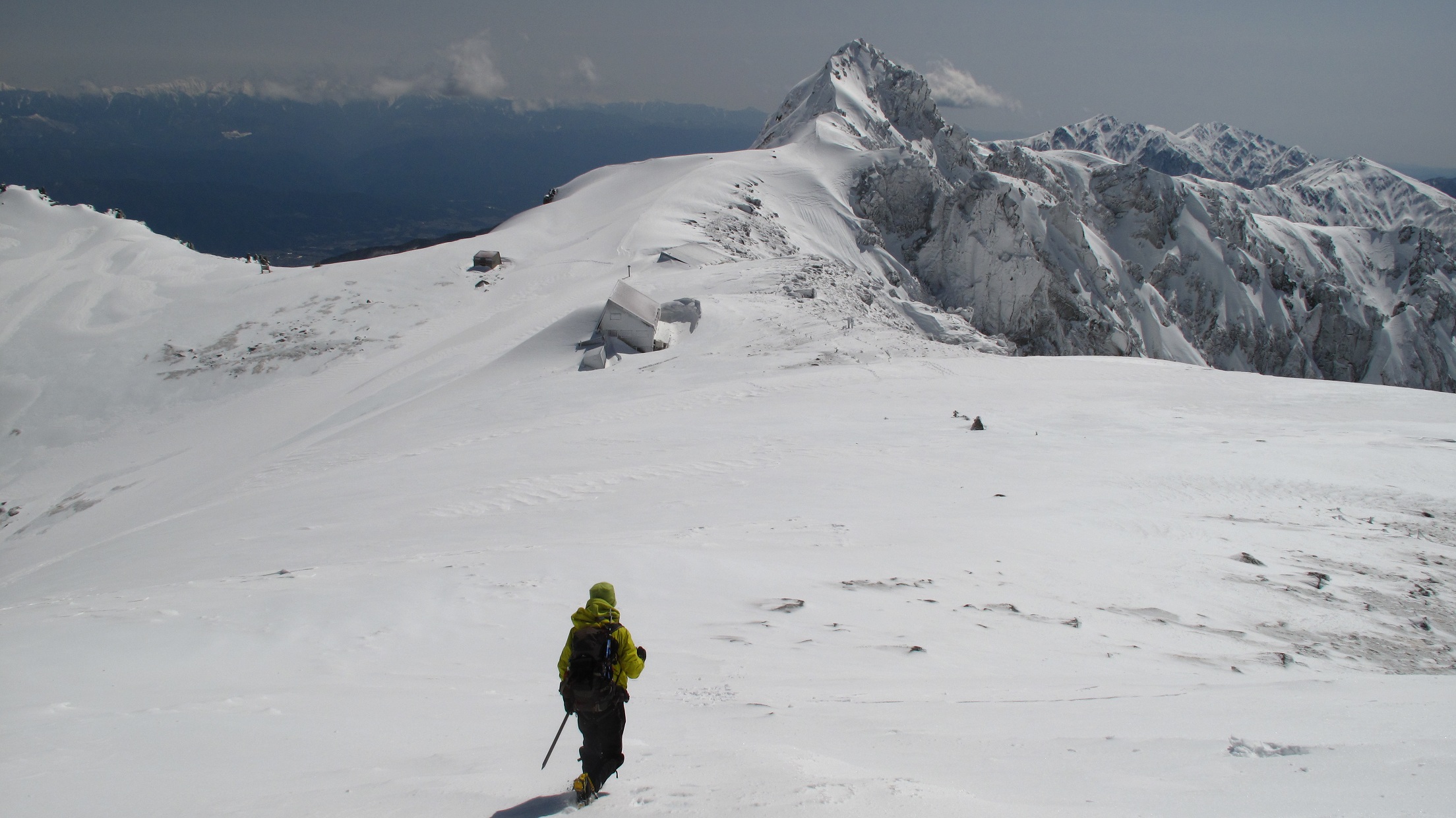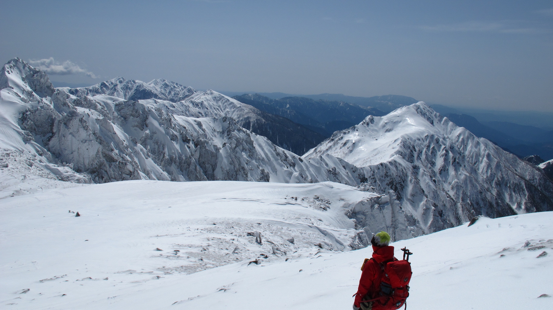 心配なのは、帰りの雪崩のことだけですが、ココまで登ってきてせっかくのイイ~ヤマの景色なので