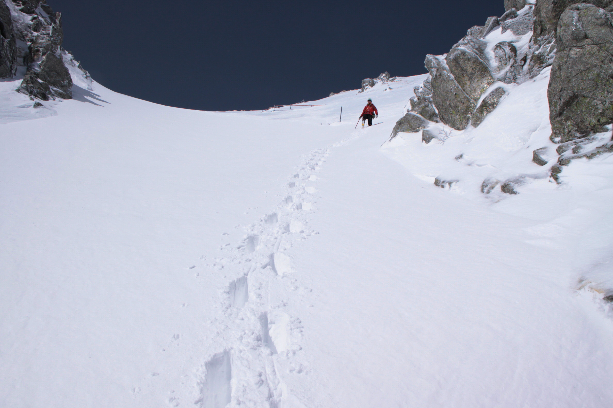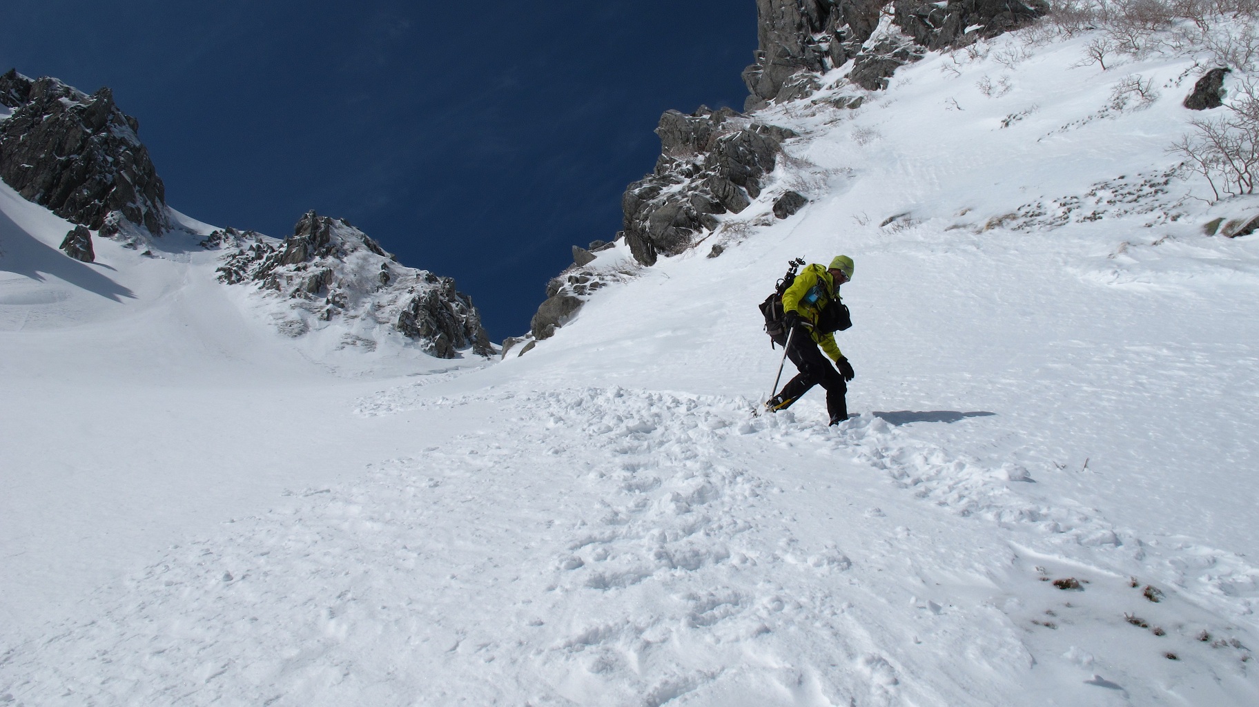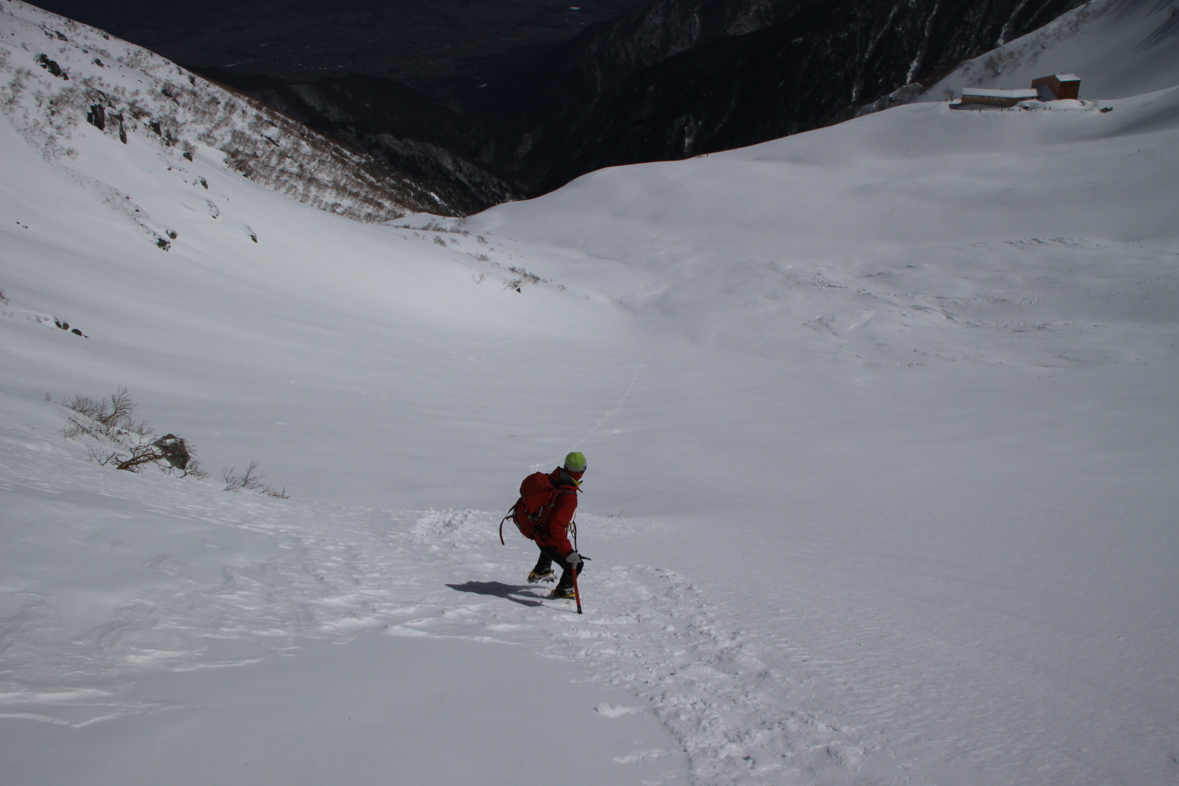 ソロで登って行かれた人のトレースもあります 周りを良く見つつも、ココはなるべく早めに・・・