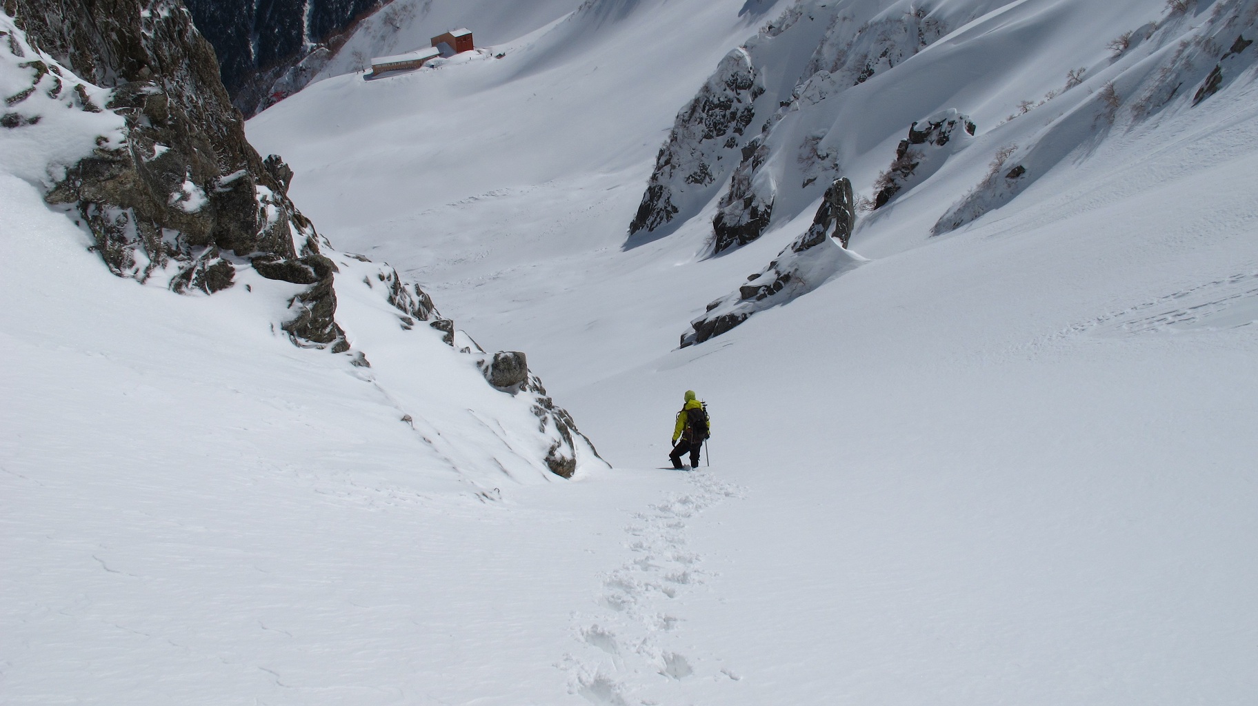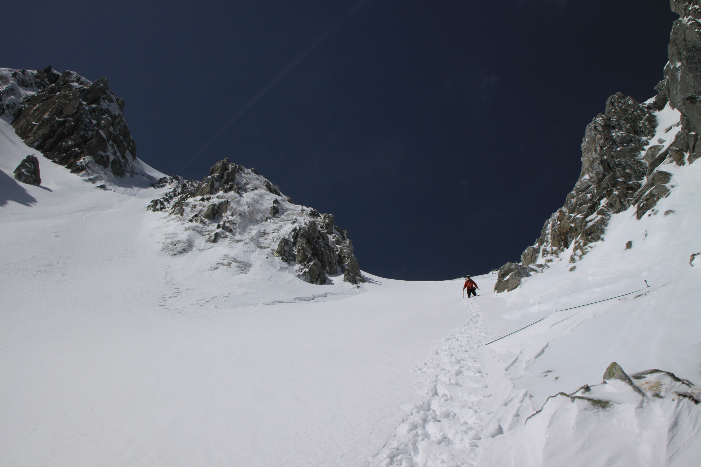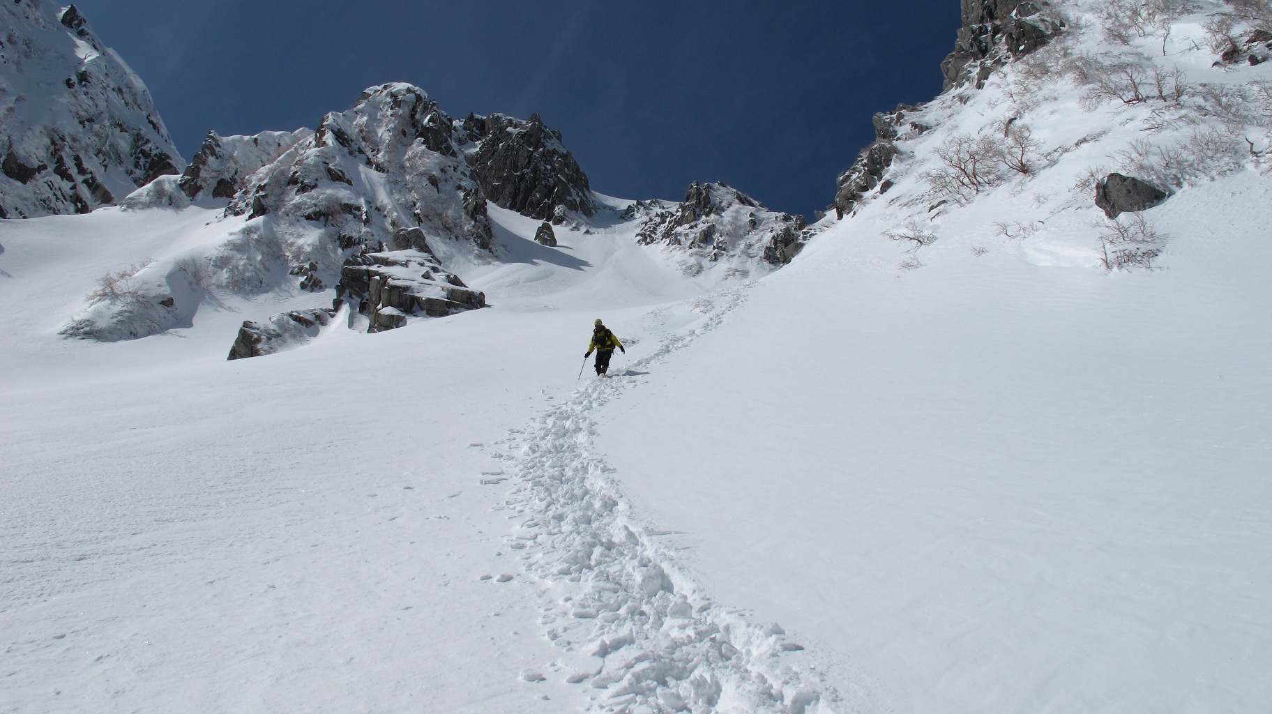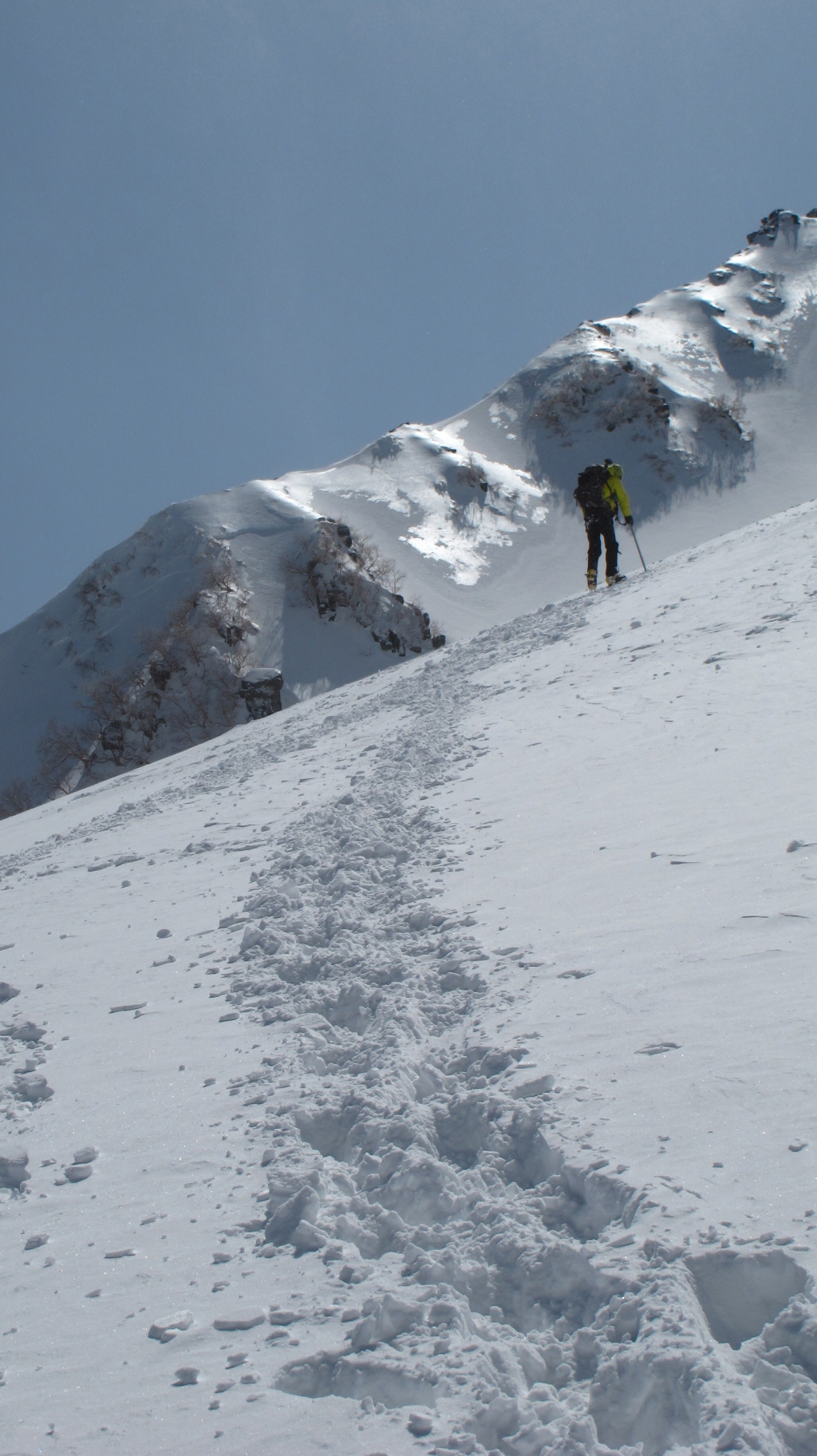 ソロで登って行かれた人のトレースもあります 周りを良く見つつも、ココはなるべく早めに・・・