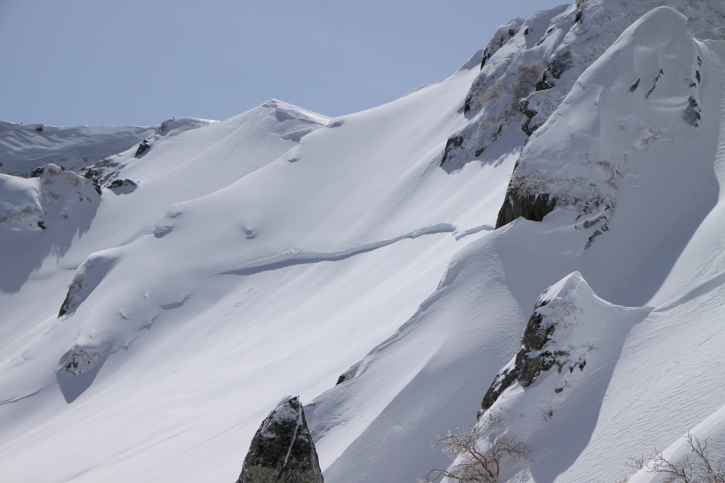 キレイだけど、どこから雪崩れてもおかしくなさそう