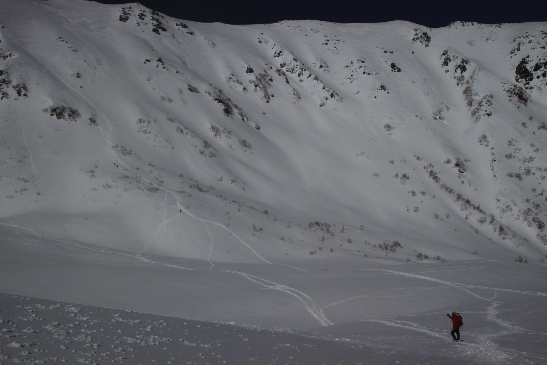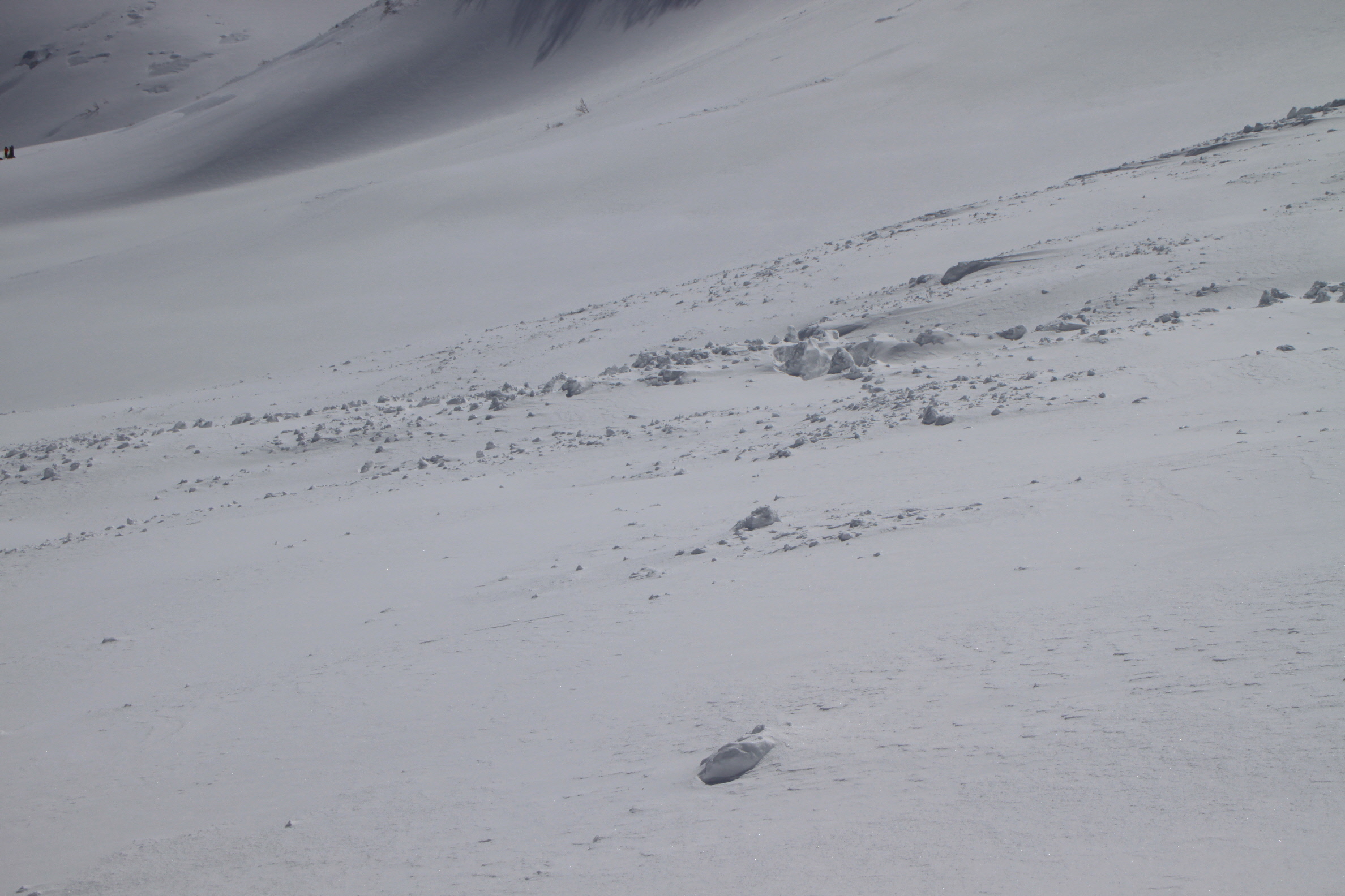 昨日、小さな雪崩が起きたあたり またその上に雪が降ってます