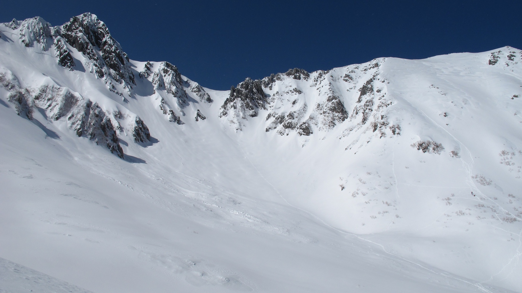 登ってきた伊那前岳の山側よりも、乗越浄土の方が雪崩が起きる危険が高いのですが